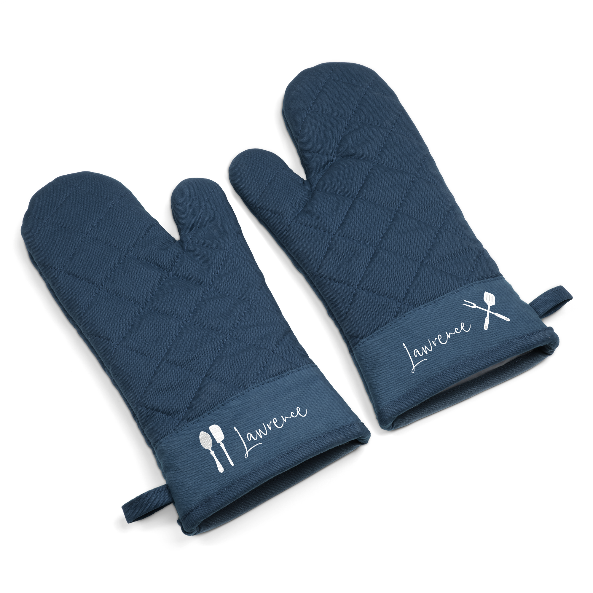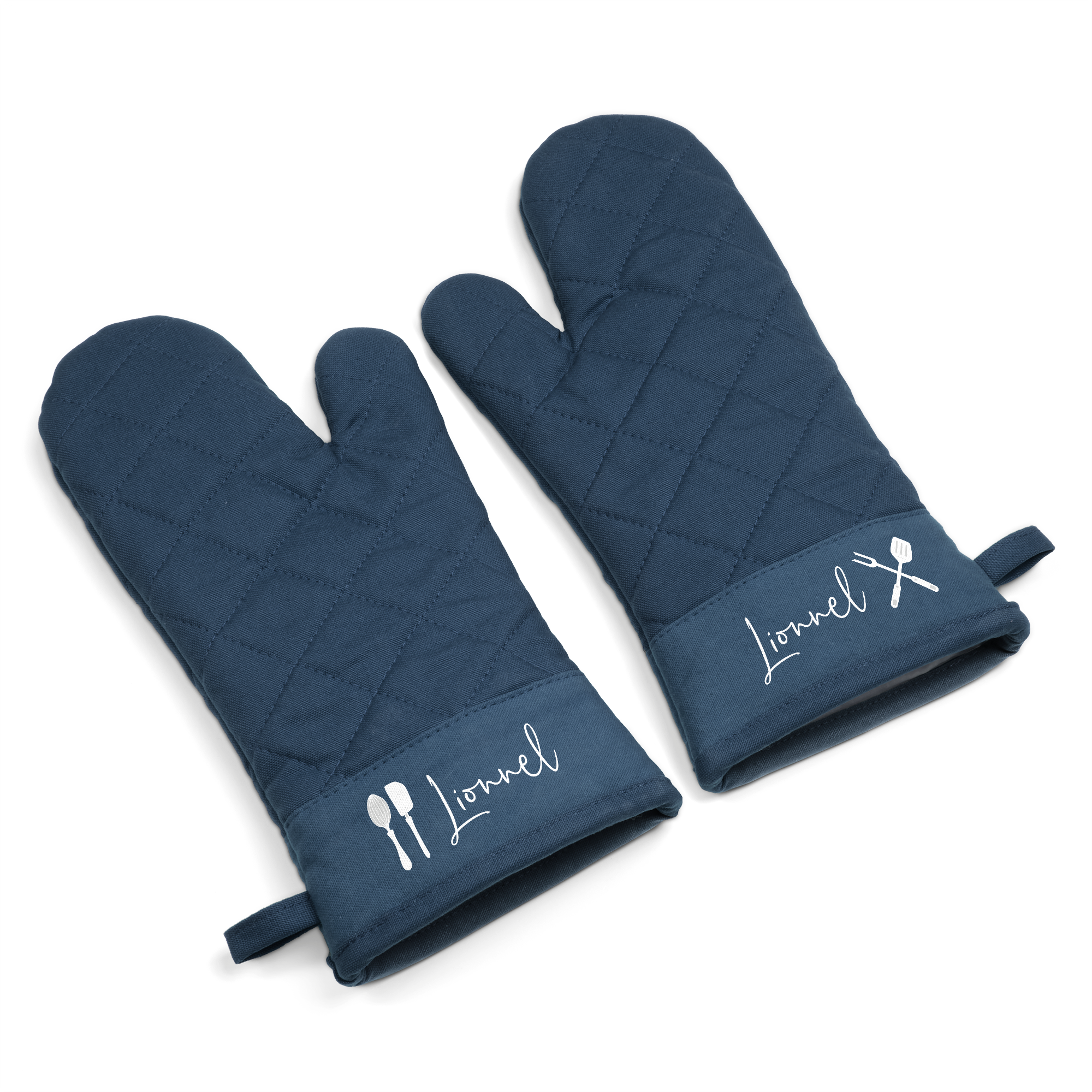 Presente divertido e original. Conjunto de luvas de forno com o nome da sua escolha, com designs únicos para escolher.