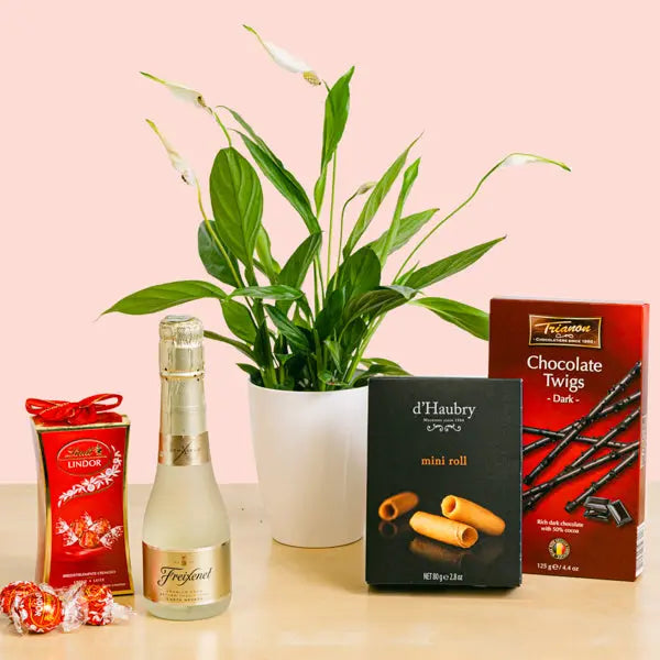Spathiphyllum Blanco: Simbolizando paz e pureza, esta planta elegante adiciona um toque de beleza natural a qualquer ambiente. Acompanha um elegante vaso branco.