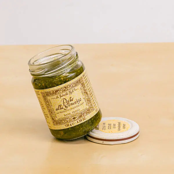 Pesto Alla Genovese (130 g): Um molho italiano clássico que promete uma explosão de manjericão fresco e pinhões.