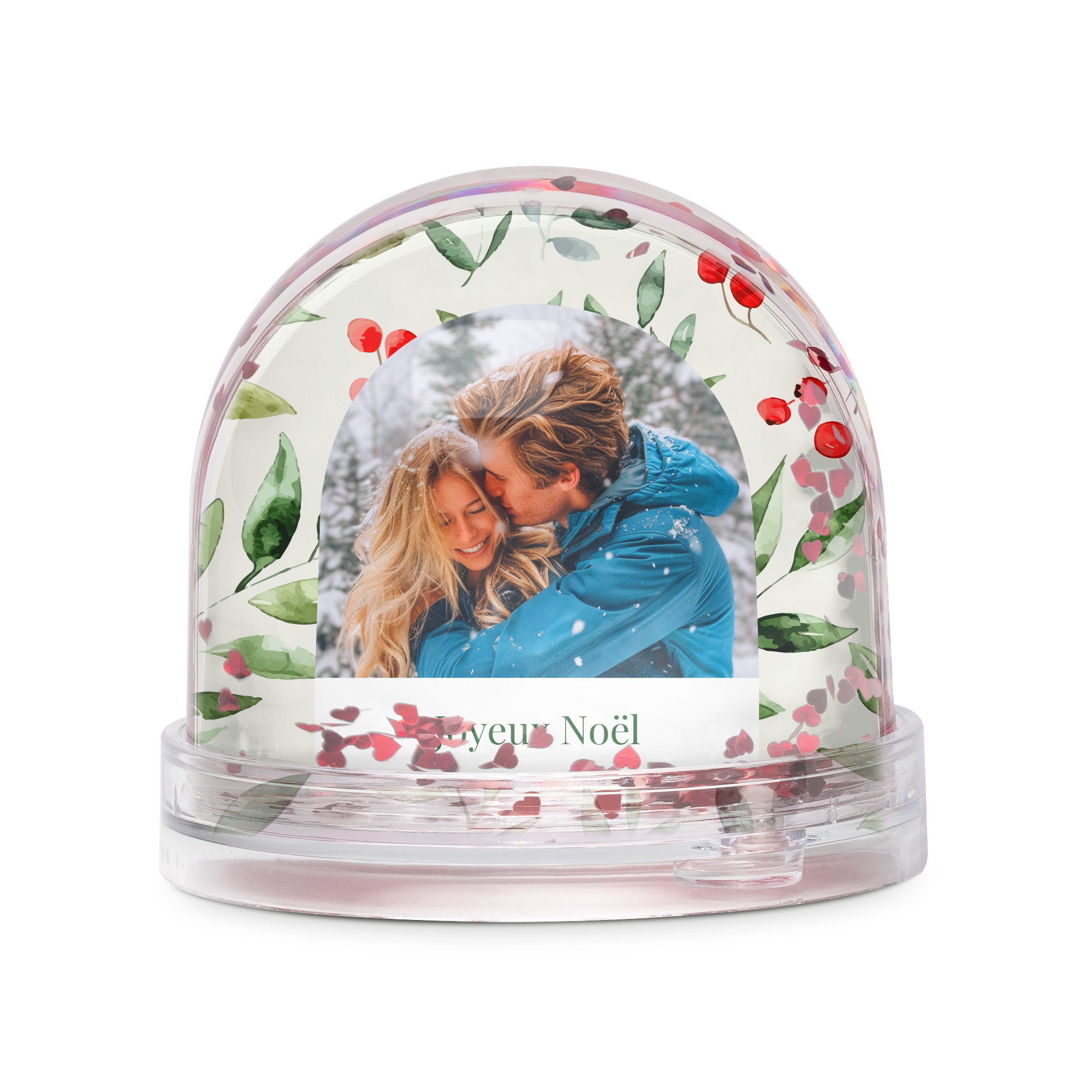 Uma linda bola de neve com doces corações, personalizada com a foto e/ou texto de sua escolha. Um presente verdadeiramente original e pessoal!