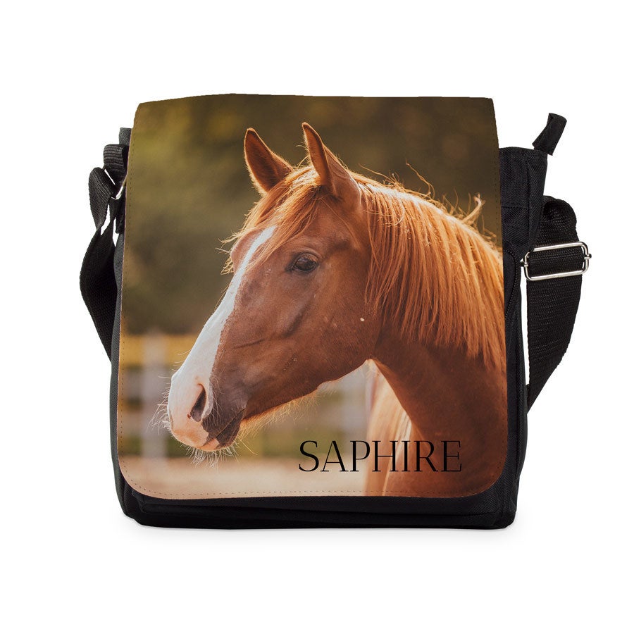 Uma bolsa de ombro resistente e bonita com sua própria foto e texto.