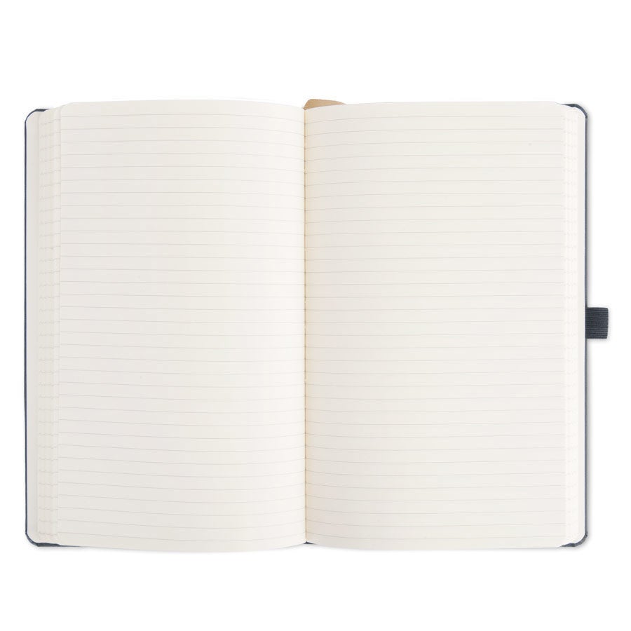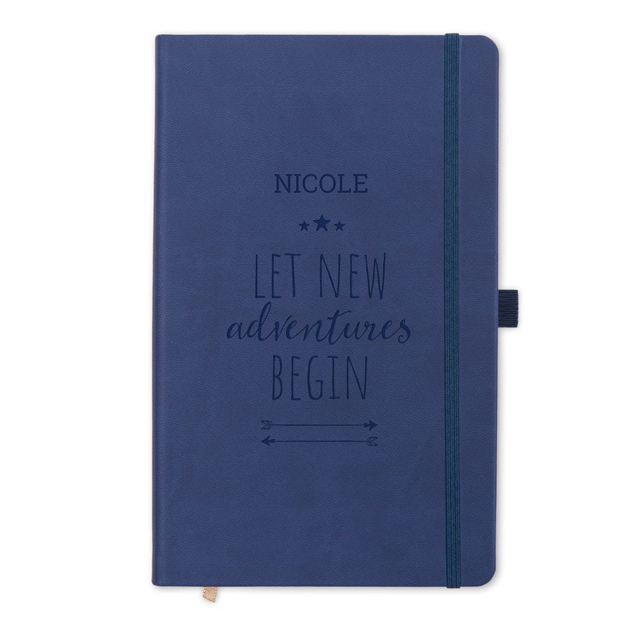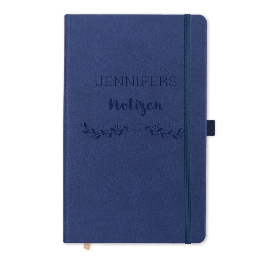 Caderno elegante gravado com seu nome e um design deslumbrante! Disponível nas cores azul e preto. Registre seus momentos favoritos em um caderno único!