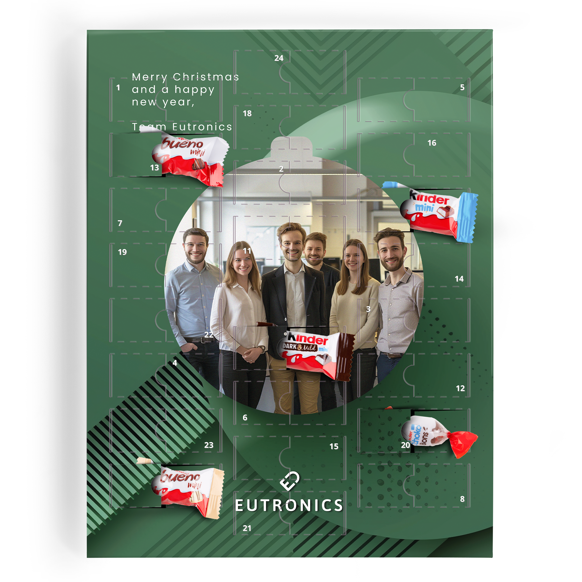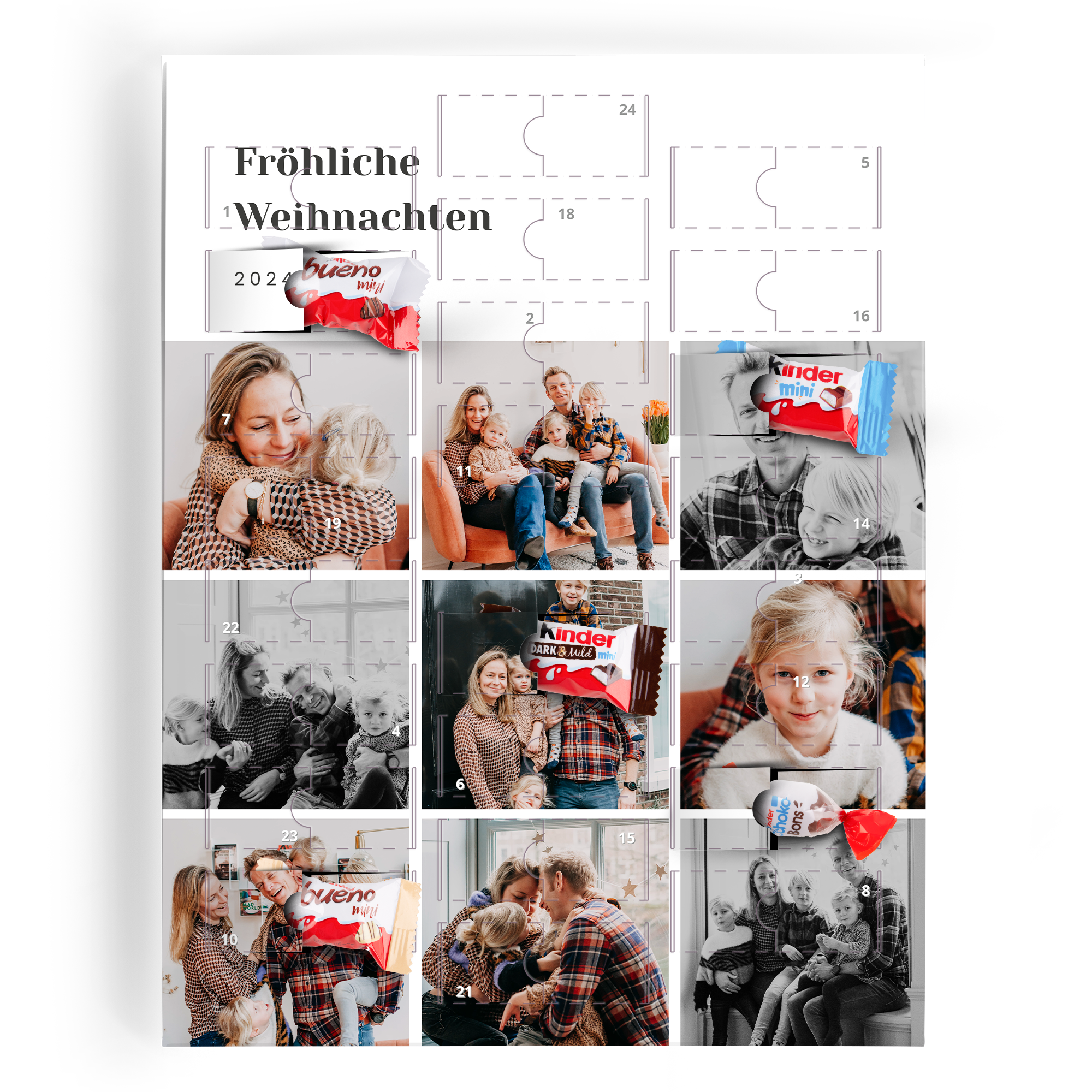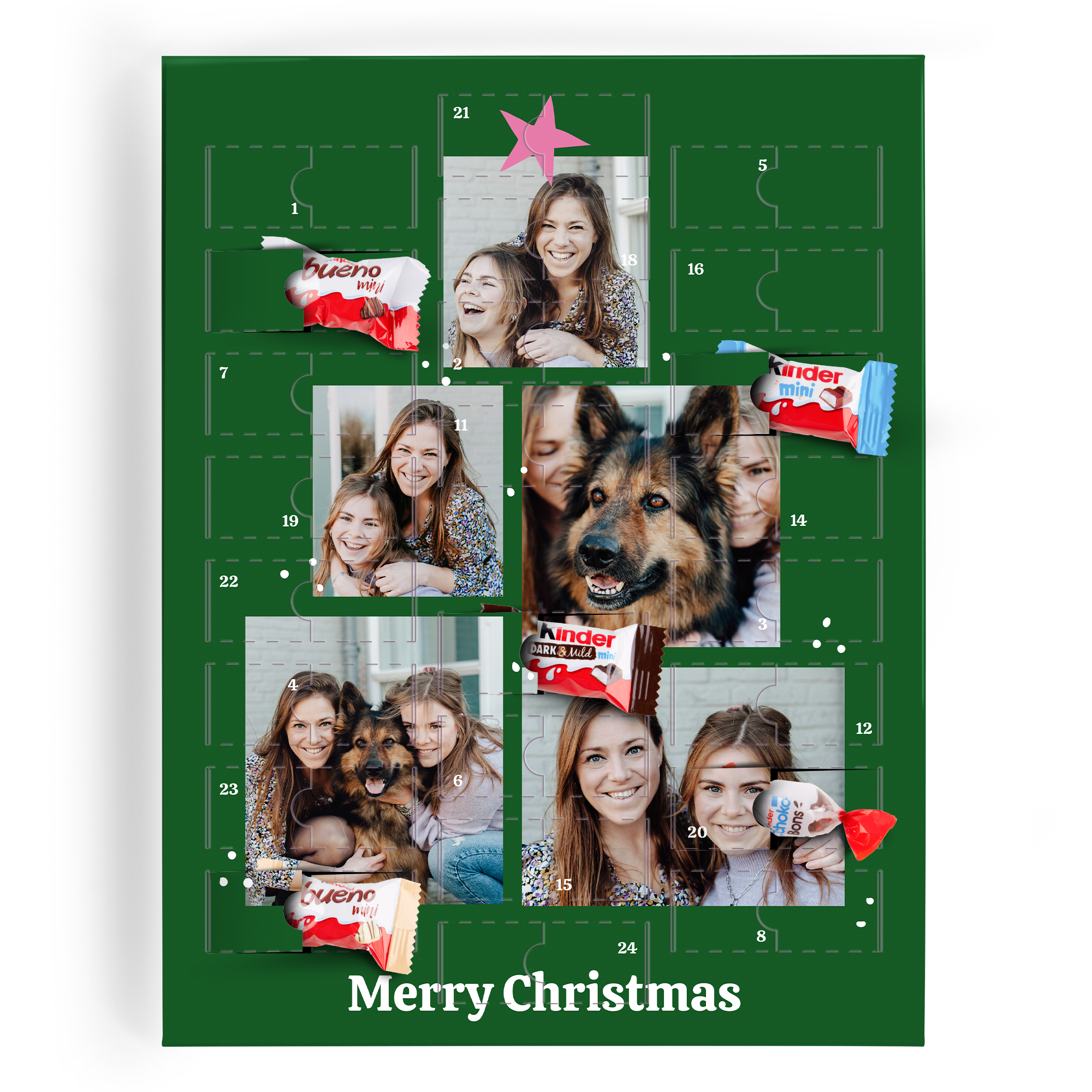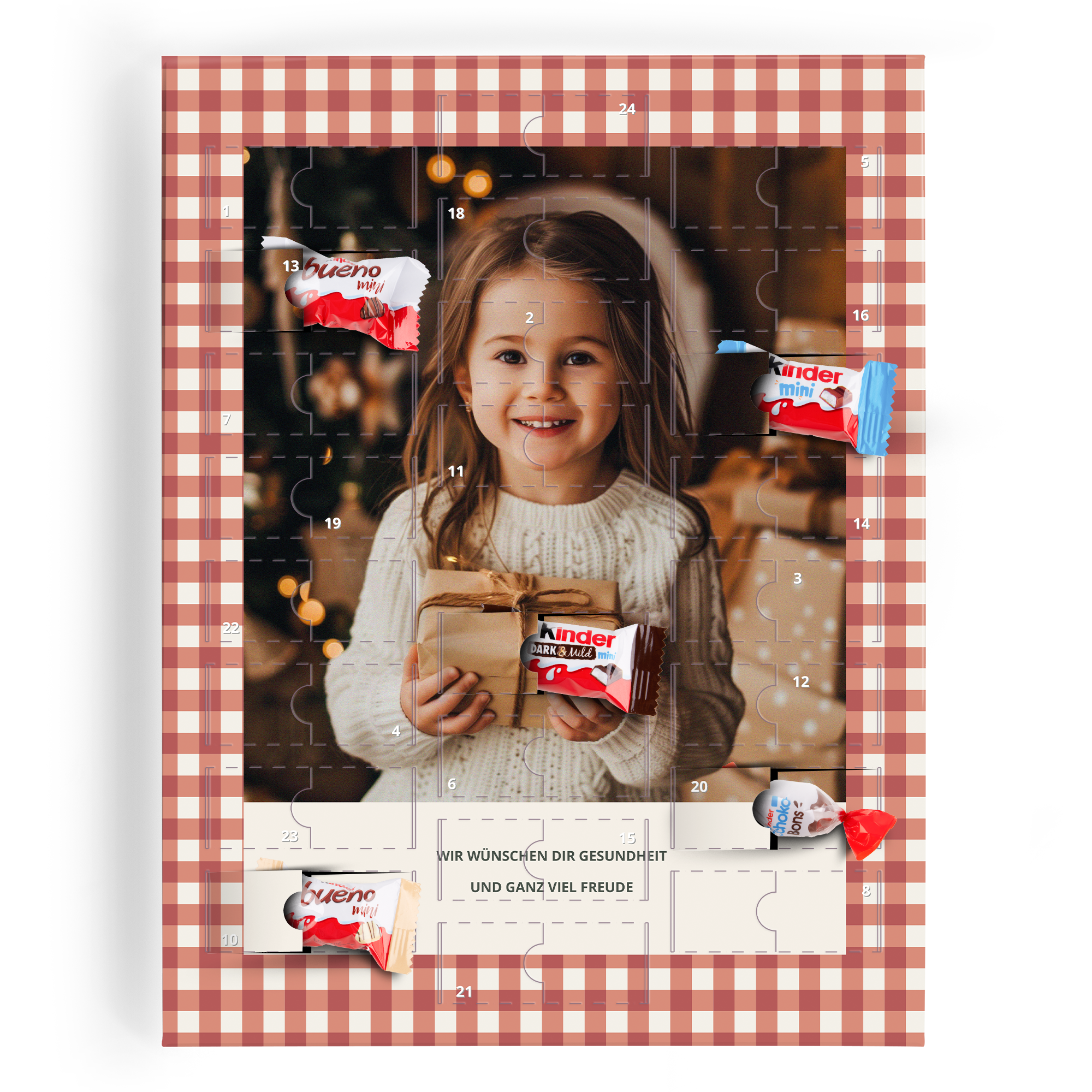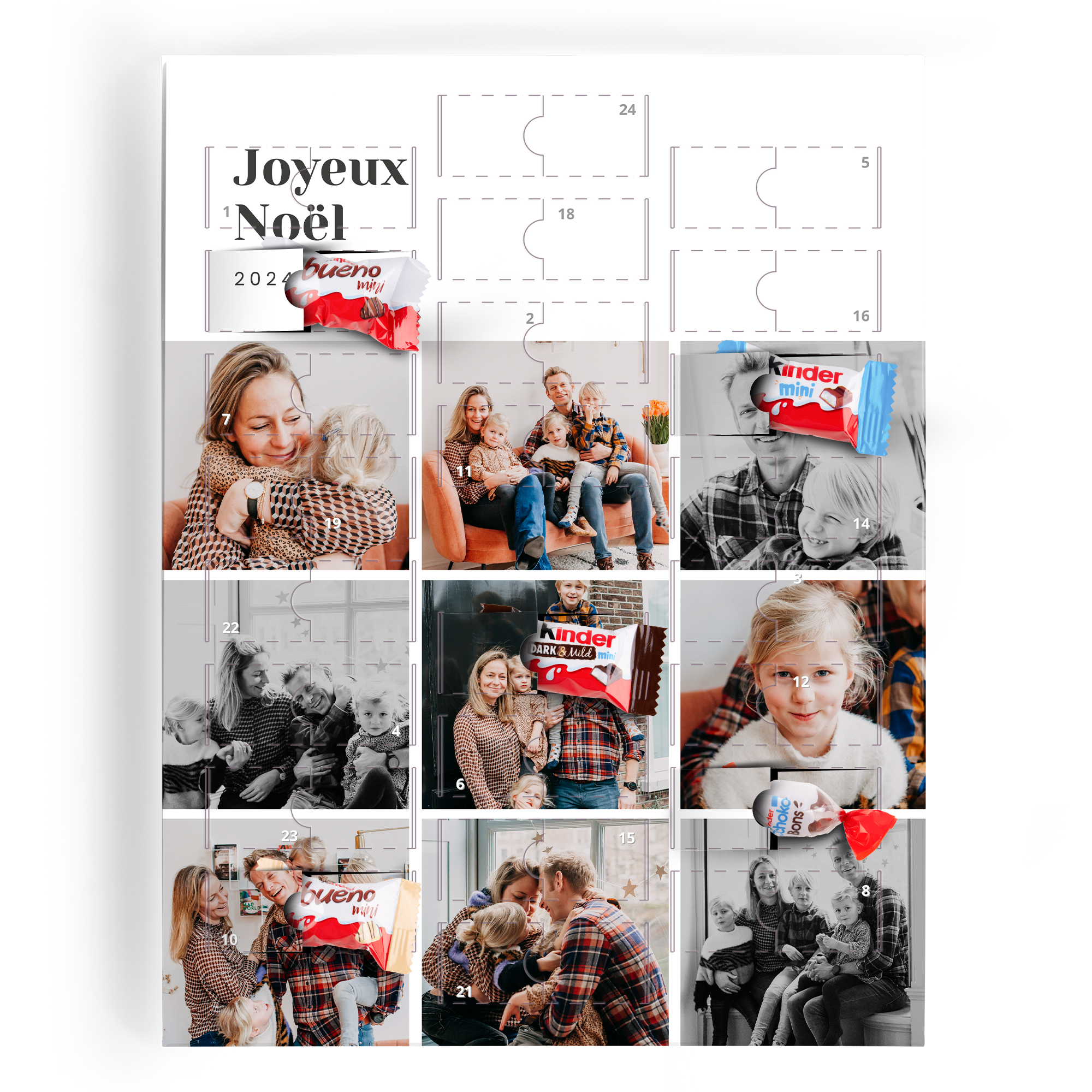Calendário do advento personalizado com a foto, nome e/ou texto de sua escolha, acompanhado de 24 deliciosos chocolates kinder Happy Moments.