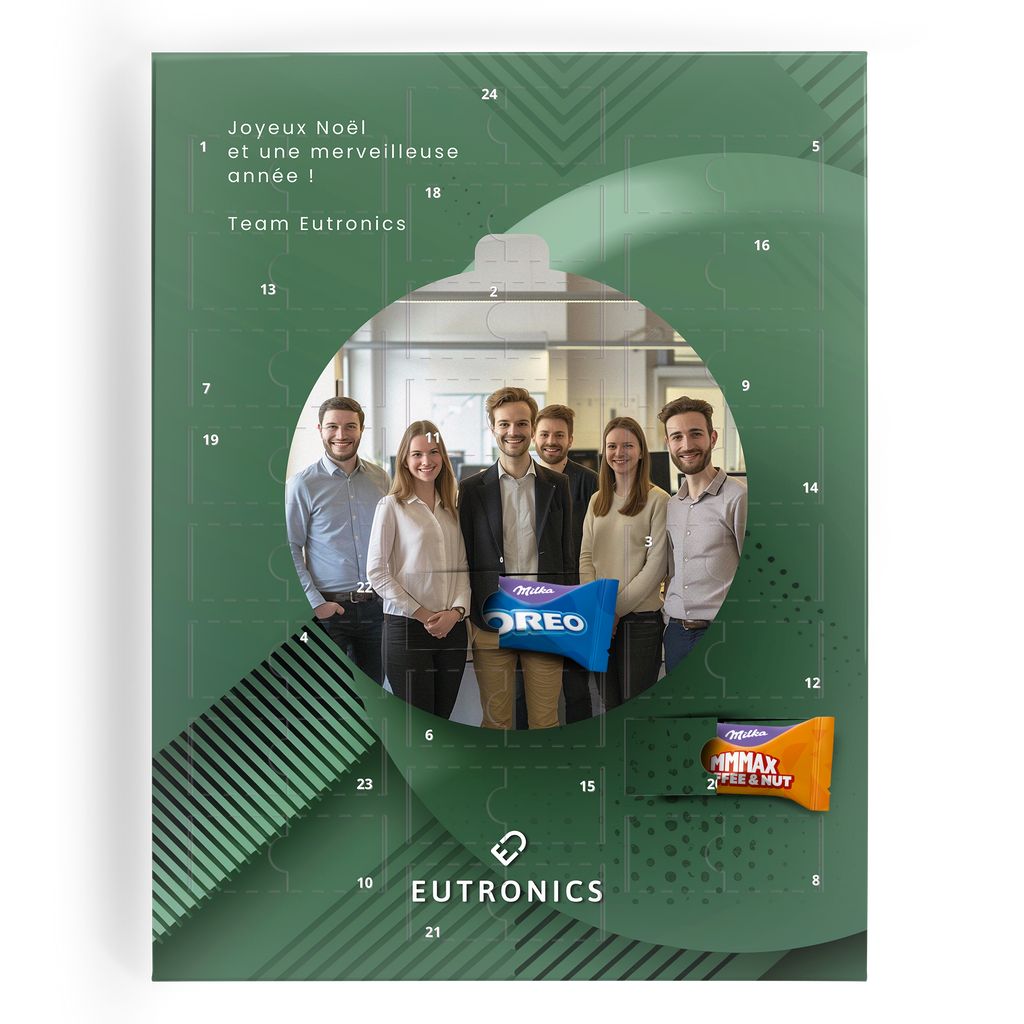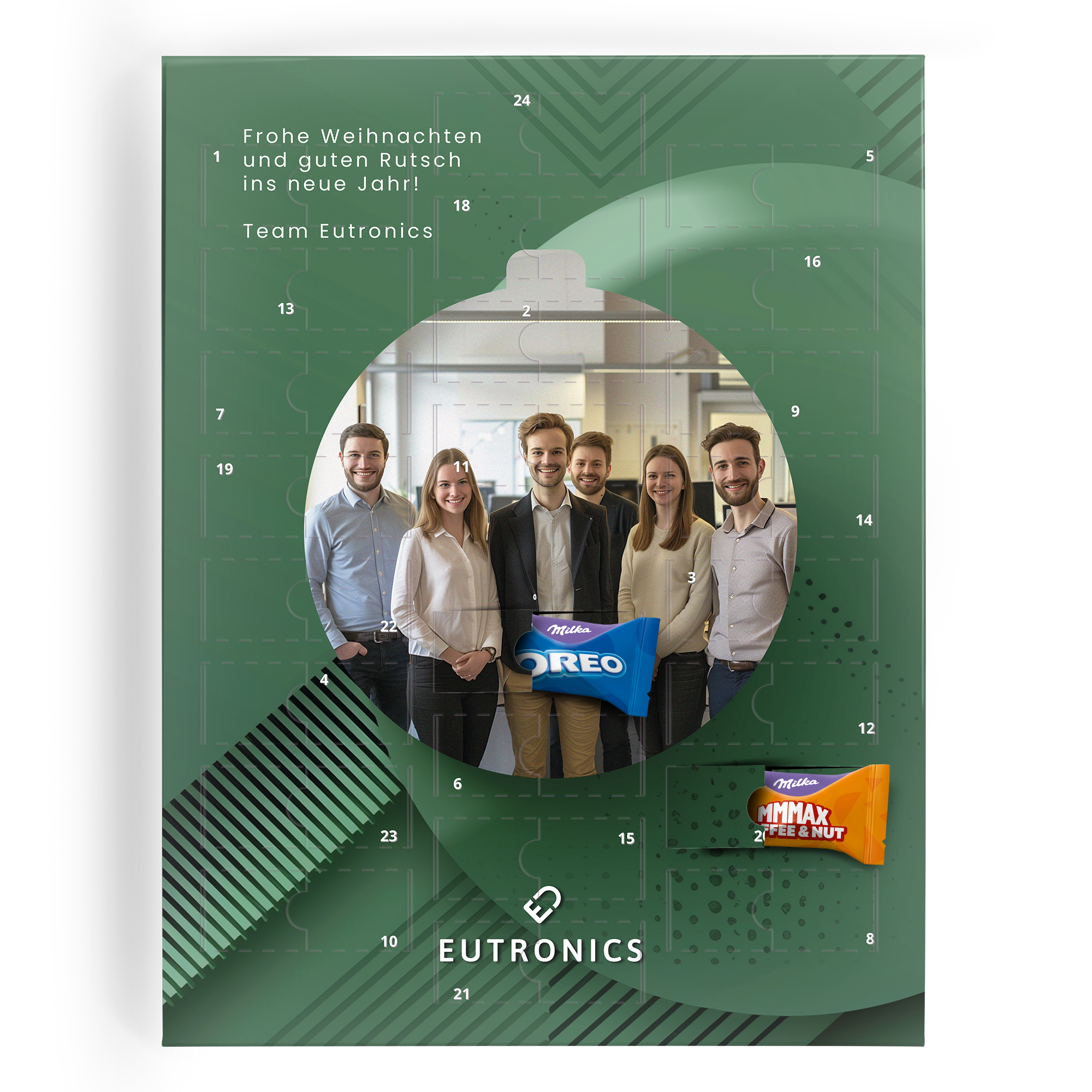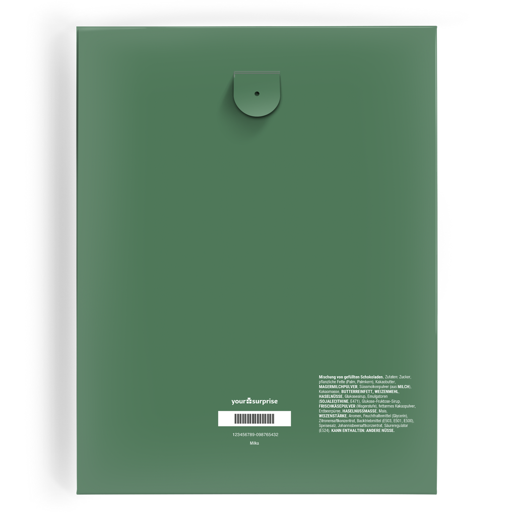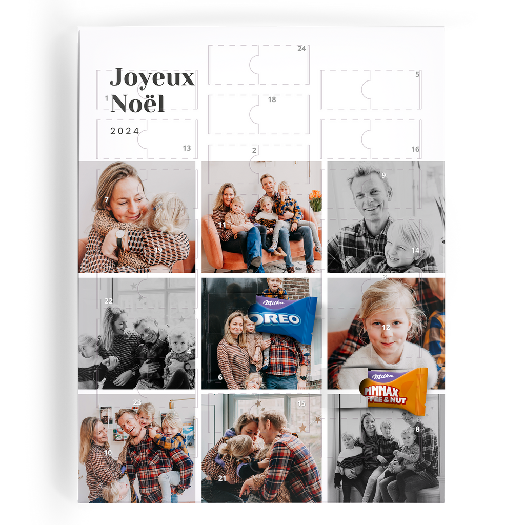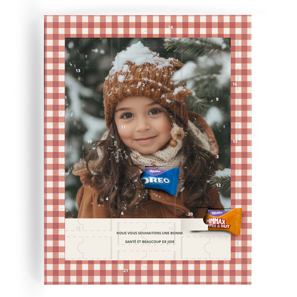 Calendário do Advento com foto, nome e/ou texto. Repleto de 24 deliciosos chocolates Milka. Uma contagem regressiva deliciosa para o Natal!