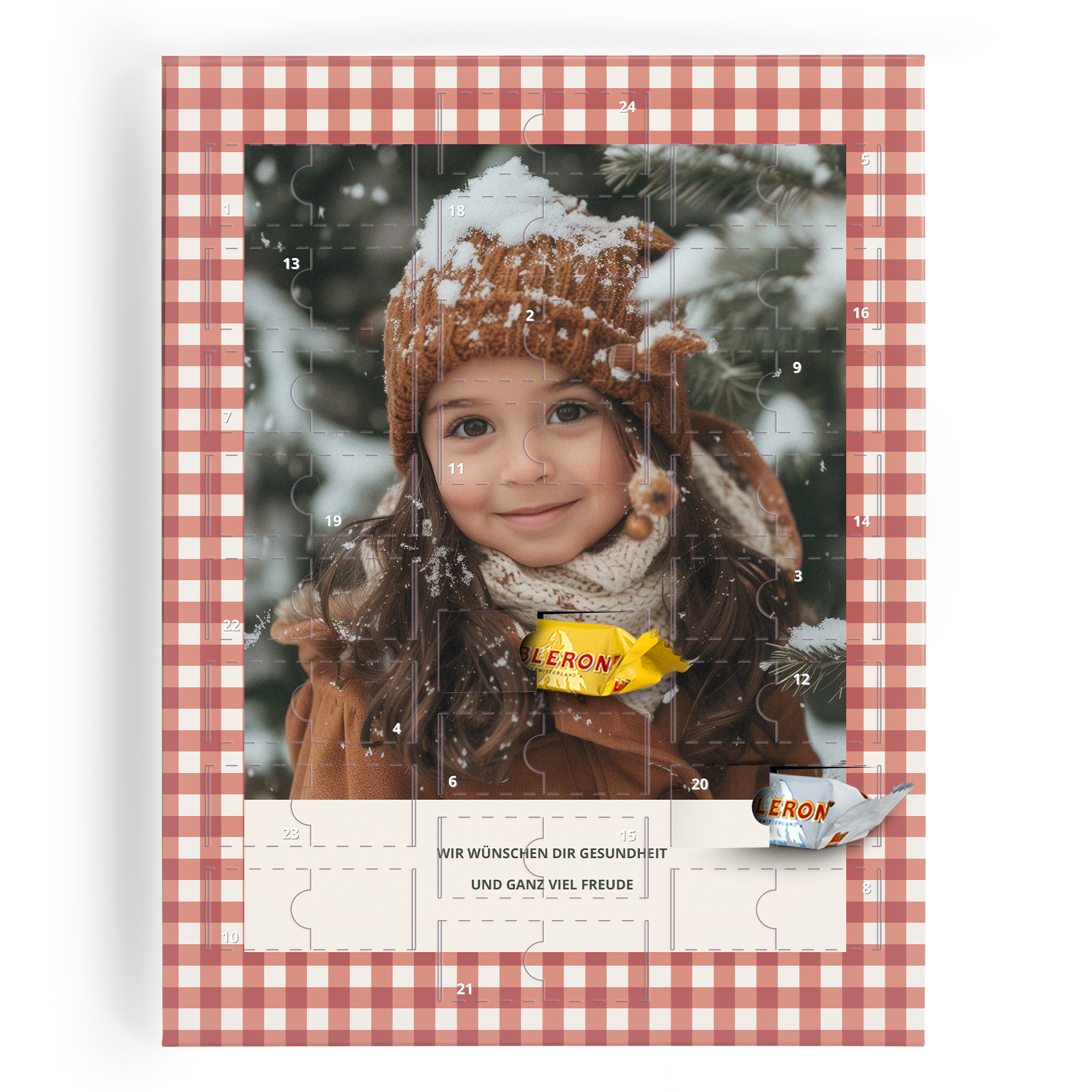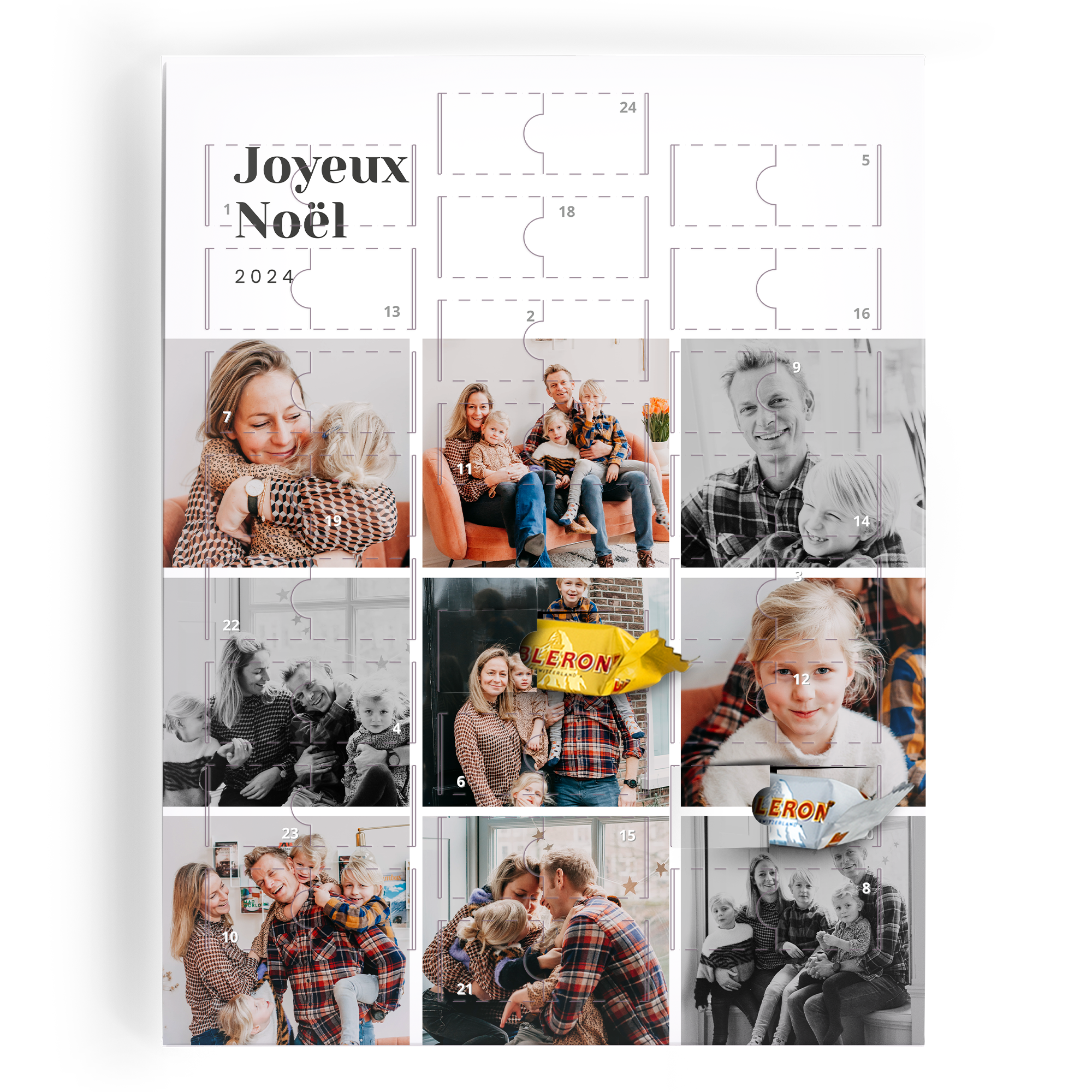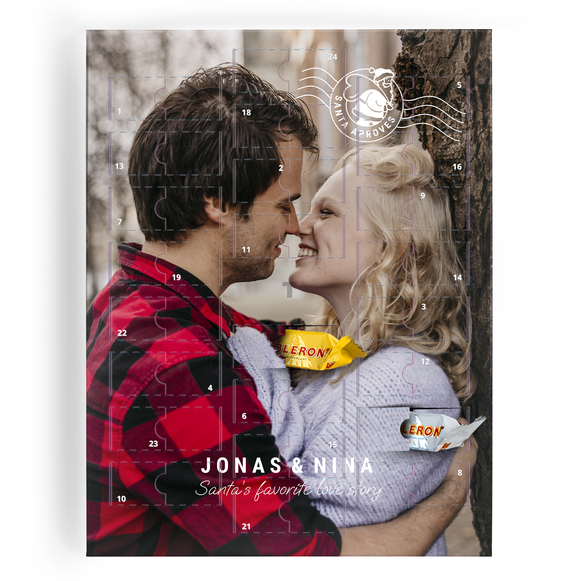 Experimente a magia da temporada de festas com o nosso Calendário do Advento Personalizado, uma maneira encantadora de contar os dias até o Natal. Celebre cada dia abrindo uma portinha para revelar uma doce surpresa. Este calendário do advento é verdadeiramente único, permitindo que você o personalize com suas fotos favoritas, trazendo um toque de calor pessoal à temporada festiva. Cada porta se abre para revelar uma seleção de chocolates premium, tornando cada dia que antecede o Natal uma lembrança deliciosa. Feito com carinho, este calendário do advento foi projetado para ser uma parte querida das suas tradições natalinas. O calendário apresenta materiais de alta qualidade e uma impressão bonita para garantir que se destaque em sua casa. Ideal como presente ou para uso pessoal, este calendário do advento é uma maneira maravilhosa de criar expectativa e construir memórias duradouras. Adicione suas fotos de família favoritas, nomes ou mensagens de Natal para torná-lo verdadeiramente seu. Com uma mistura perfeita de diversão e festividade, nosso Calendário do Advento Personalizado certamente trará alegria às suas celebrações de fim de ano.