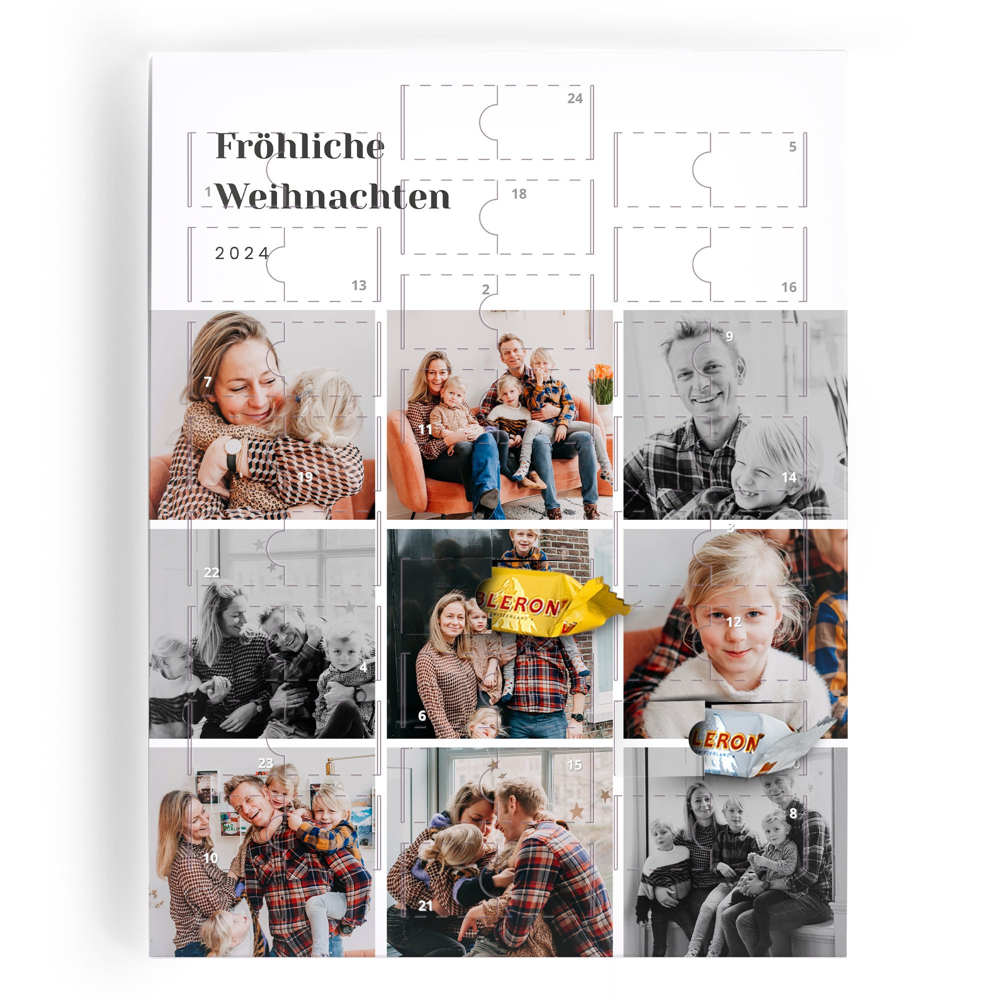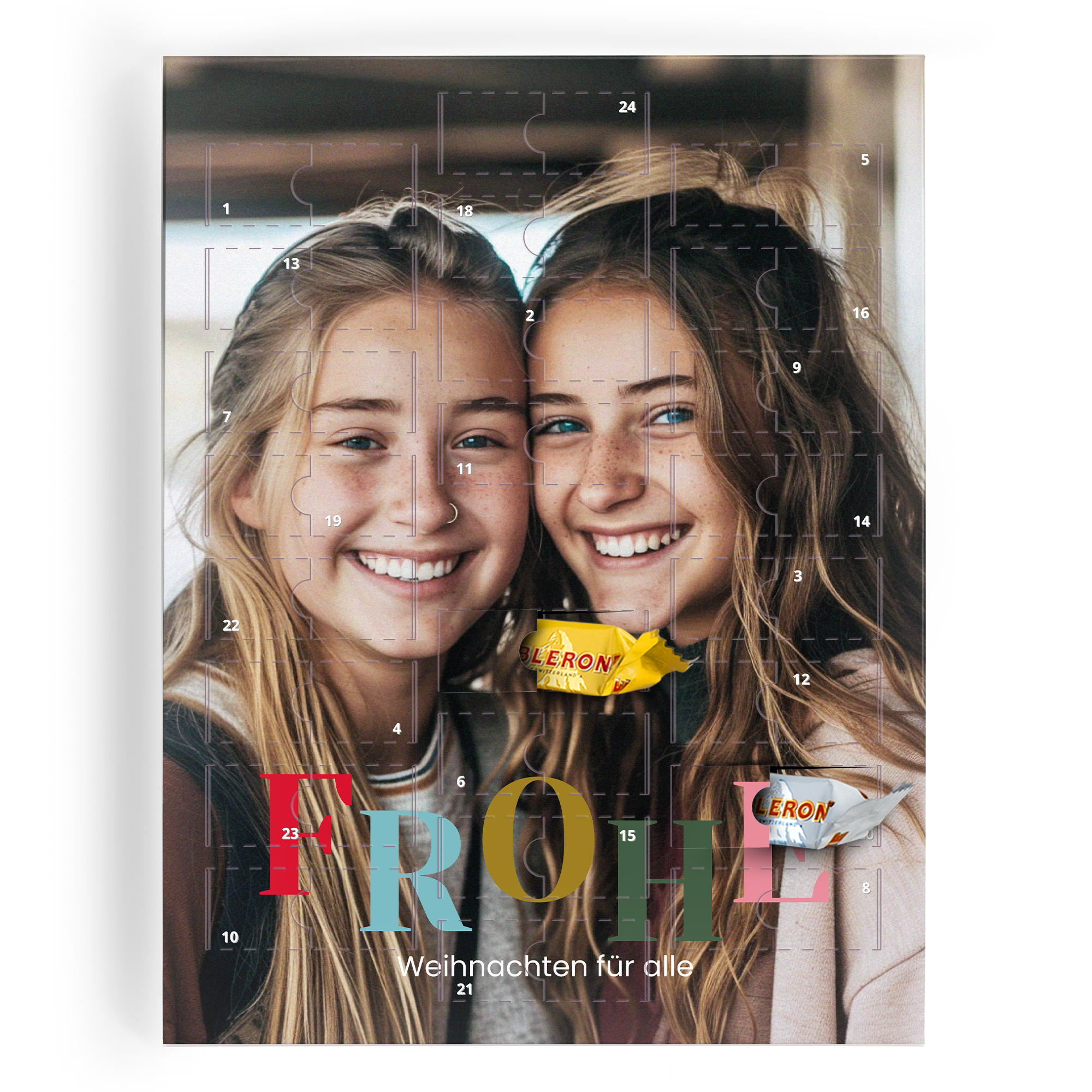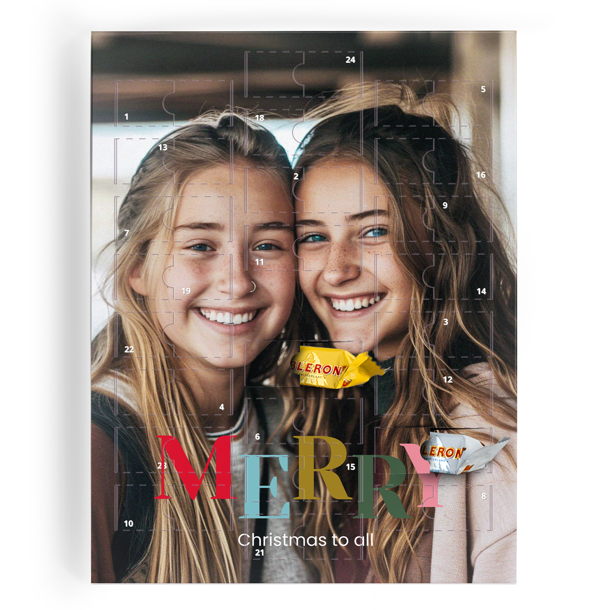 Calendário do advento com foto, nome e/ou texto. Repleto de 24 deliciosos chocolates Toblerone - uma contagem regressiva deliciosa para o Natal!