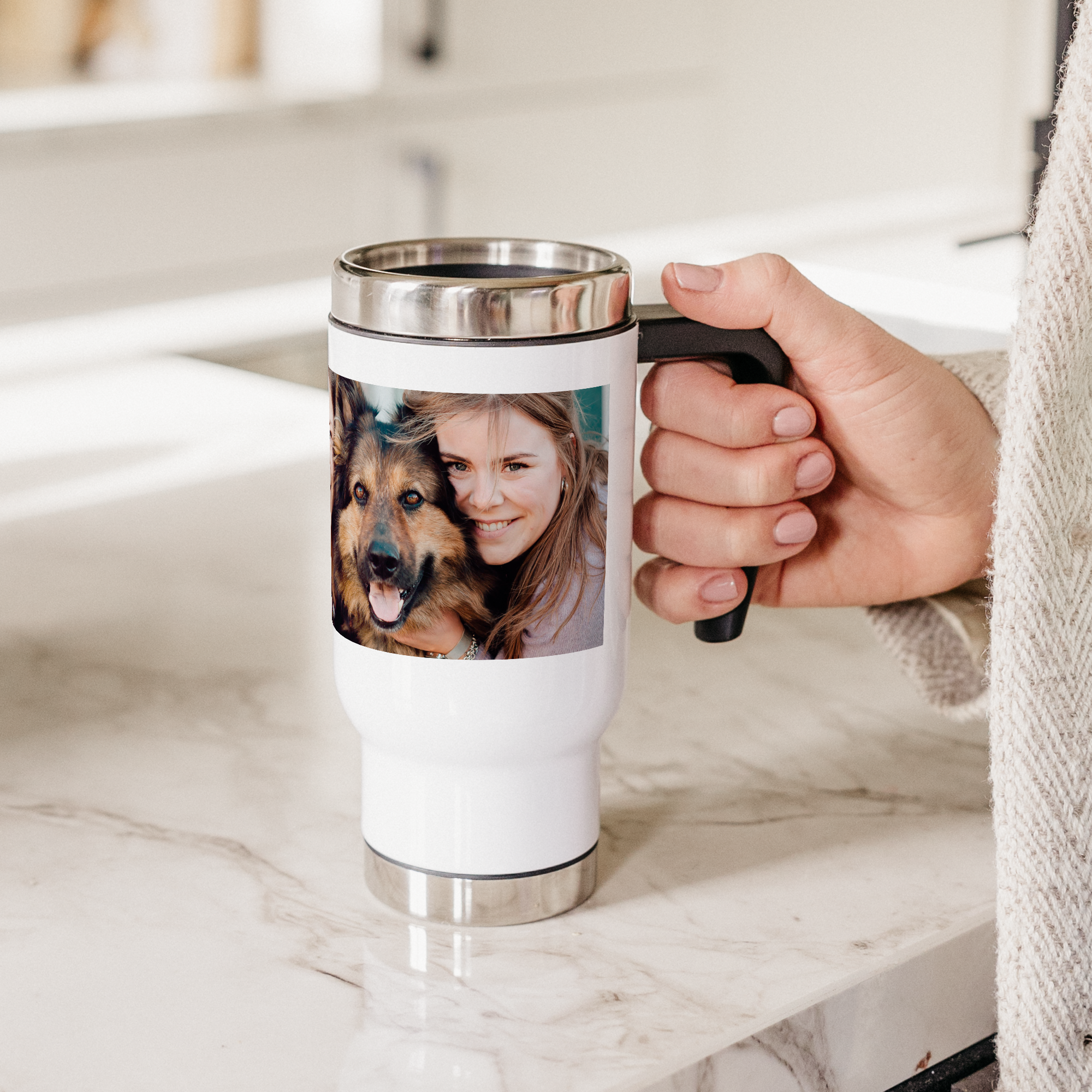 Uma caneca térmica é um presente prático. Imprima sua própria foto e texto na caneca térmica e você terá um presente incrível!