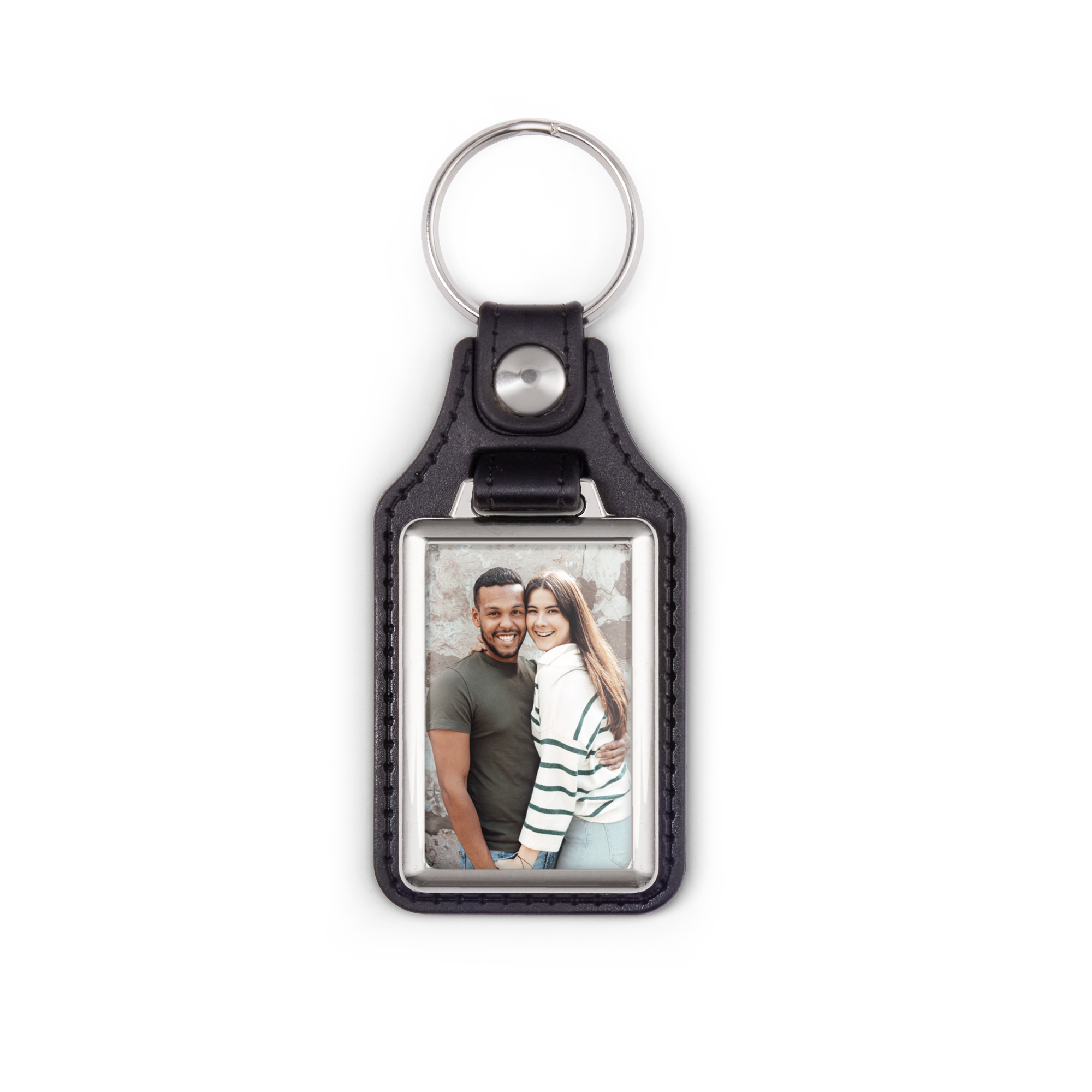 Mais informações sobre o chaveiro retangular:Material: Couro sintético e aço inoxidávelImpressão: foto atrás de PlexiglasTamanho: 7,5 x 5 cmTamanho da impressão: 2,5 x 4 cm