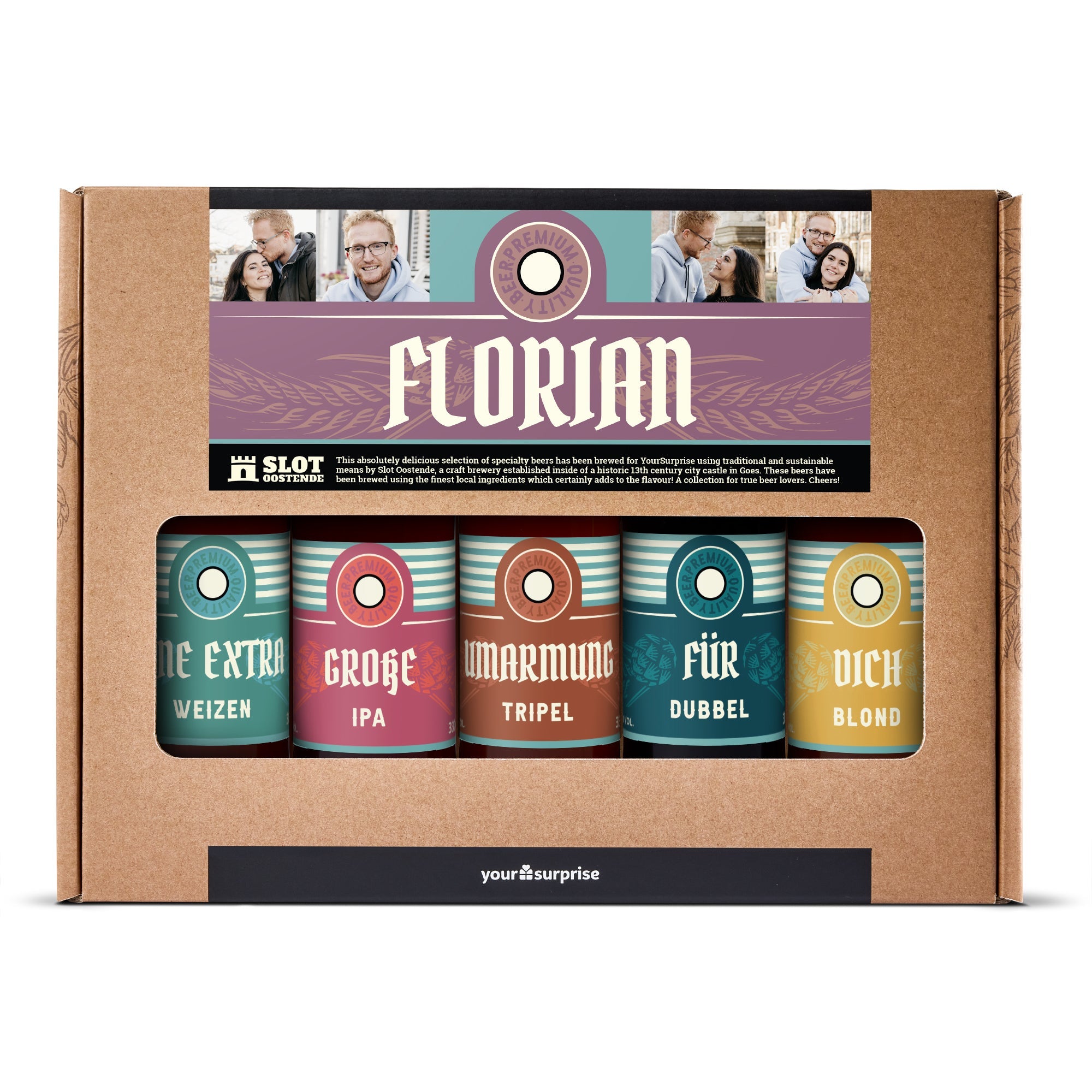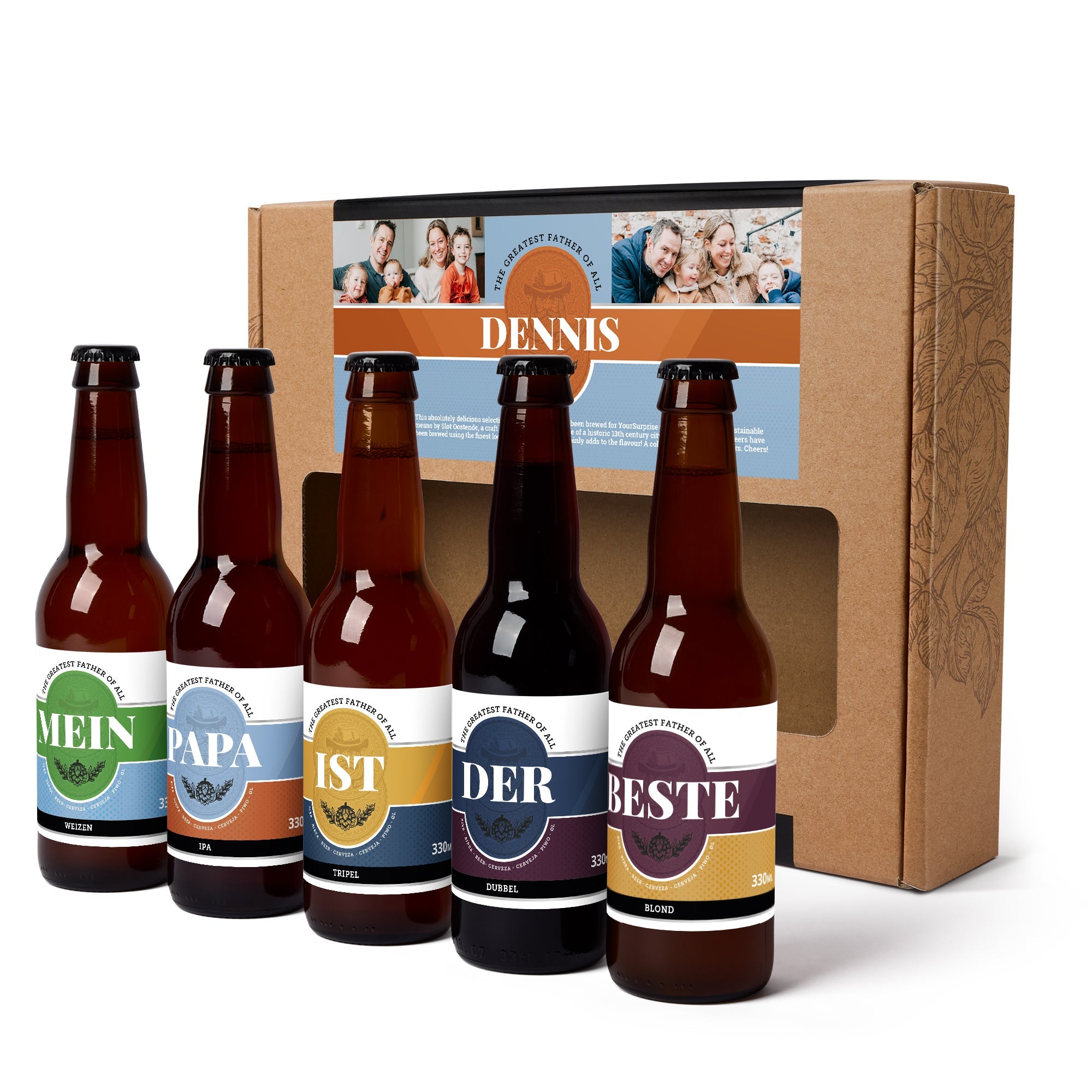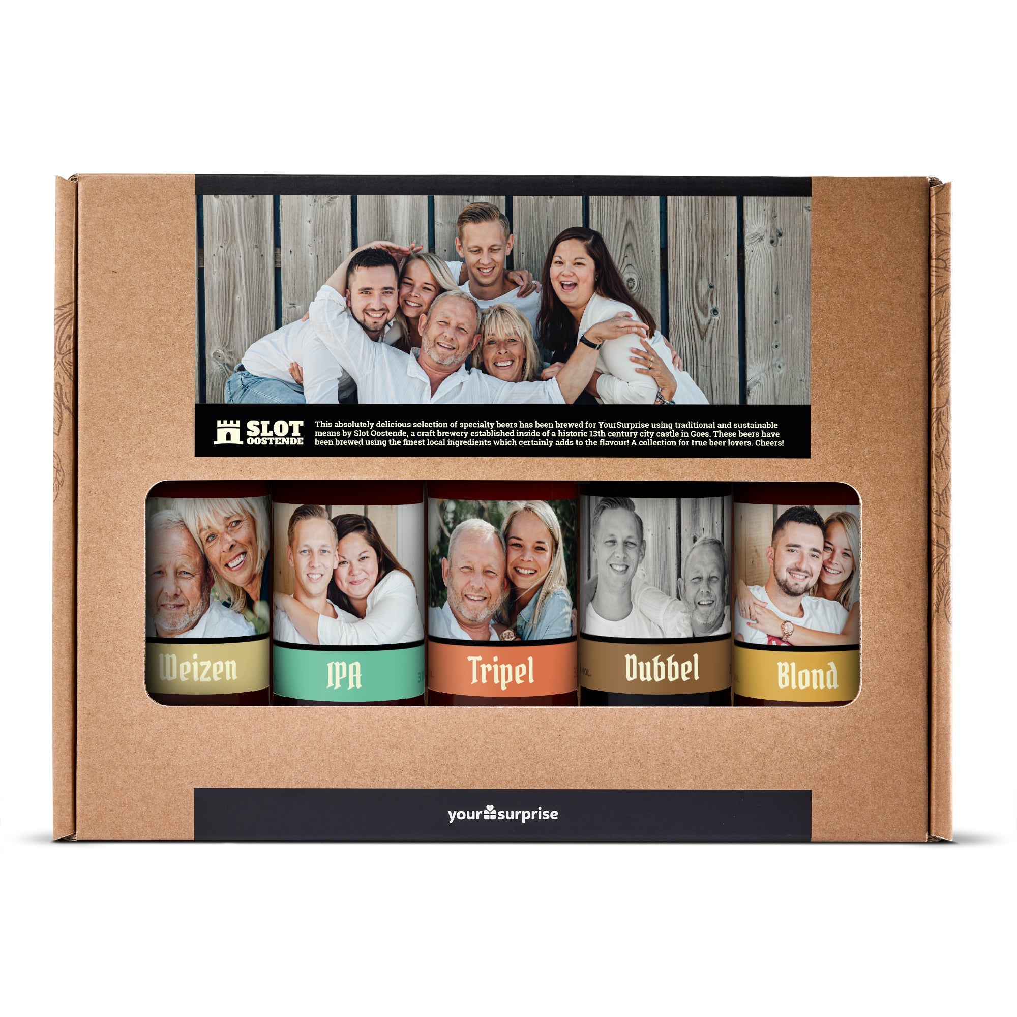 Sua coleção de cervejas - 5 garrafas personalizadas em caixa de presente personalizada