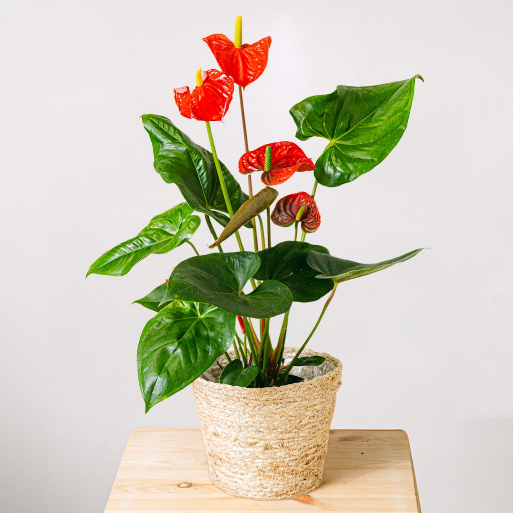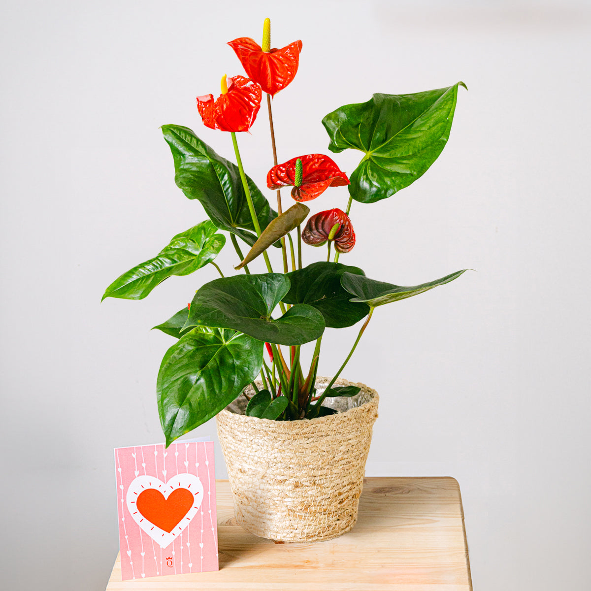 O antúrio vermelho, com suas flores em forma de coração, é uma planta favorita para um gesto romântico em uma data especial. Uma planta purificadora que não precisa de muitos cuidados para se manter saudável.