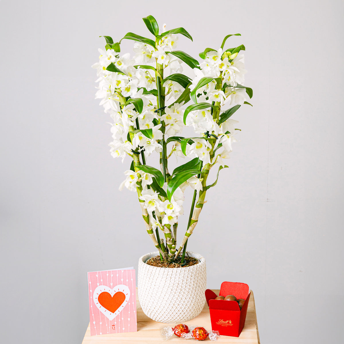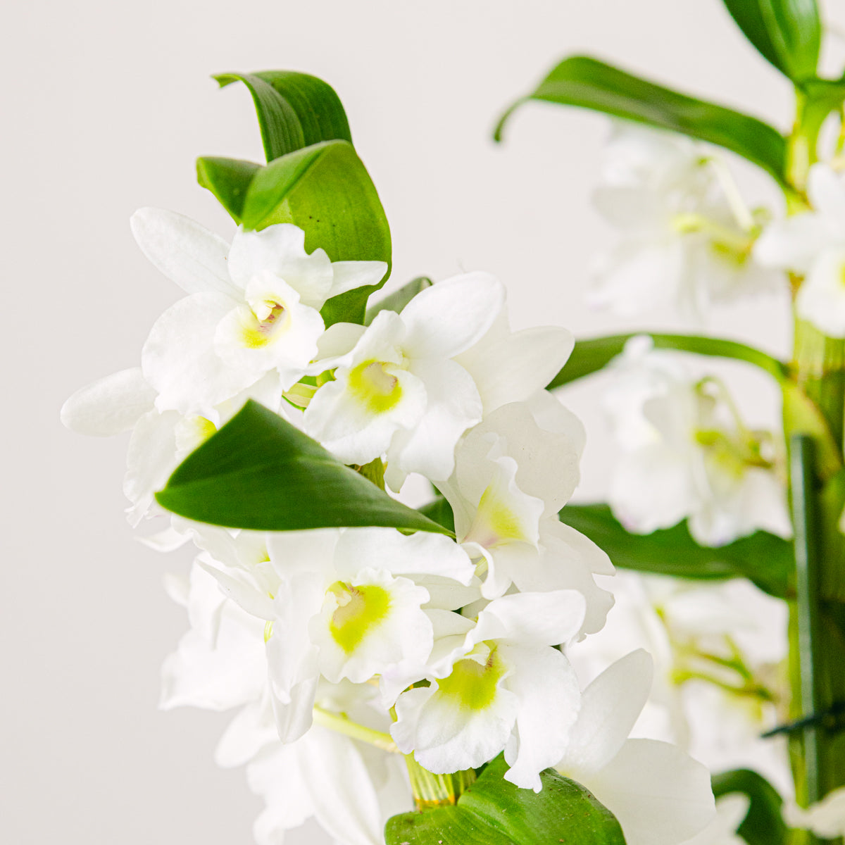Conhecida também como orquídea de bambu, a dendrônium é uma variedade de orquídea muito apreciada graças às suas lindas flores em forma de sino e sua forma ereta. Esta planta robusta e volumosa vem de florestas tropicais, por isso ficará muito grata se você borrifar suas folhas de vez em quando.