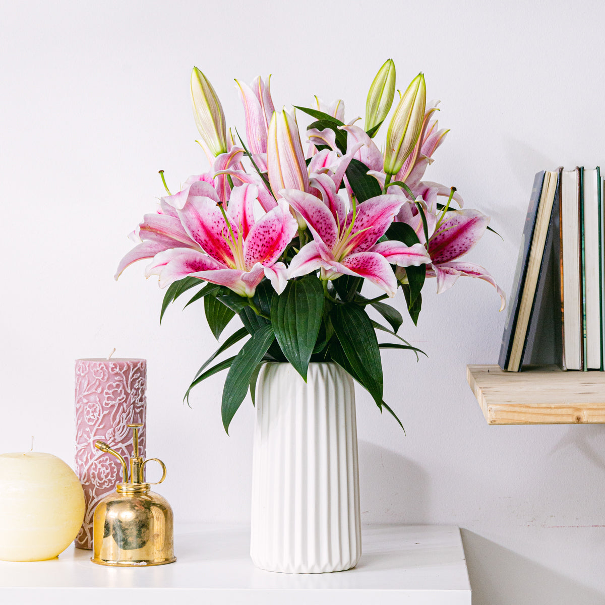 À medida que envelhecemos, entendemos o simples prazer de nos reunir com nossos entes queridos, cercando-nos de boa comida e compartilhando ideias e experiências. Vista essas noites com a energia e a felicidade da flor de lírio oriental rosa e crie memórias duradouras. Perfeito para... Estender a conversa após o jantar e aproveitar a companhia.
