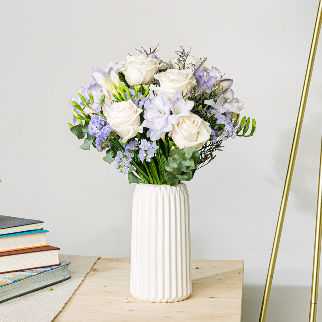 Os tons suaves e reconfortantes trazem paz interior. Este buquê simboliza a beleza da memória e o apoio incondicional, transmitindo uma mensagem de esperança.