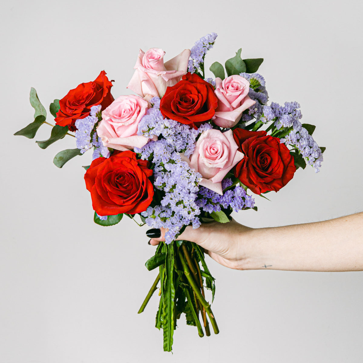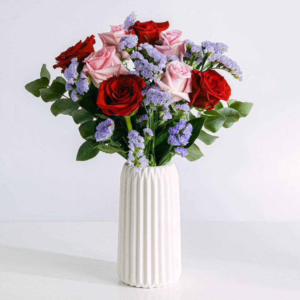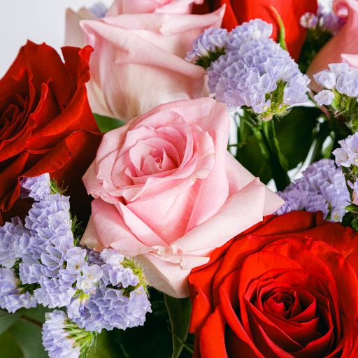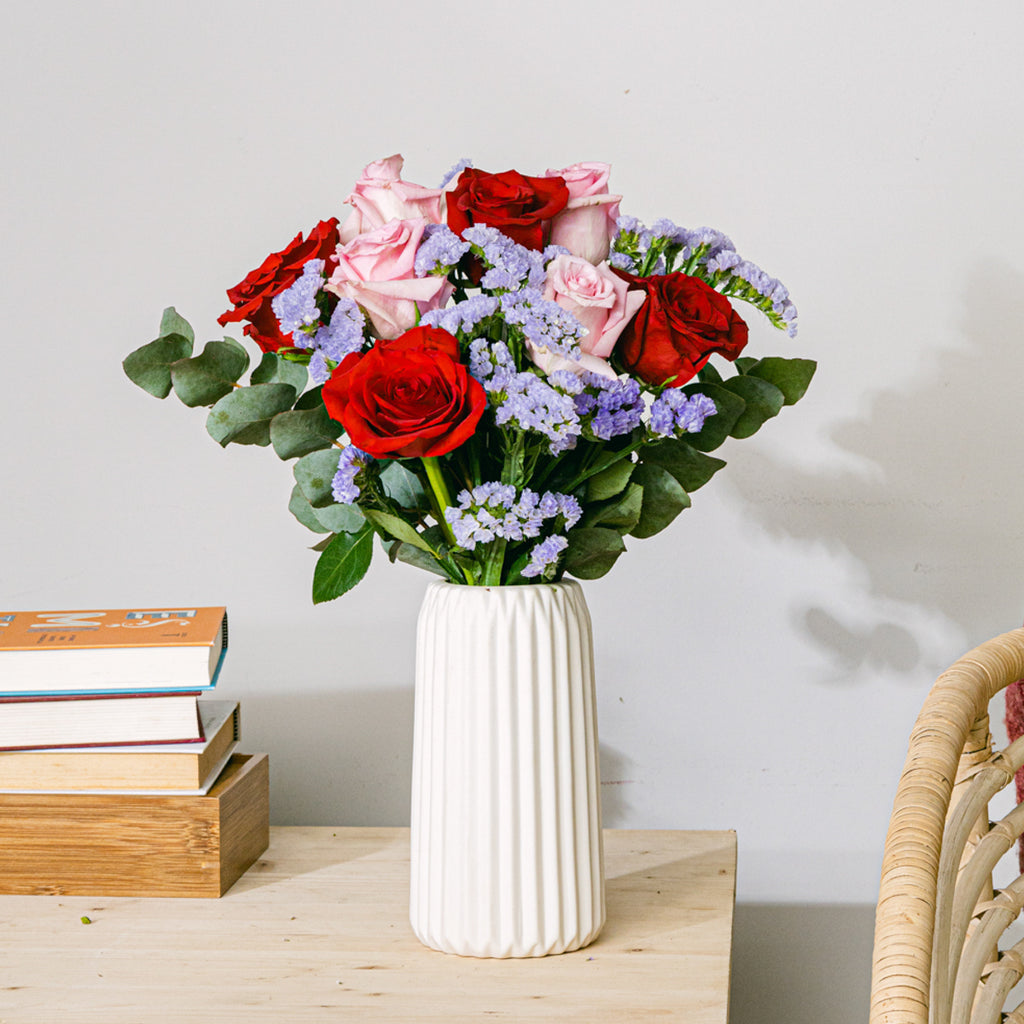A combinação clássica de vermelho e rosa irradia paixão e afeto, criando uma atmosfera de romance e admiração. Perfeito para expressar sentimentos profundos e celebrar momentos especiais.