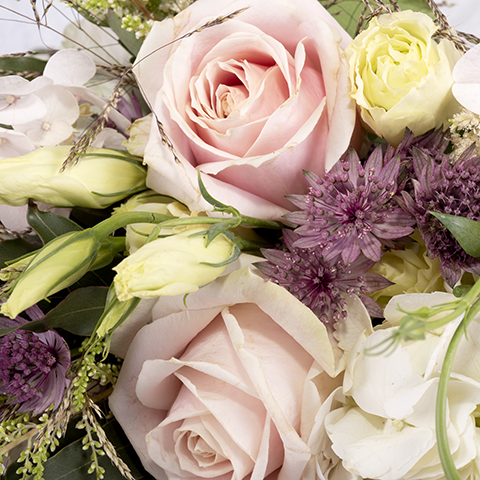 Encontre a suavidade e a beleza da natureza selecionadas especialmente para você neste lindo buquê de flores frescas. Rosas delicadas intercaladas com hortênsias brancas criam uma base exquisita e aveludada sobre a qual o restante da composição se balança. Lírios calla adicionam um toque de magia graças à sua flor espiral exótica, enquanto a verônica traz notas de força, valor e perseverança à arranjo. Envie um buquê transbordando boas sensações com esta opção VIP suprema e elegante.
