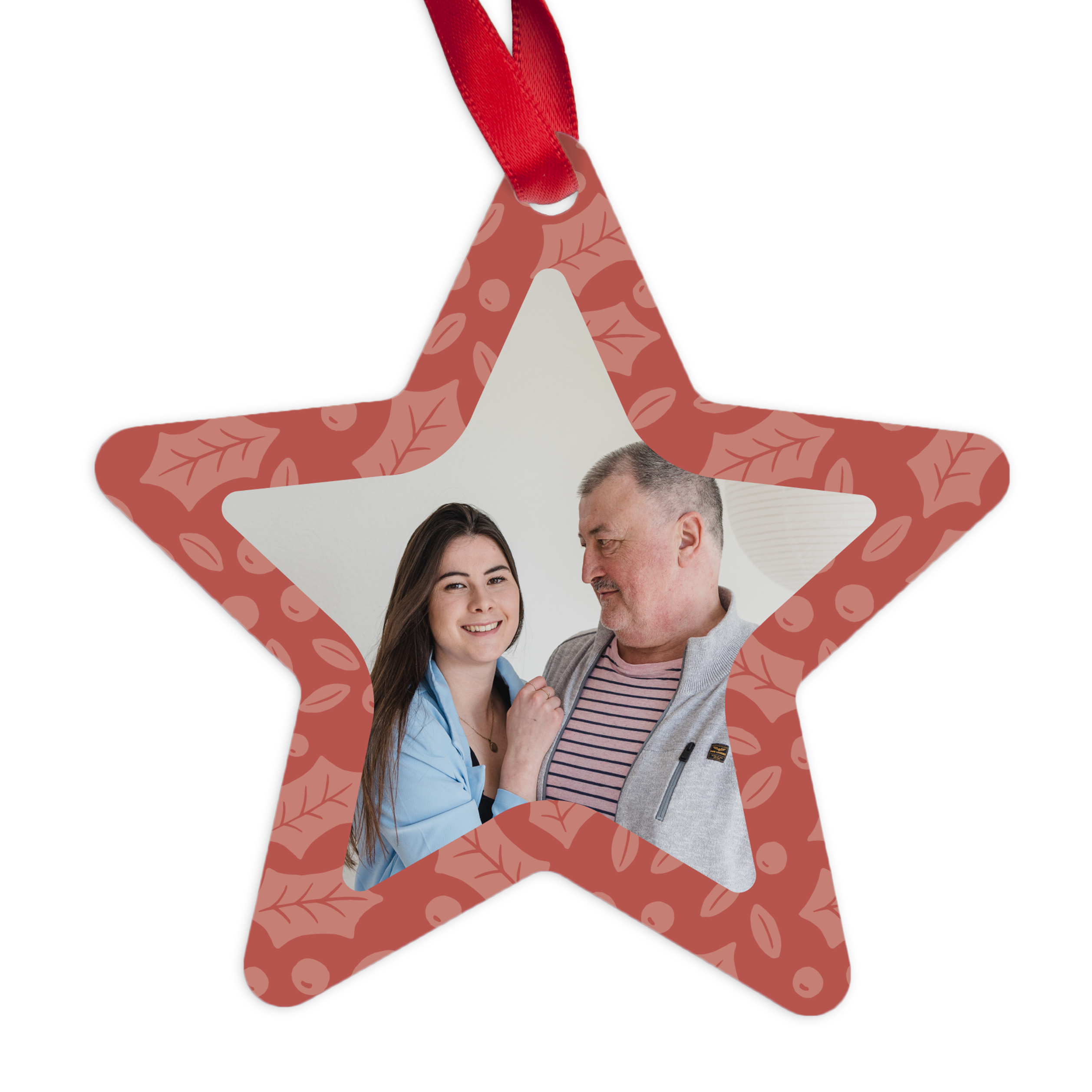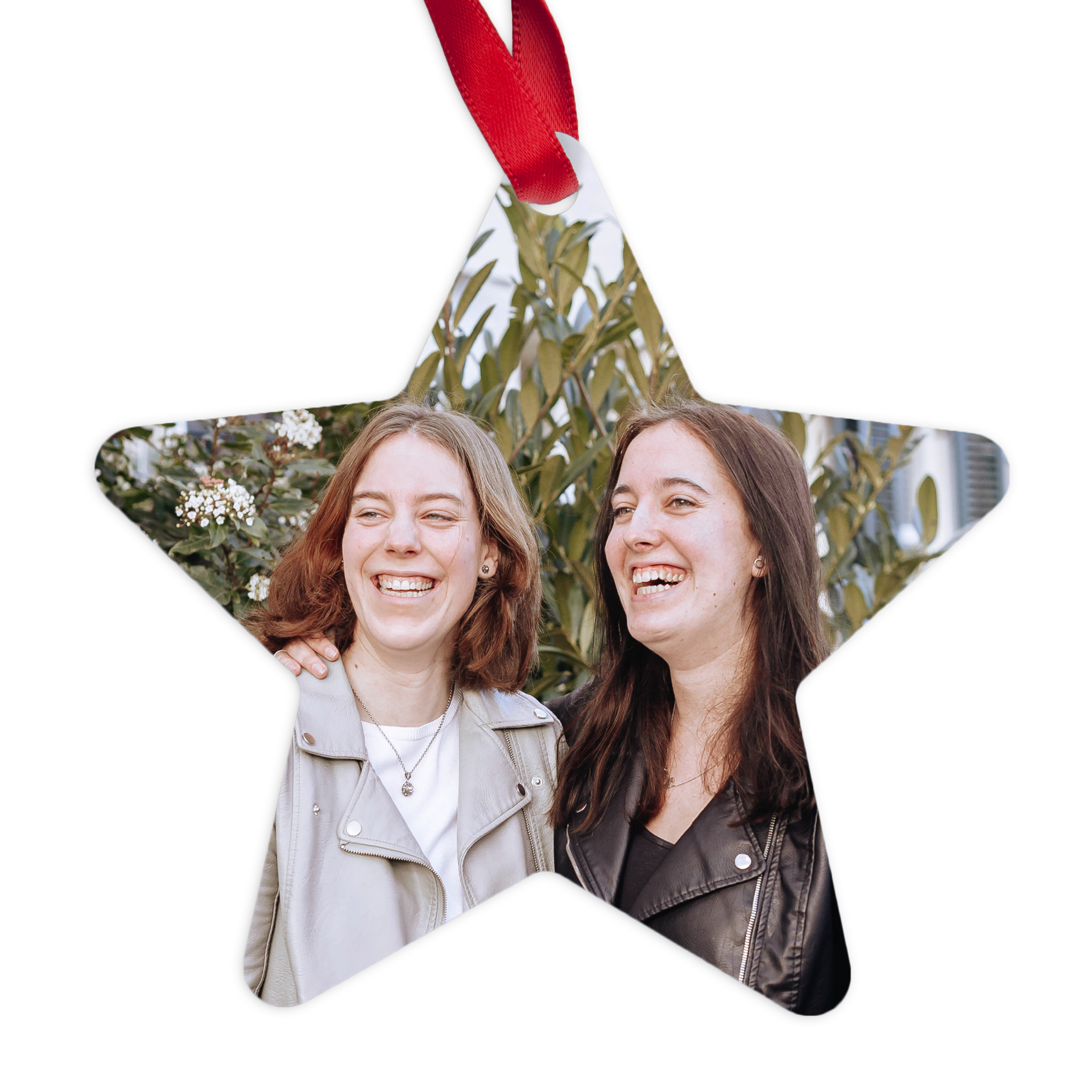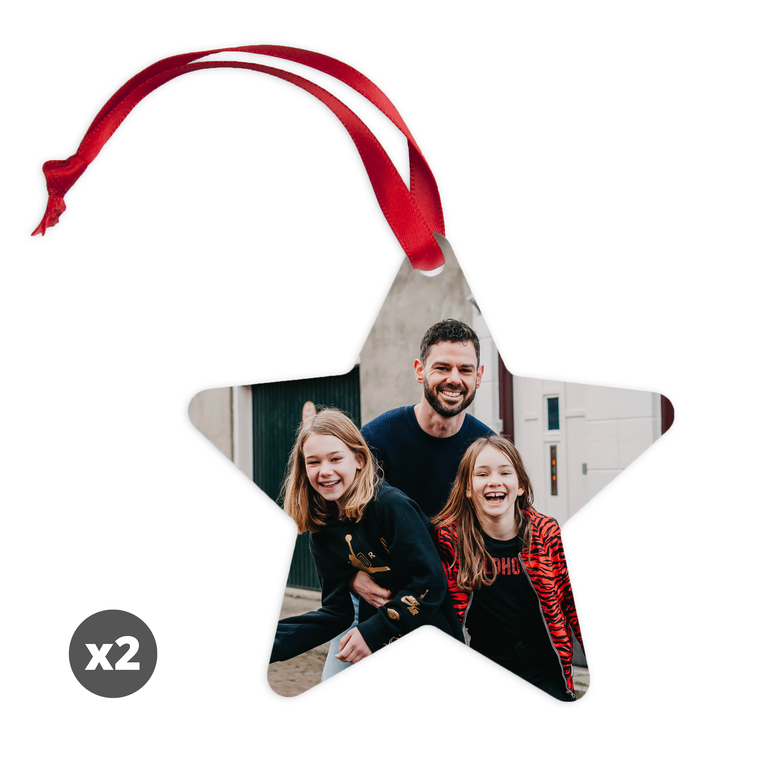 Peça um enfeite de Natal em forma de estrela com sua própria foto, logo ou texto em um design exclusivo. Decorações de Natal verdadeiramente originais!