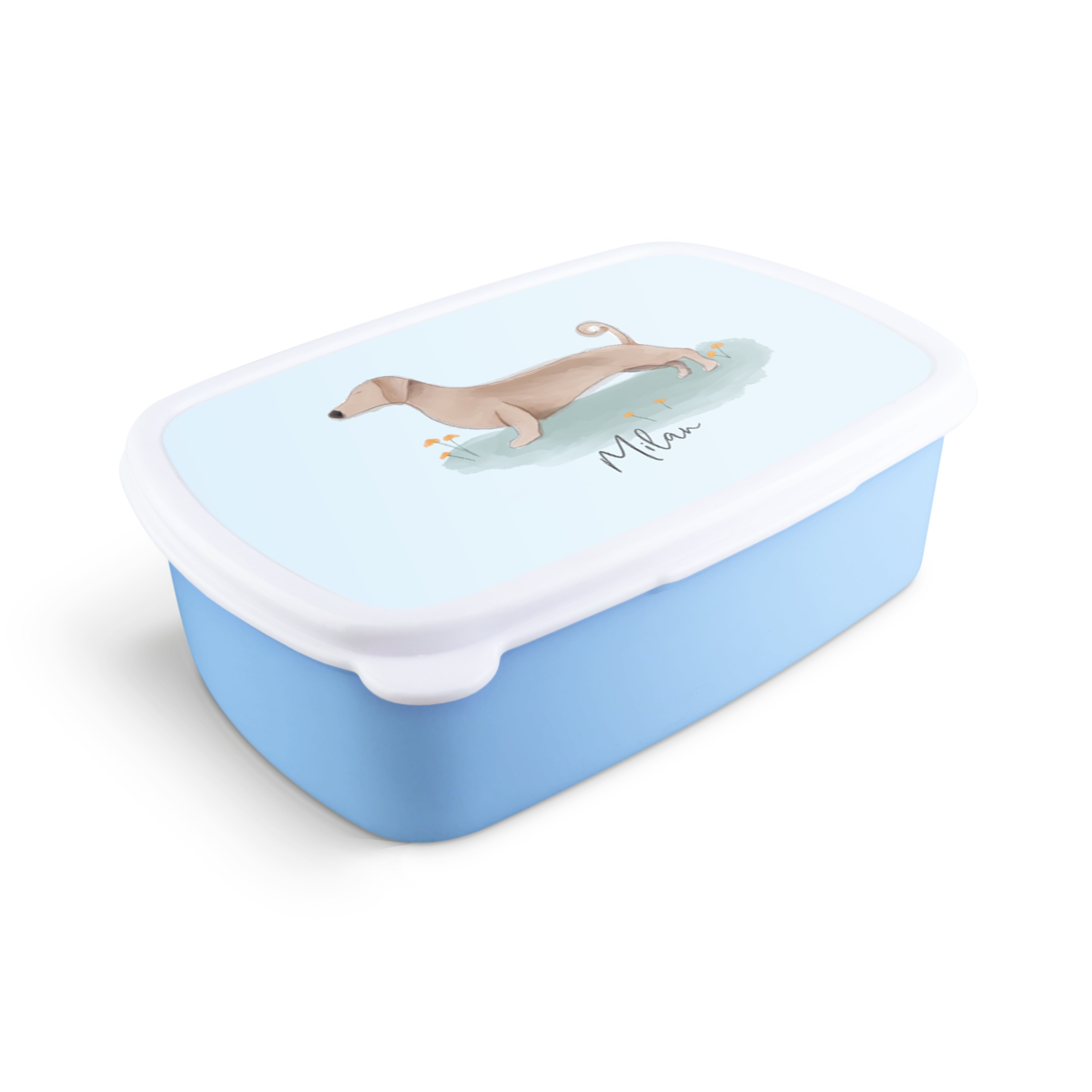 Uma lancheira personalizada com nome, foto ou texto. Disponível em diferentes cores.