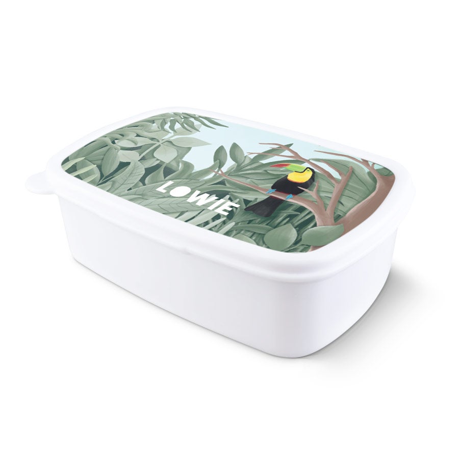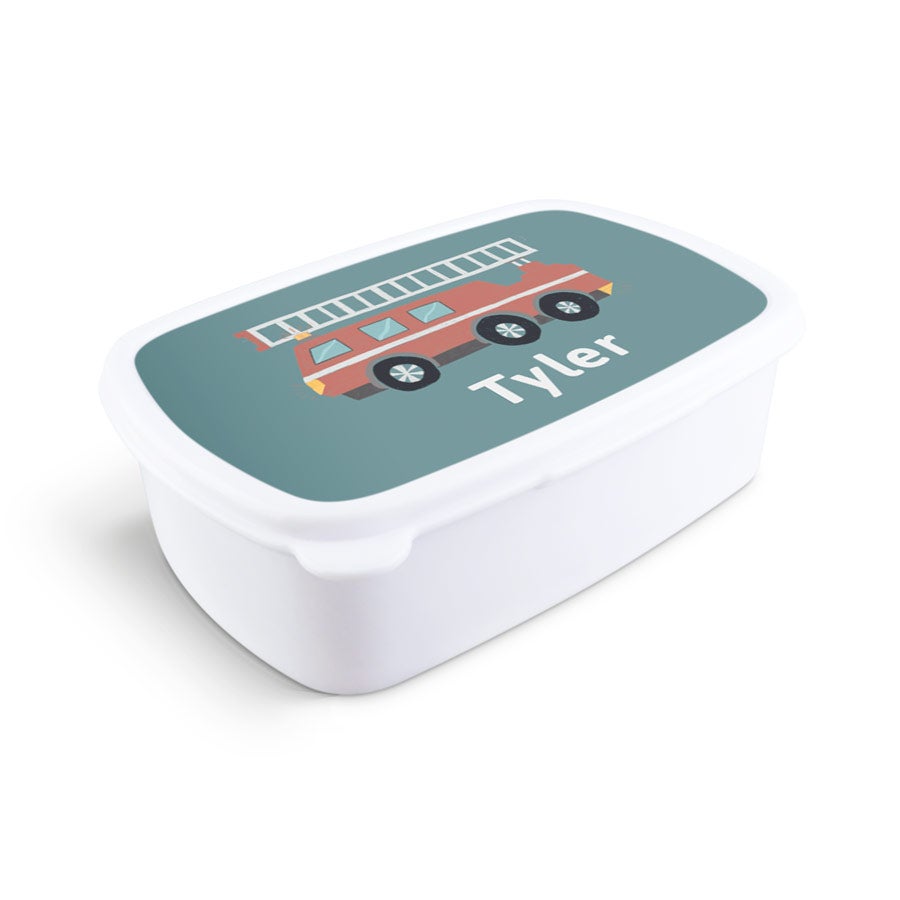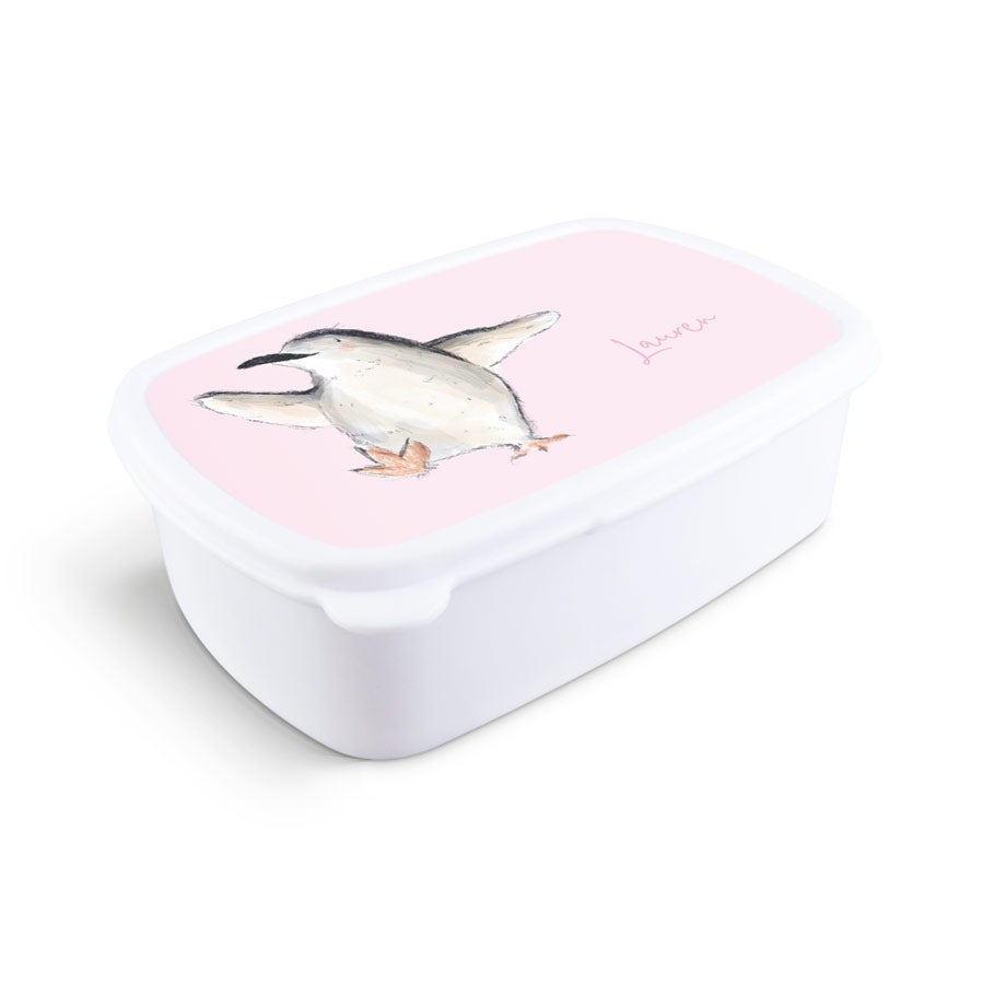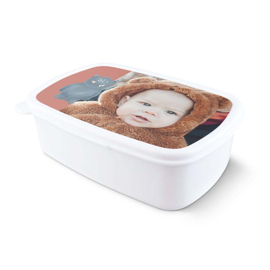 Uma lancheira personalizada com nome, foto ou texto. Disponível em diferentes cores.