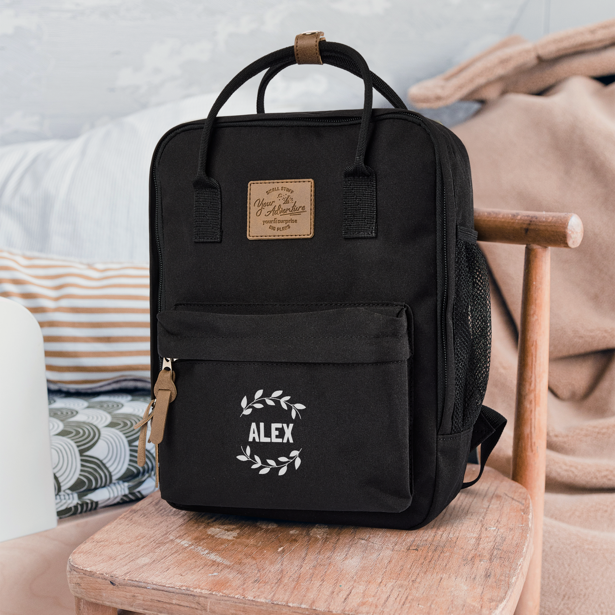 Mais informações sobre a mochila infantil:Cor: pretaDimensões: 32 x 23,5 x 11 cmCapacidade: 8 litrosMaterial: 98% poliéster, 2% couro PUMarca: Beagles OriginalsPersonalização: com nomeImpressão: perfeita e em cores vibrantesInformações adicionais: A mochila possui um compartimento principal espaçoso, uma seção frontal adicional com zíper e um bolso lateral para garrafa, além de vários bolsos internos e um compartimento acolchoado adequado para um tablet.
