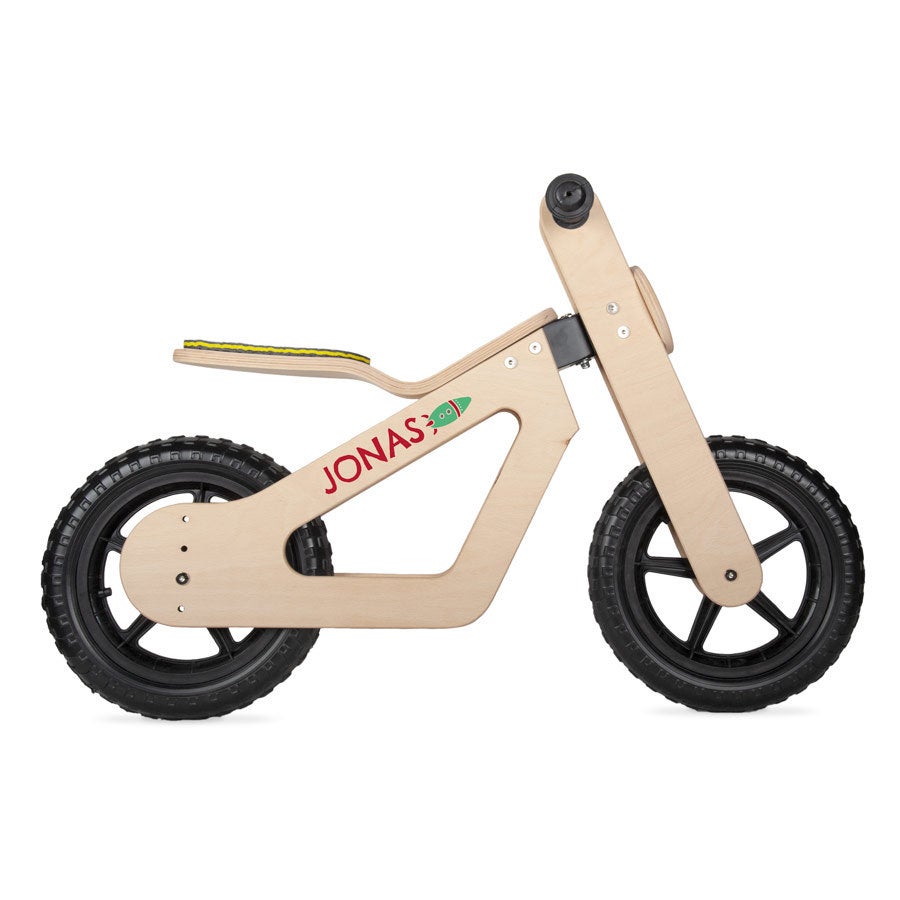 Bicicleta de equilíbrio de madeira com nome. Presente único para crianças. Madeira de faia de alta qualidade com adesivo brilhante. O presente perfeito para verdadeiros corredores!