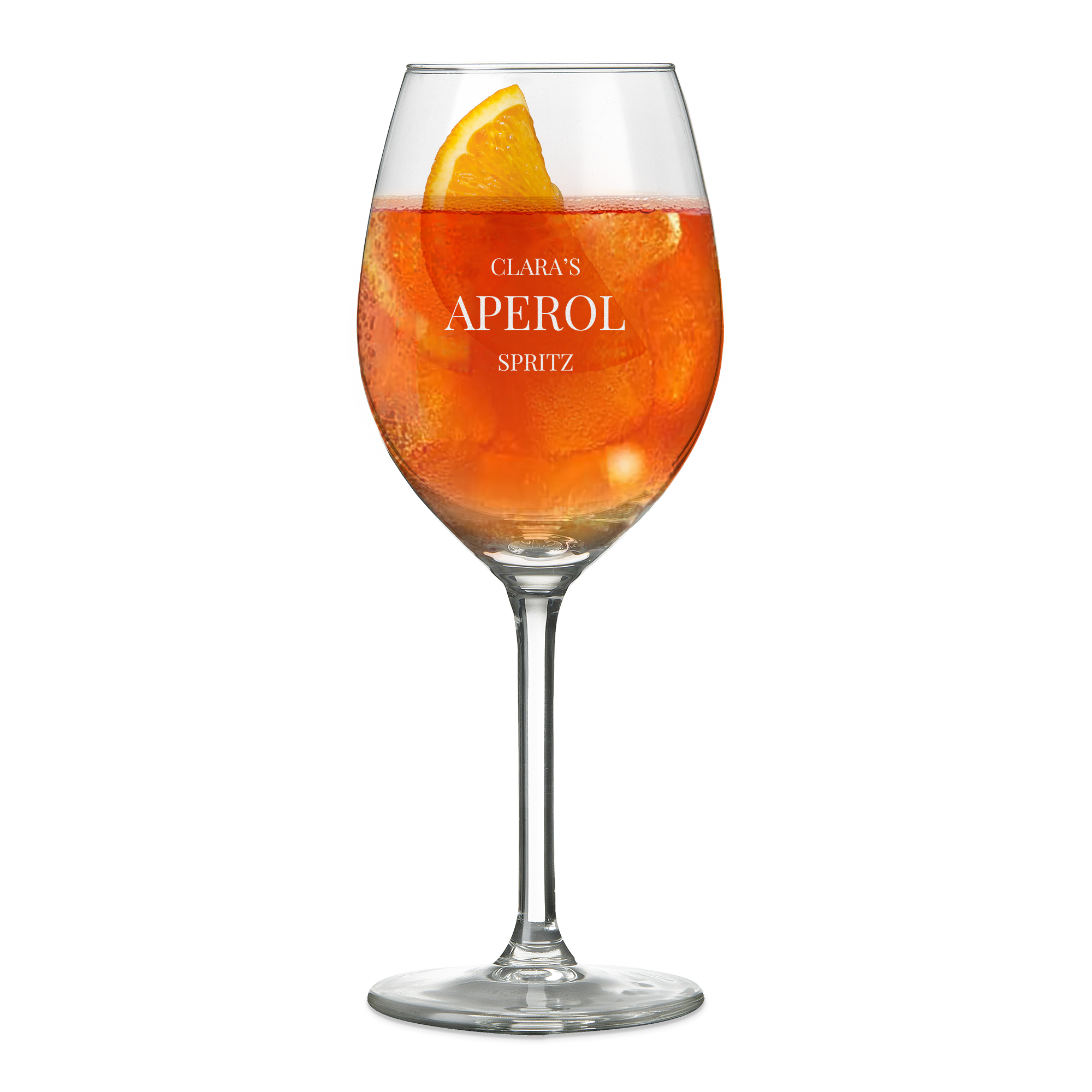 Um Aperol Spritz é ainda mais saboroso quando apreciado em um copo personalizado. Faça seu copo ser gravado com o nome ou texto de sua escolha. Saúde!