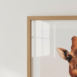Uma girafa gentil ilustrada em tons quentes, trazendo uma suave sensação de alegria e bondade. Uma obra de arte encantadora para compartilhar afeto.