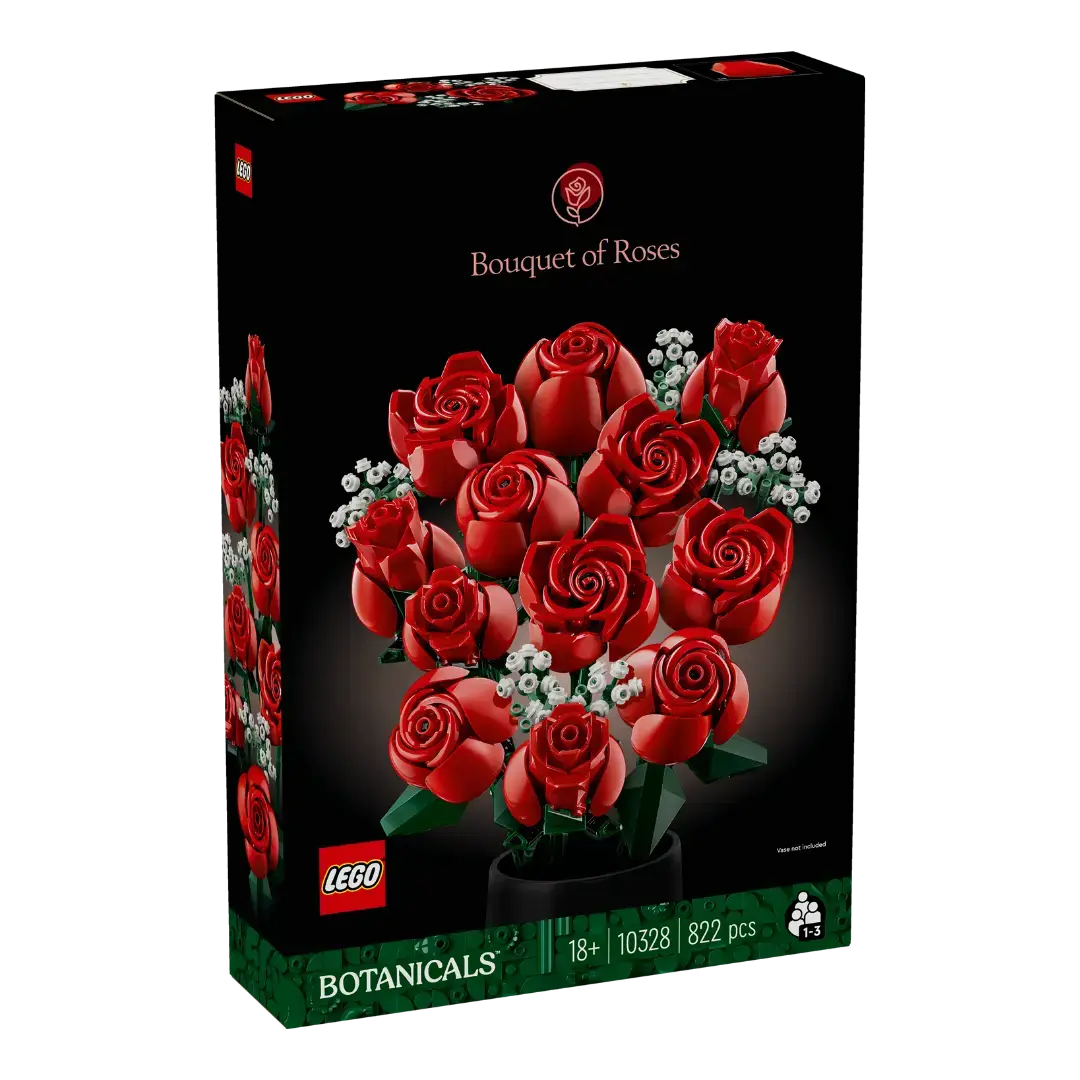 LEGO Botanical Collection Buquê de Rosas, um buquê escultórico que capta a beleza eterna das rosas, completo com delicado falso tico.