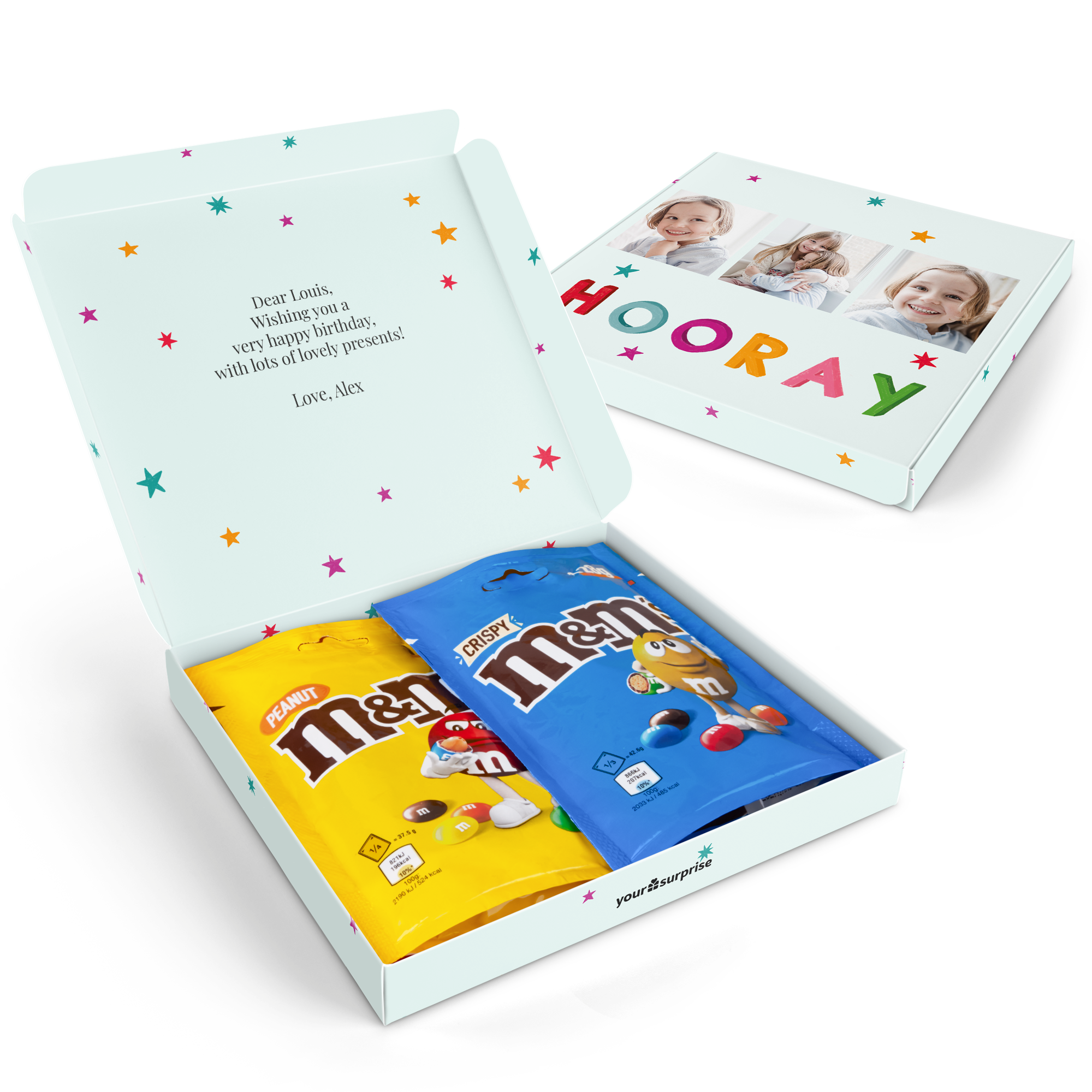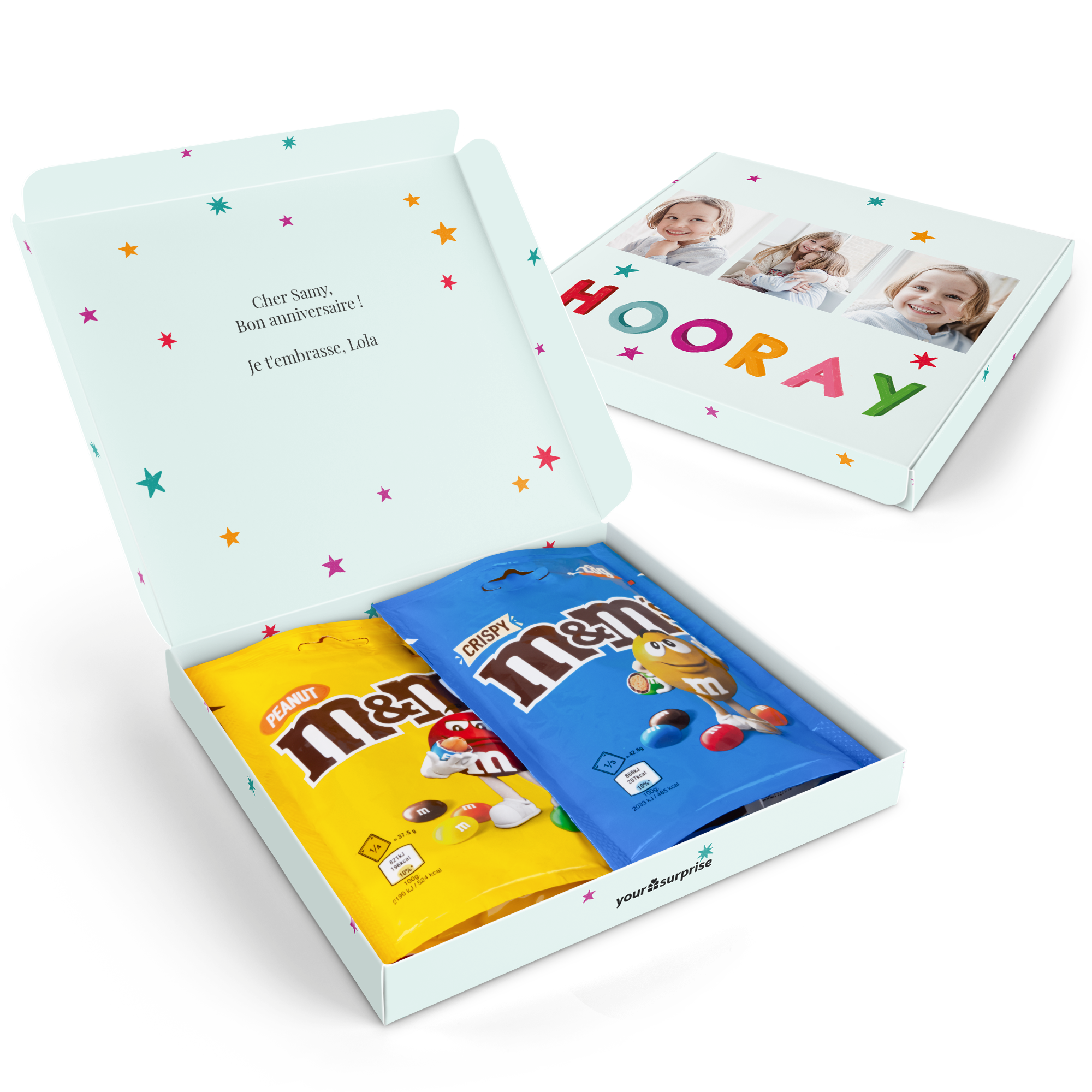 Deliciosa caixa de chocolates M&M's personalizada com a imagem e o texto de sua escolha. Surpreenda com este presente saboroso!