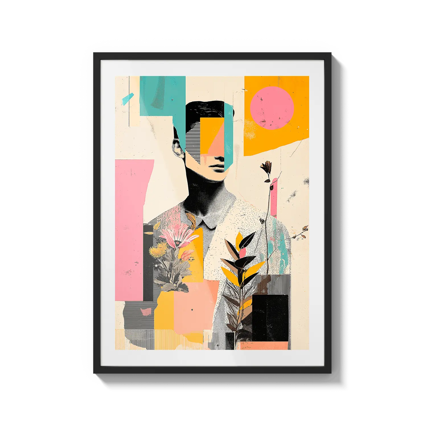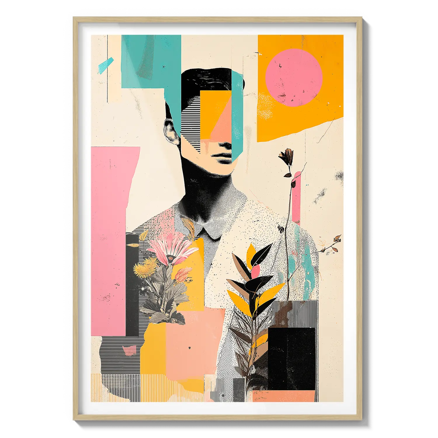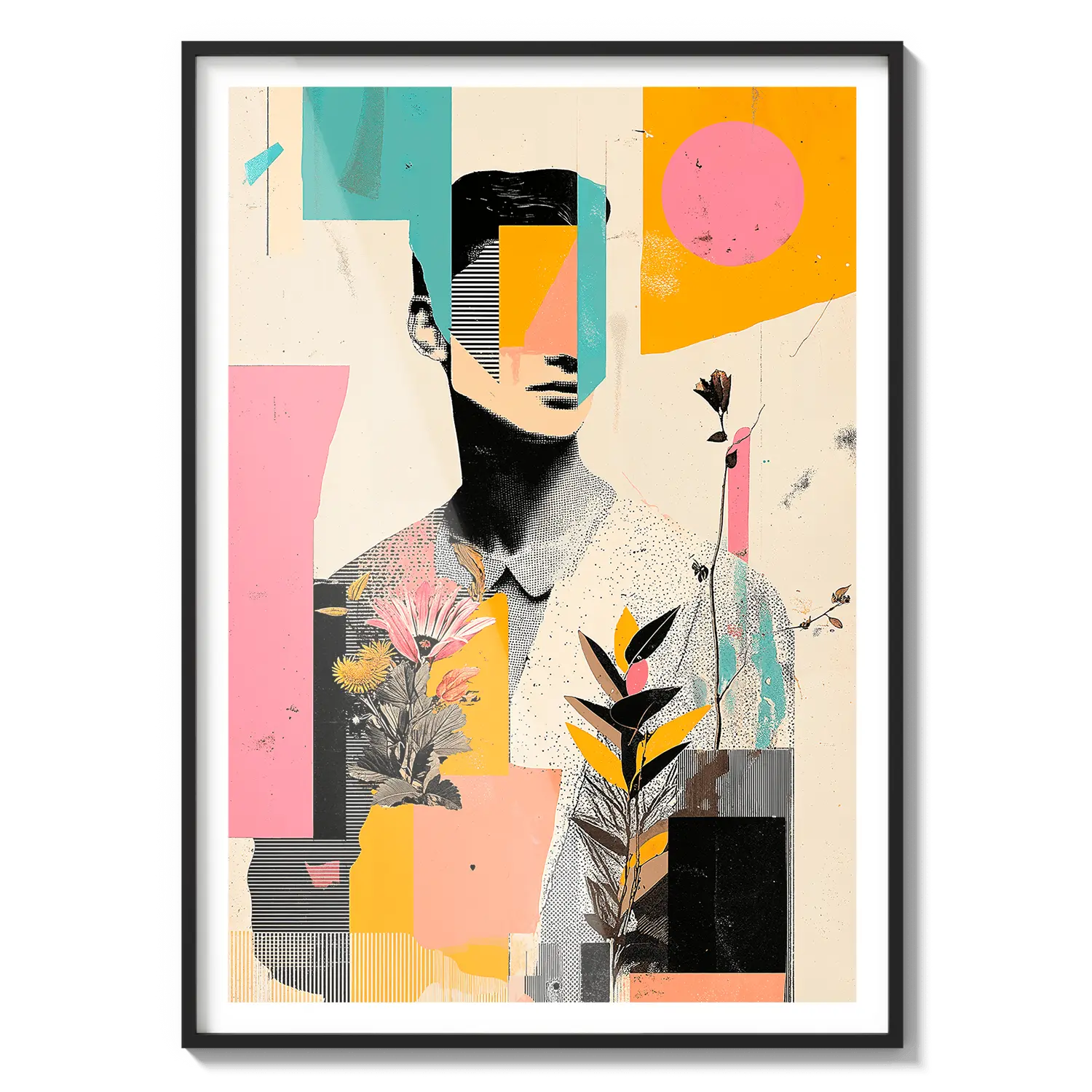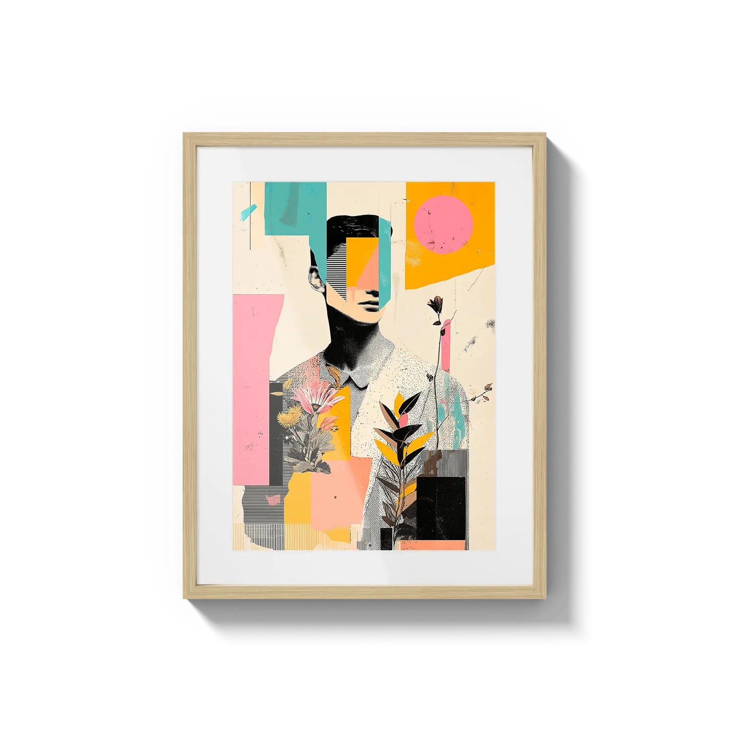 Um retrato geométrico colorido que mistura formas ousadas e ritmo moderno. Uma opção de presente nova e vibrante.