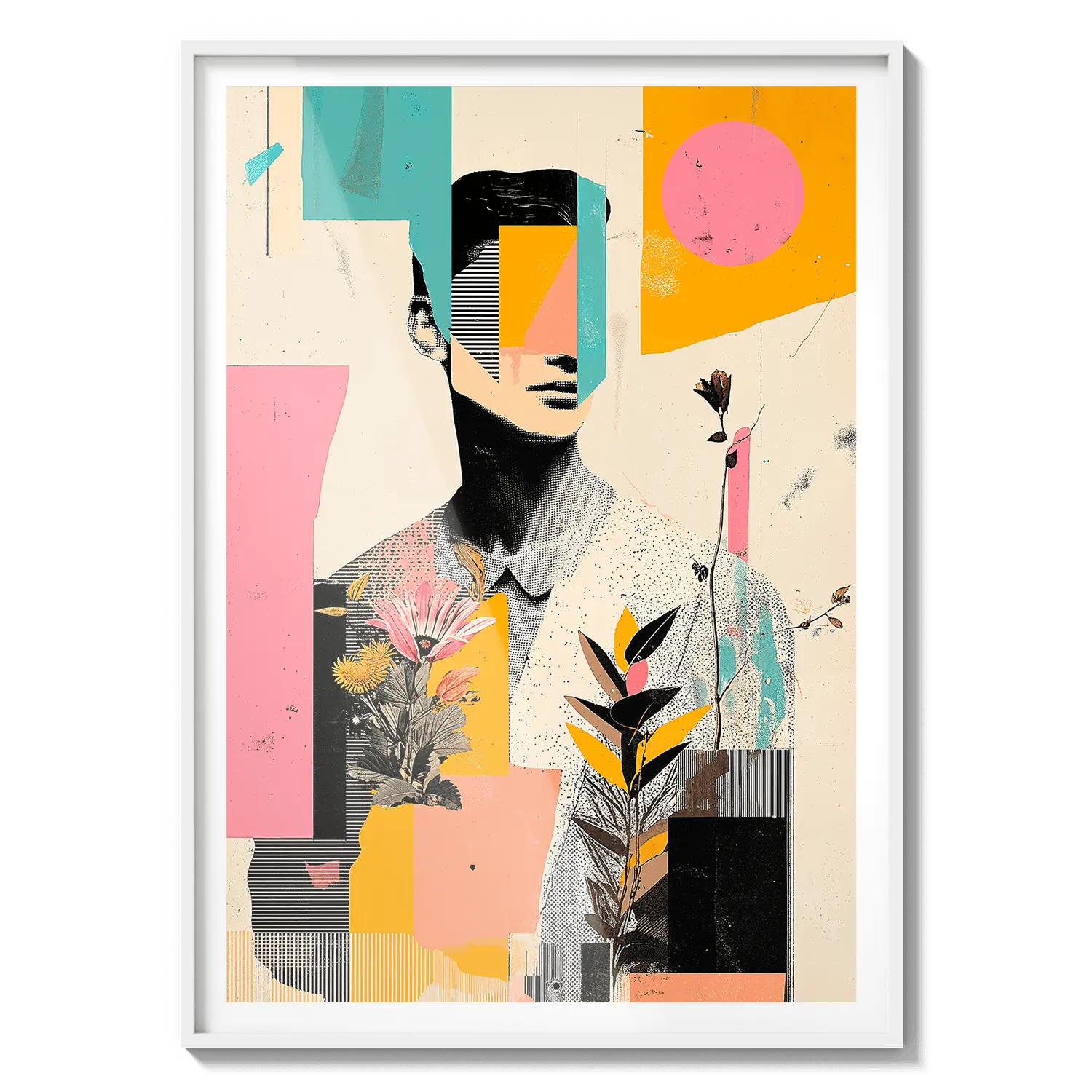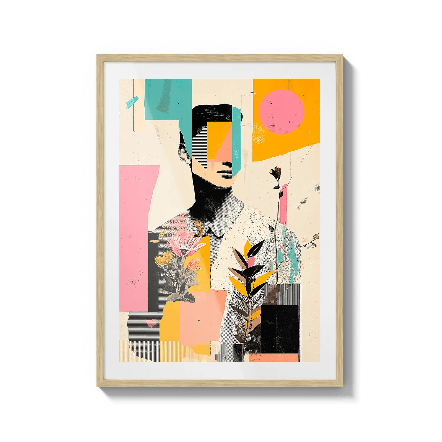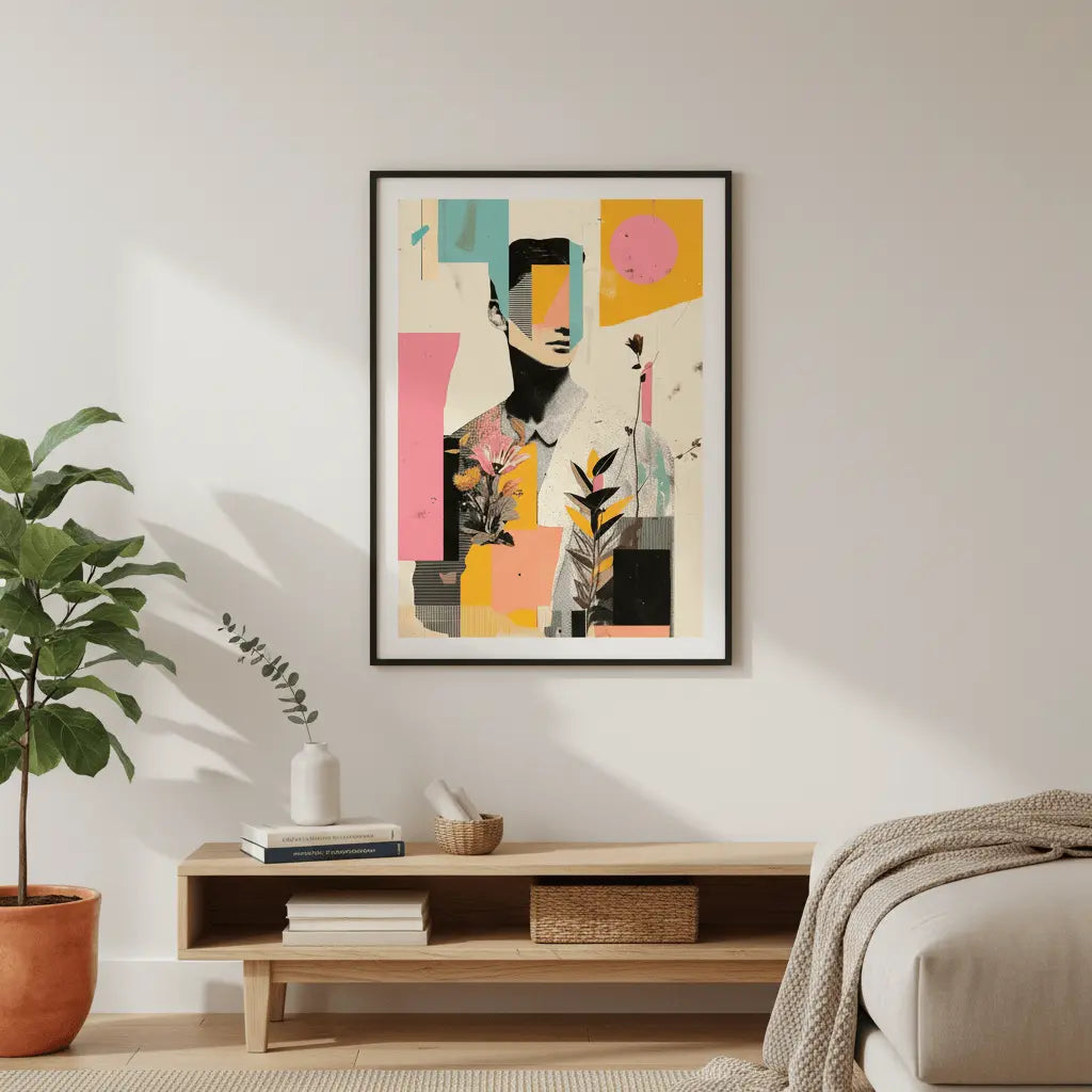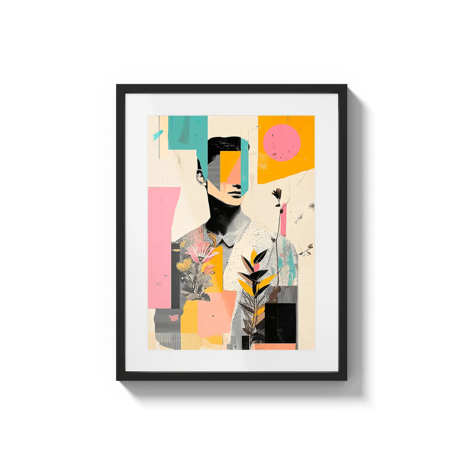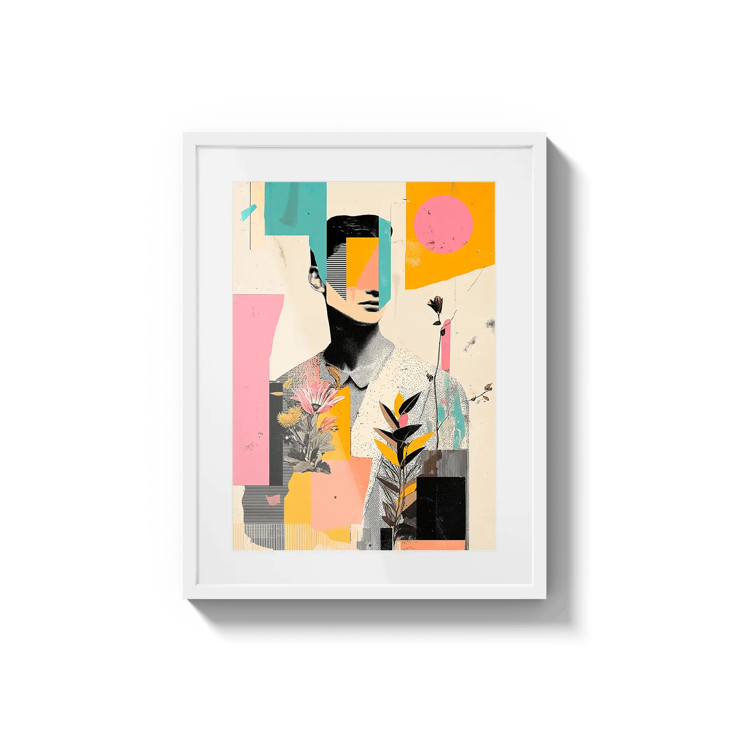 Um retrato geométrico colorido que mistura formas ousadas e ritmo moderno. Uma opção de presente nova e vibrante.
