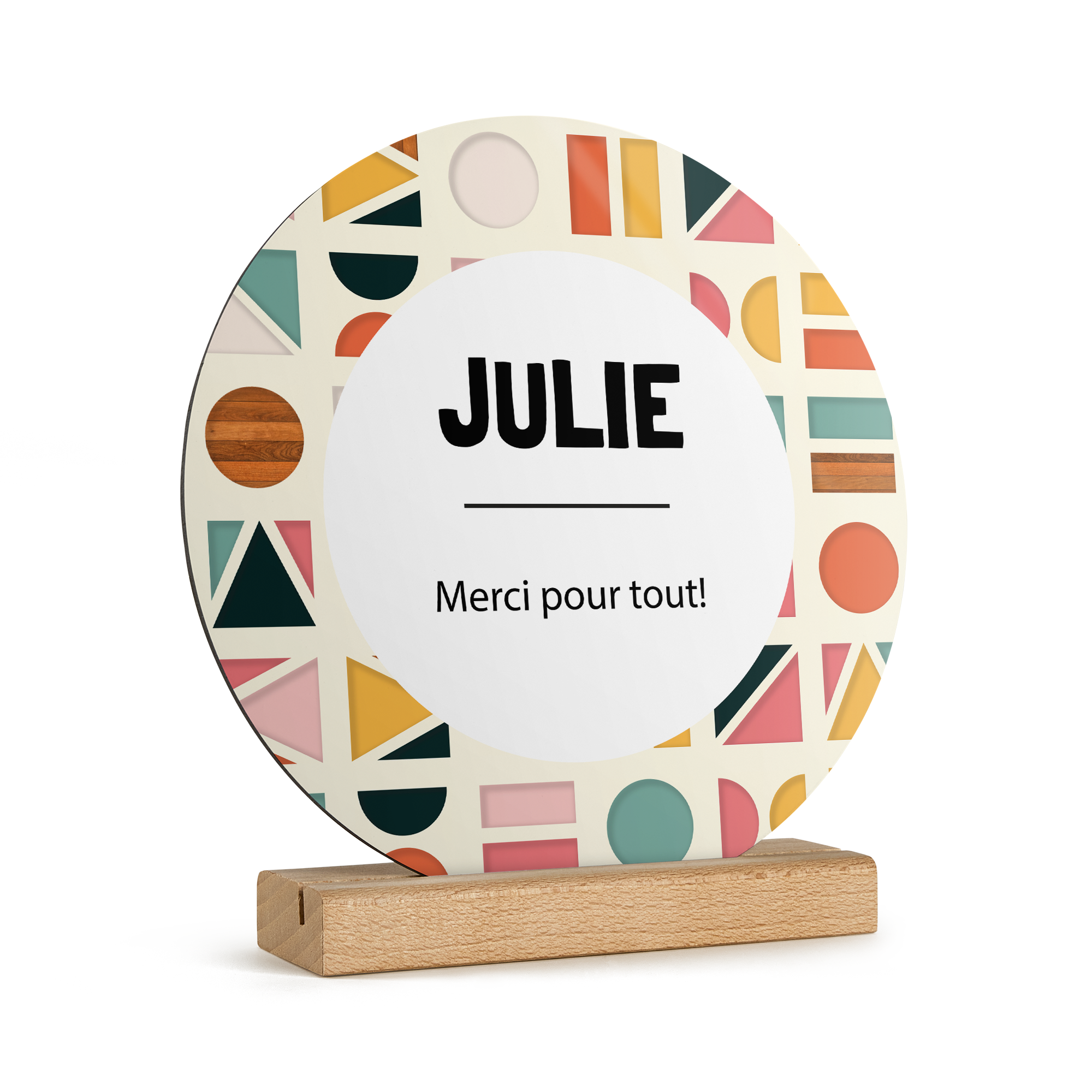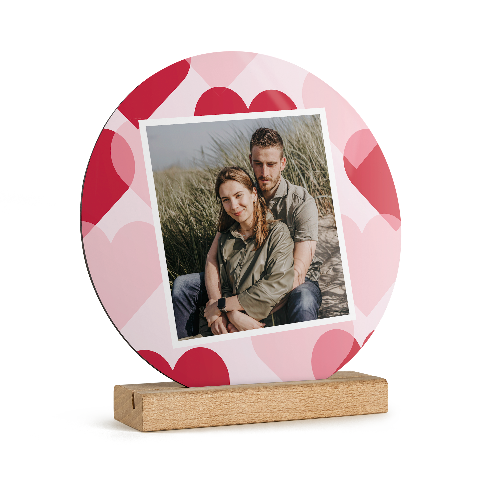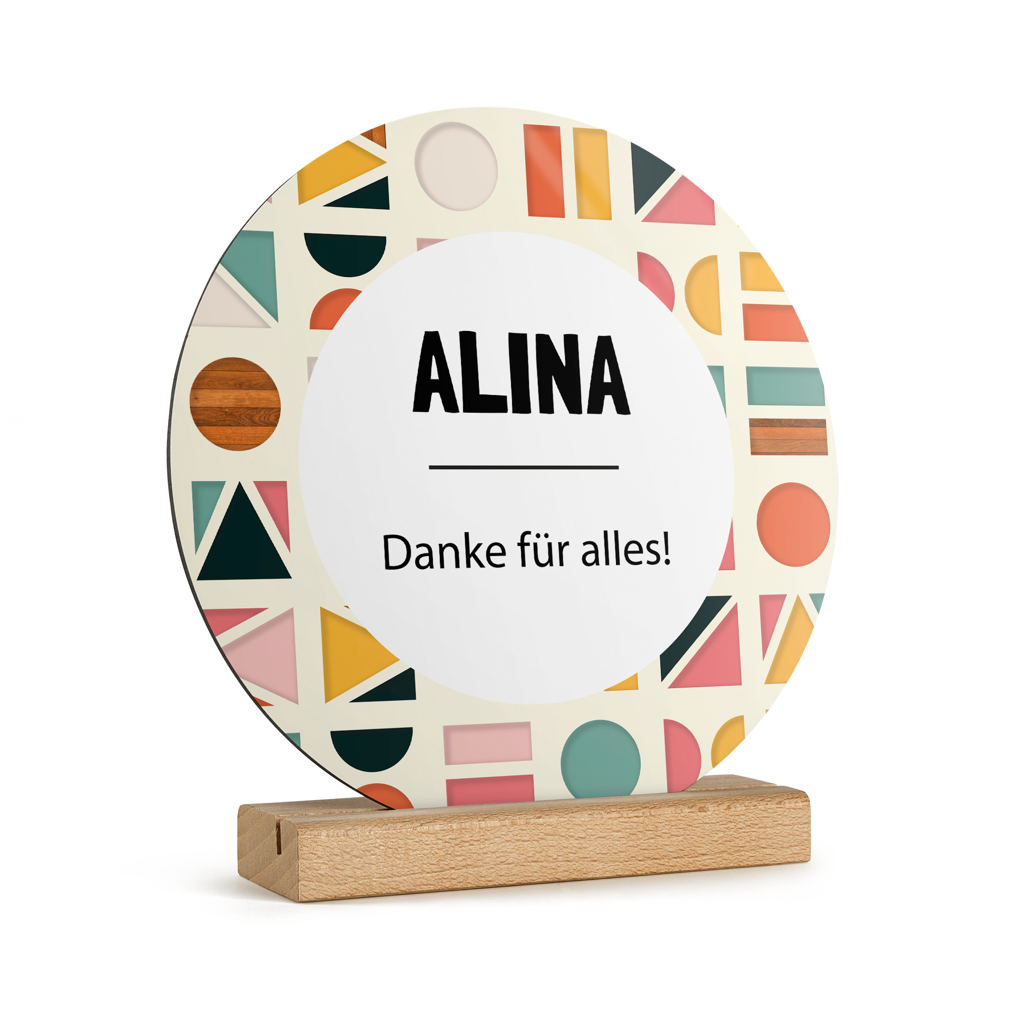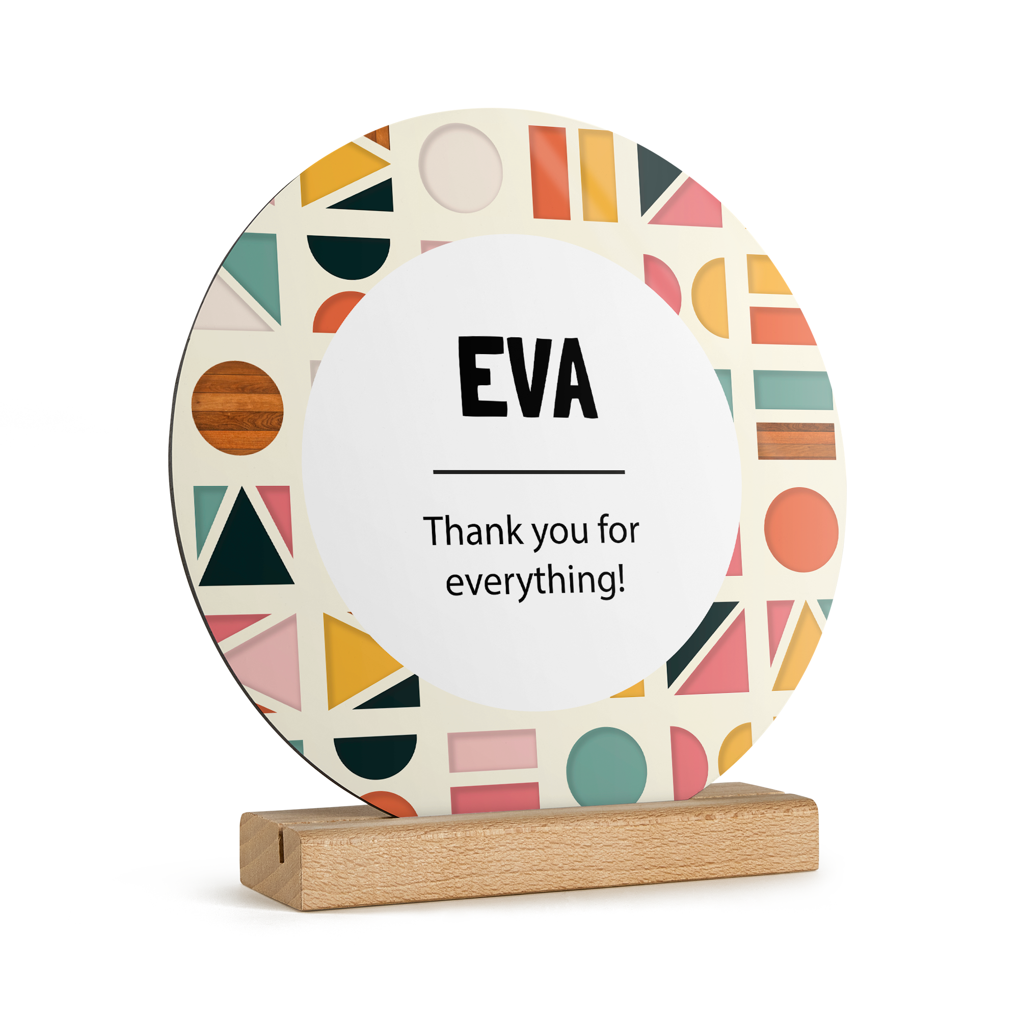 Mais informações sobre o painel de madeira:Formato: quadradoMaterial: Madeira compensada de alta qualidadeAcabamento: Revestimento brilhanteDimensões do painel: 23 x 20 x 20 x 0,3 cmDimensões do suporte: 15 x 5 x 2 x 2 cmPersonalização: com foto, texto e/ou logoImpressão: em cores claras e nítidas