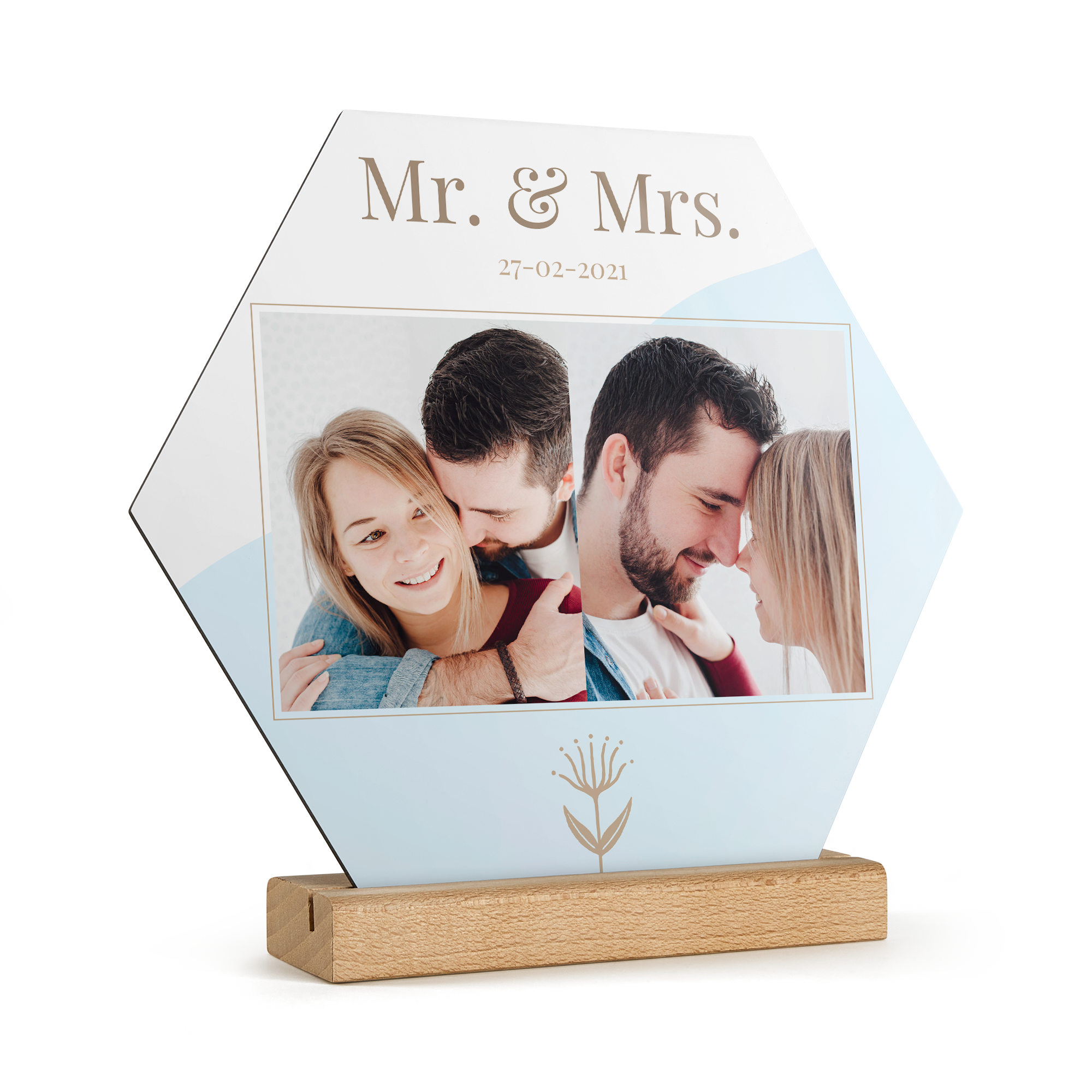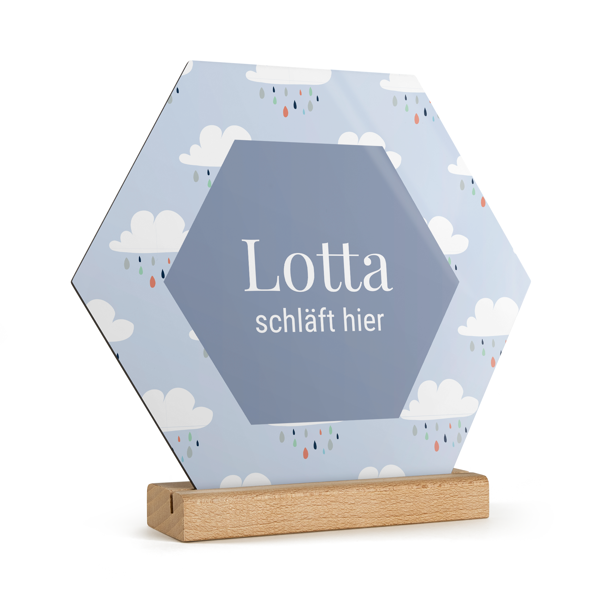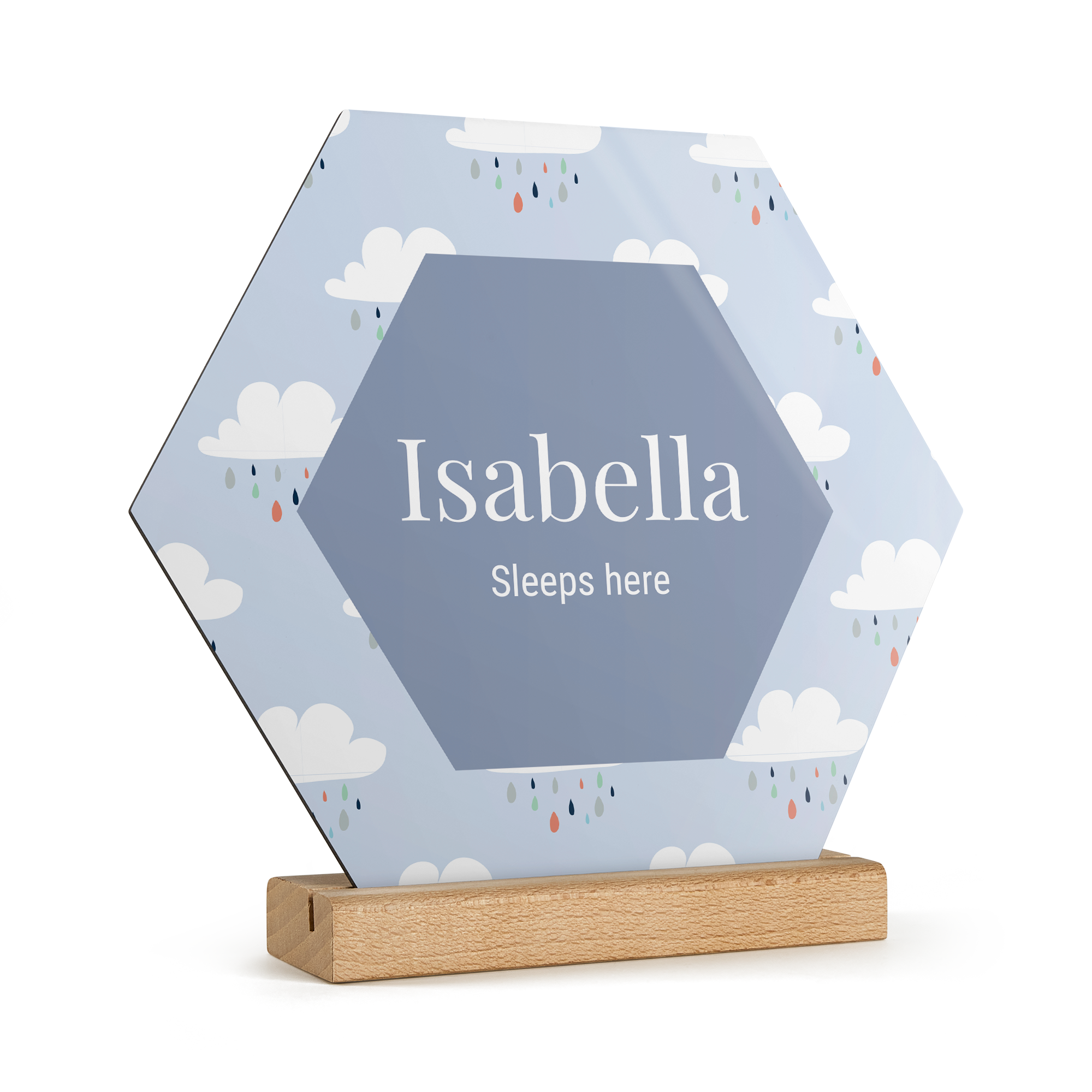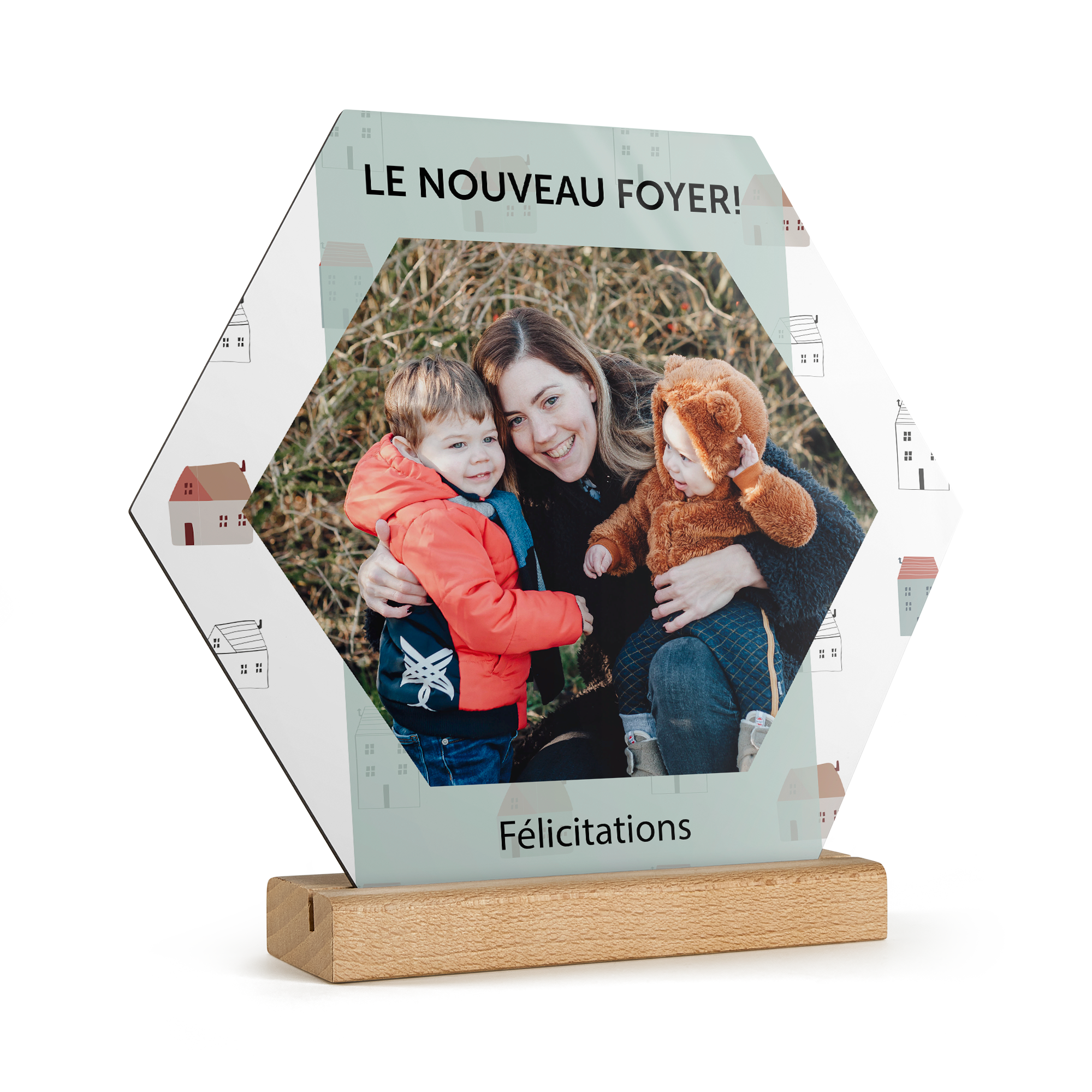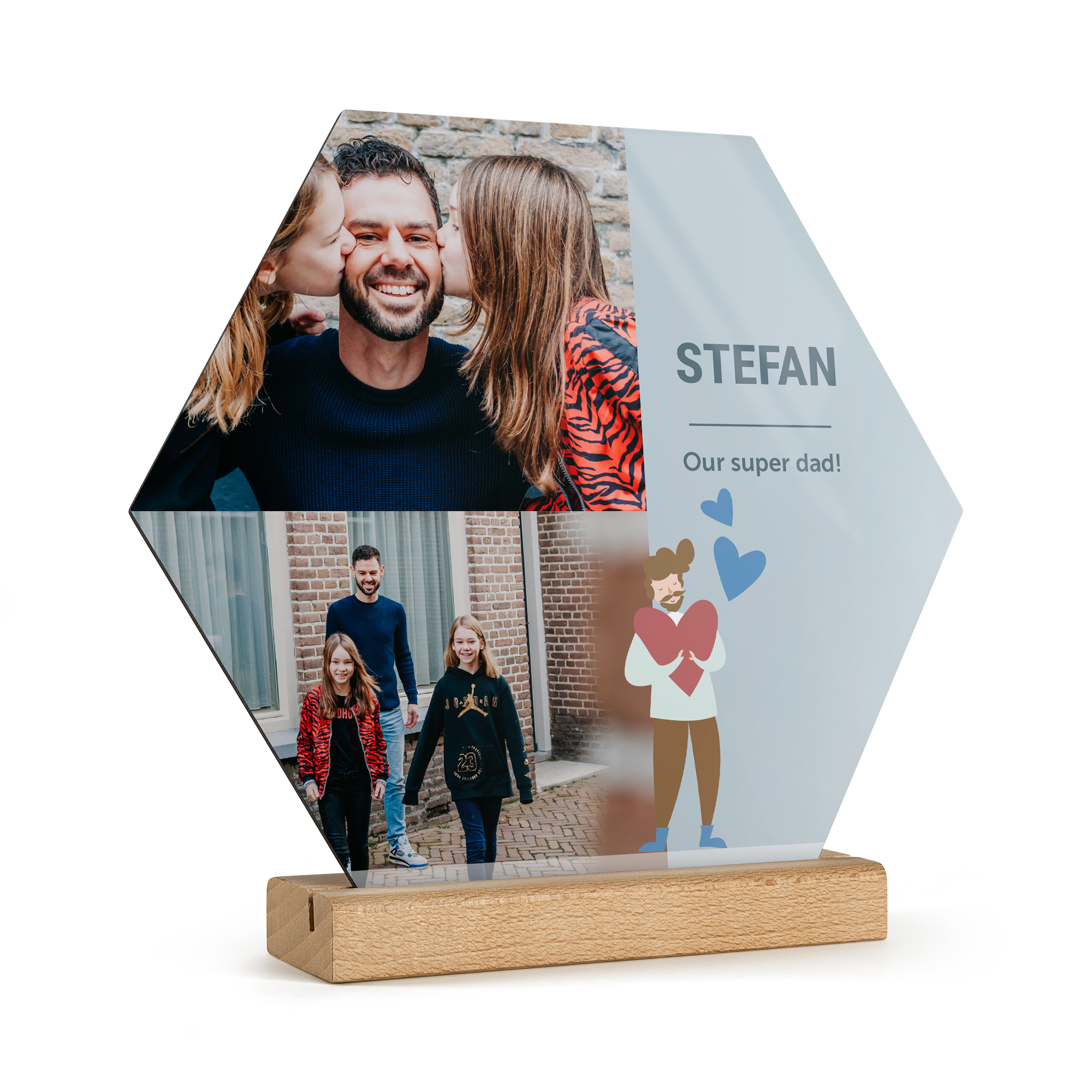 Mais informações sobre o painel de madeira:Forma: hexágonoMaterial: Madeira compensada de alta qualidadeAcabamento: Revestimento brilhanteDimensões do painel: 23 x 20 x 20 x 0,3 cmDimensões do suporte: 15 x 5 x 2 x 2 cmPersonalização: com foto, texto e/ou logoImpressão: em cores claras e nítidas