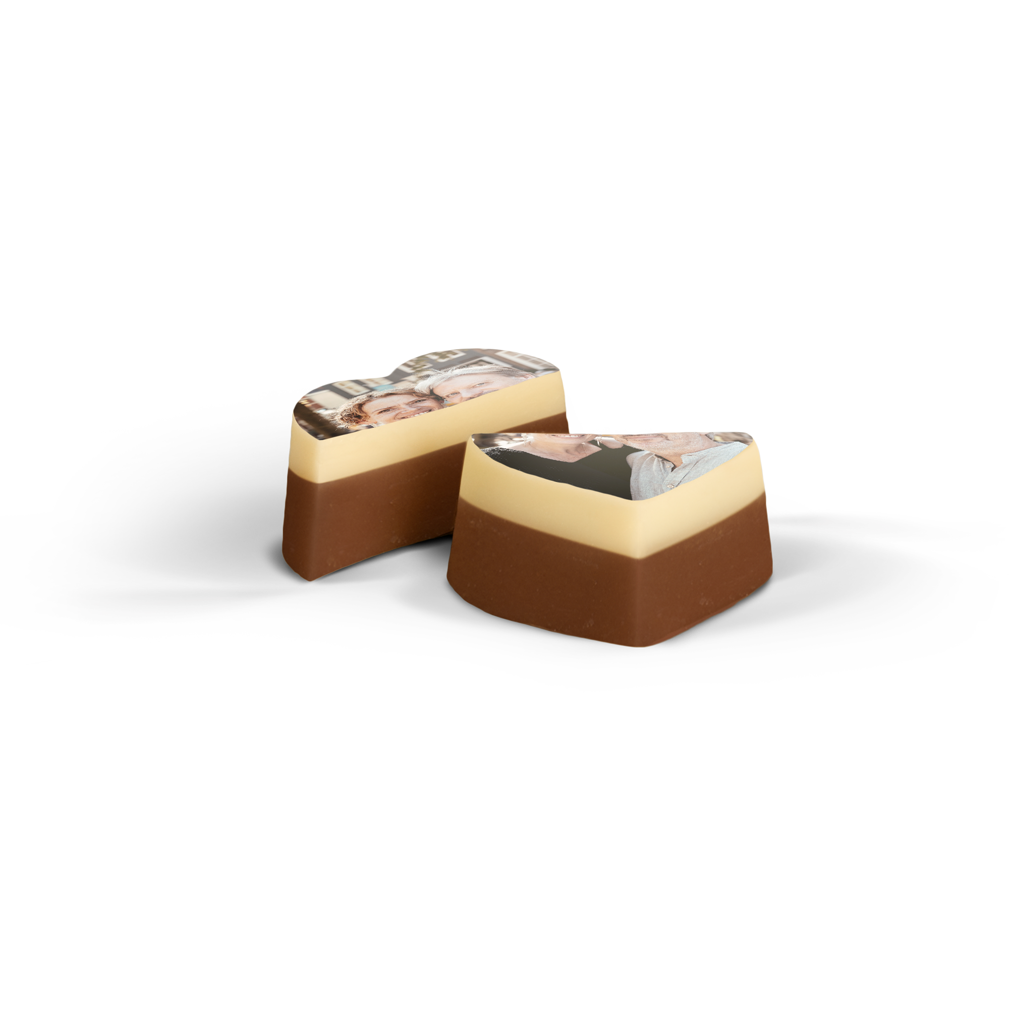 - Chocolate: chocolate ao leite com uma camada de chocolate branco por cima