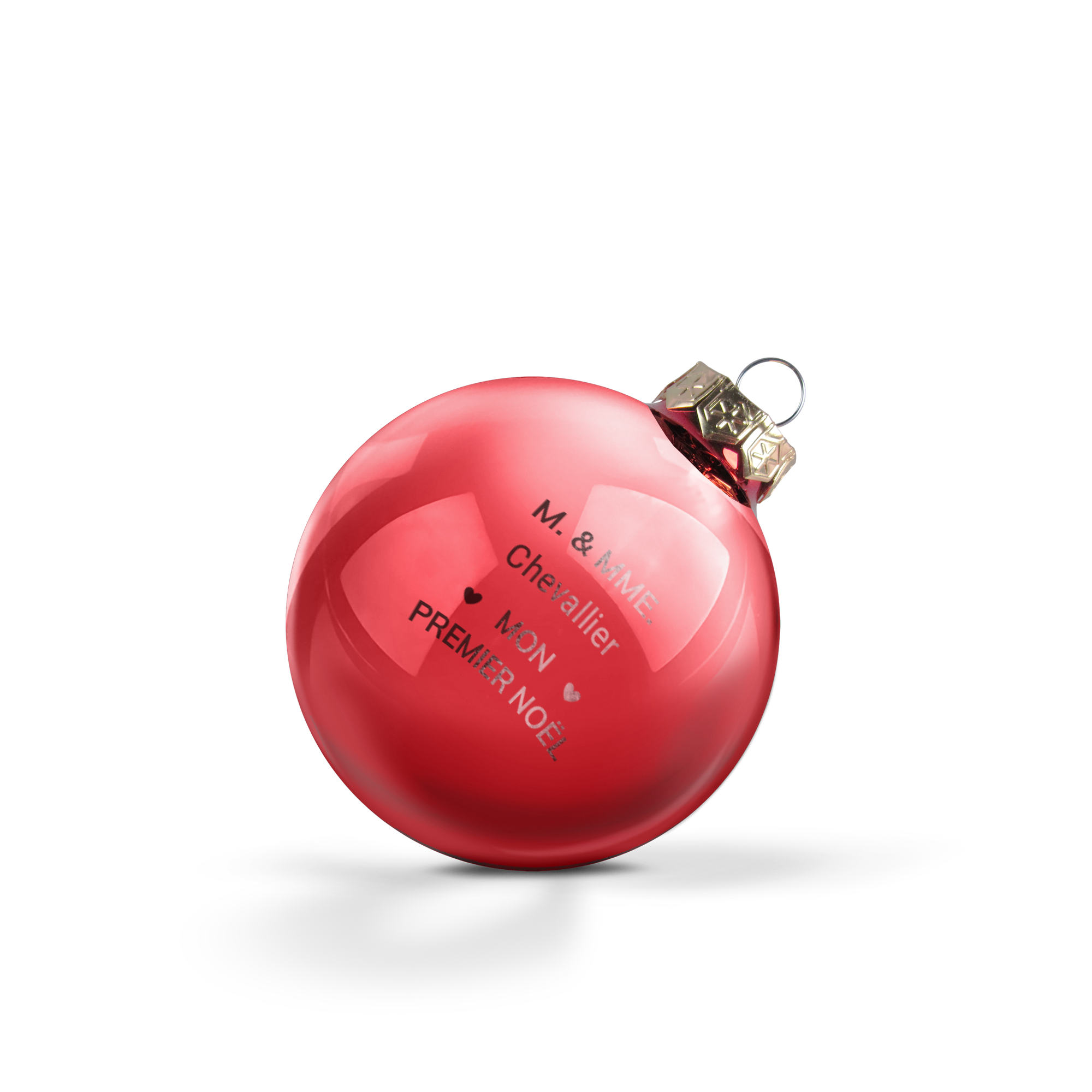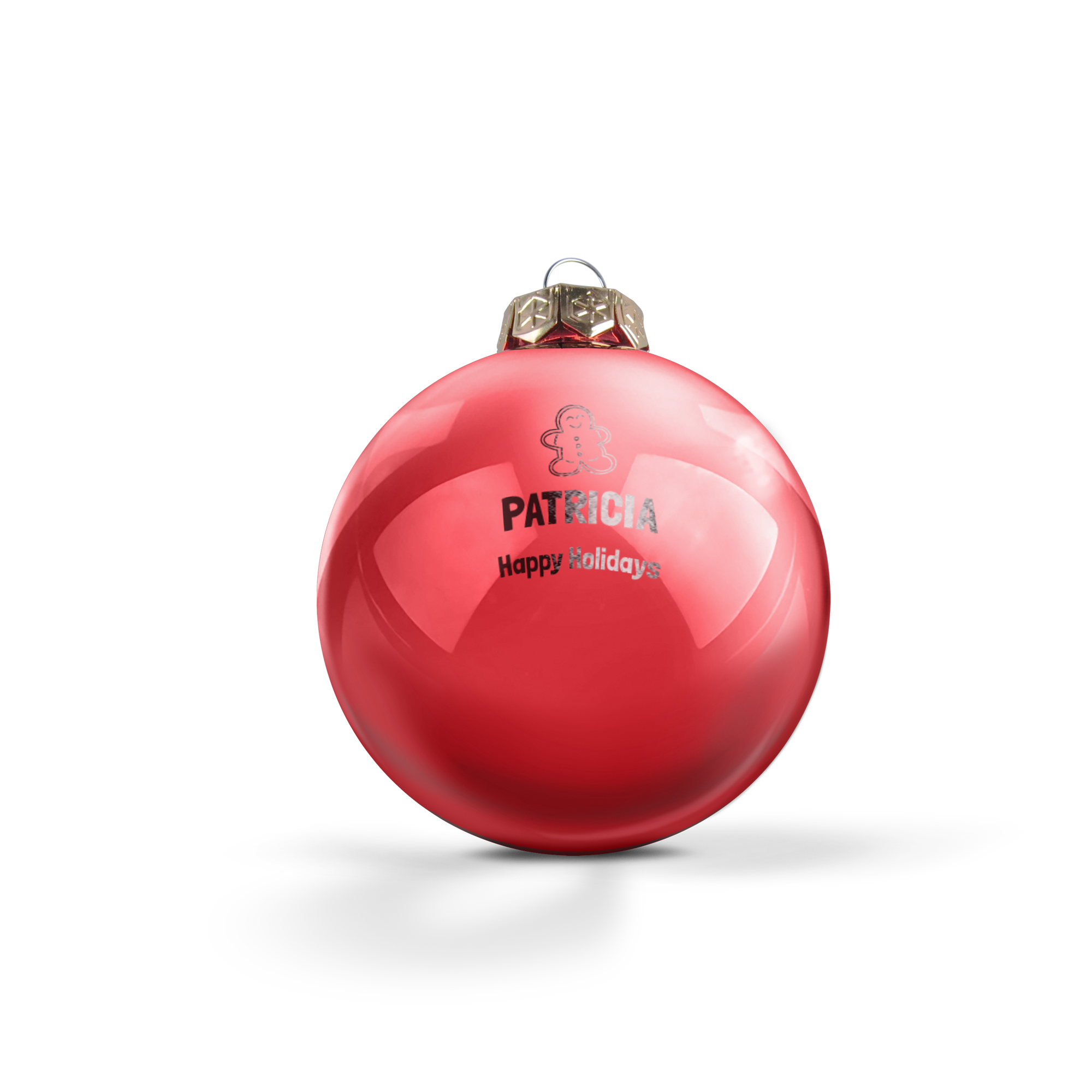 Mais informações sobre as bolas de Natal de vidro: Quantidade: conjunto de 2 Tamanho: Ø 8 cm Material: vidro brilhante de alta qualidade (não transparente) Cores: dourado, prateado e vermelho Personalização: Com um nome e/ou texto Gravação: técnica de laser de alta precisão Localização: um lado central da bola Coroa: dourada com cordão