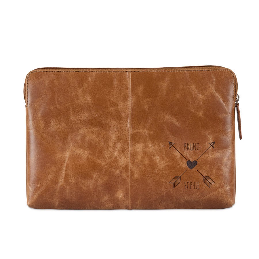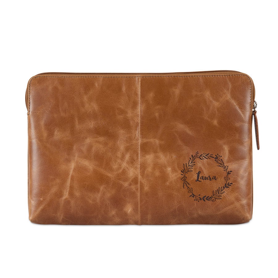 Proteja seu laptop com uma capa de couro de luxo. Única e personalizada com seu nome ou texto em uma gravação sofisticada. O couro da mais alta qualidade!