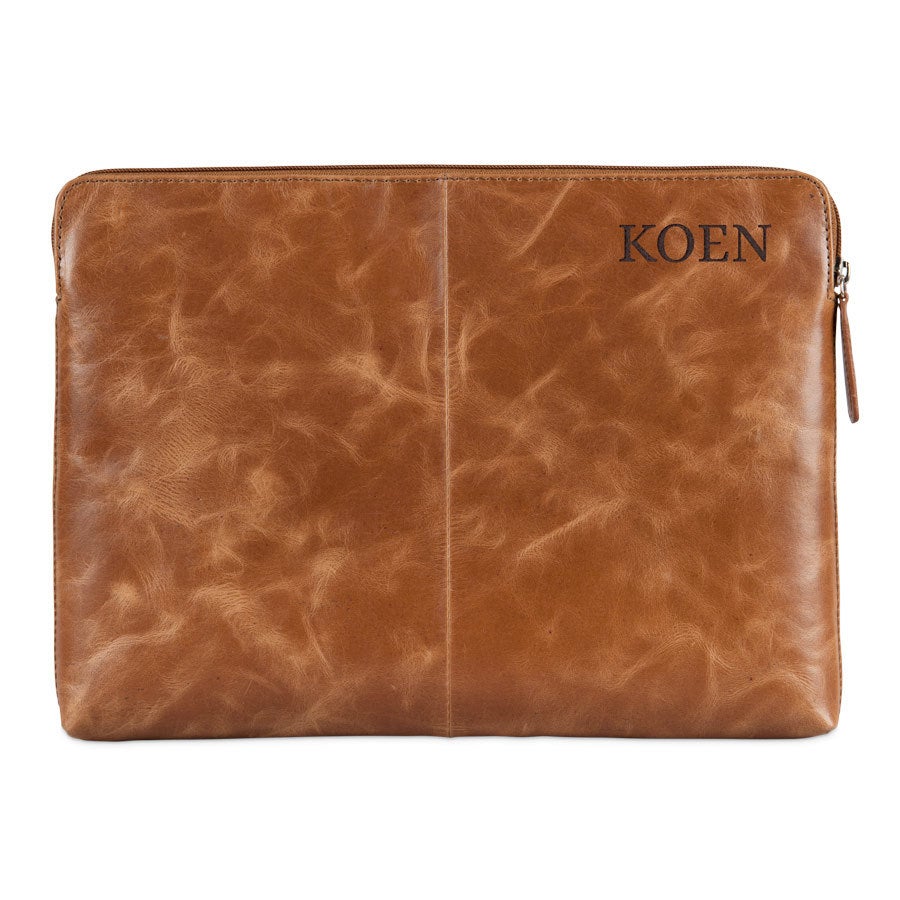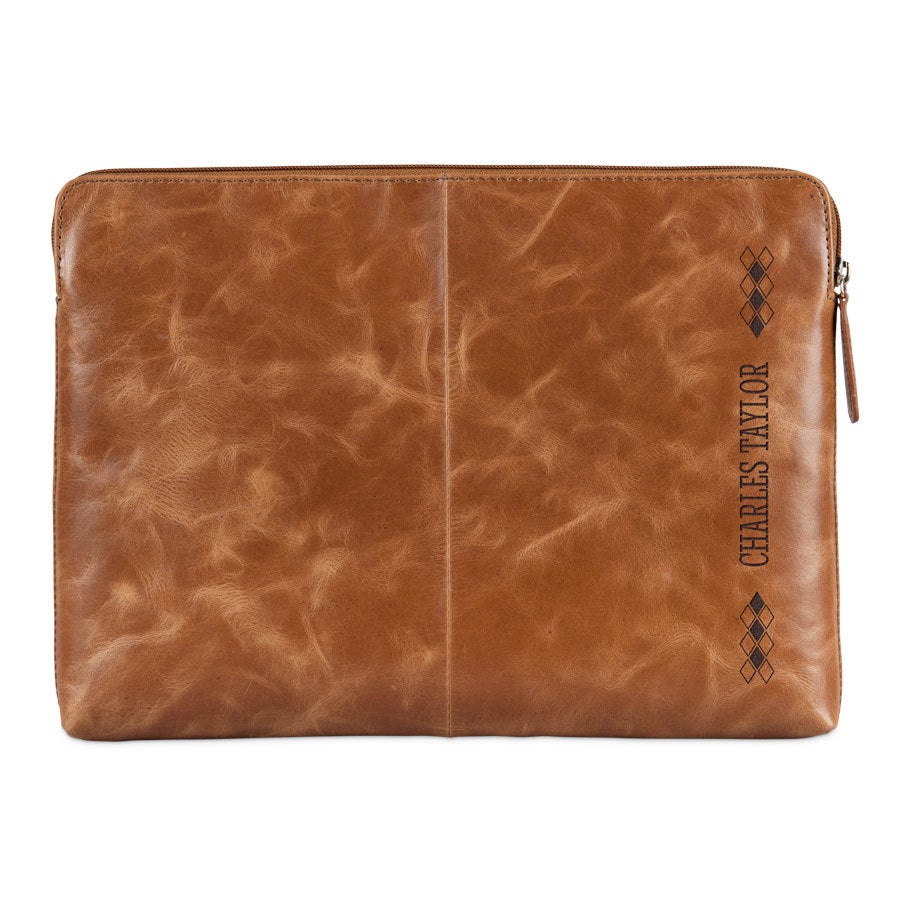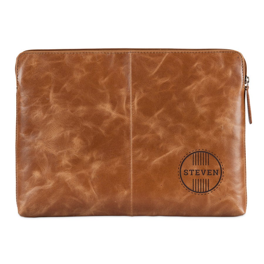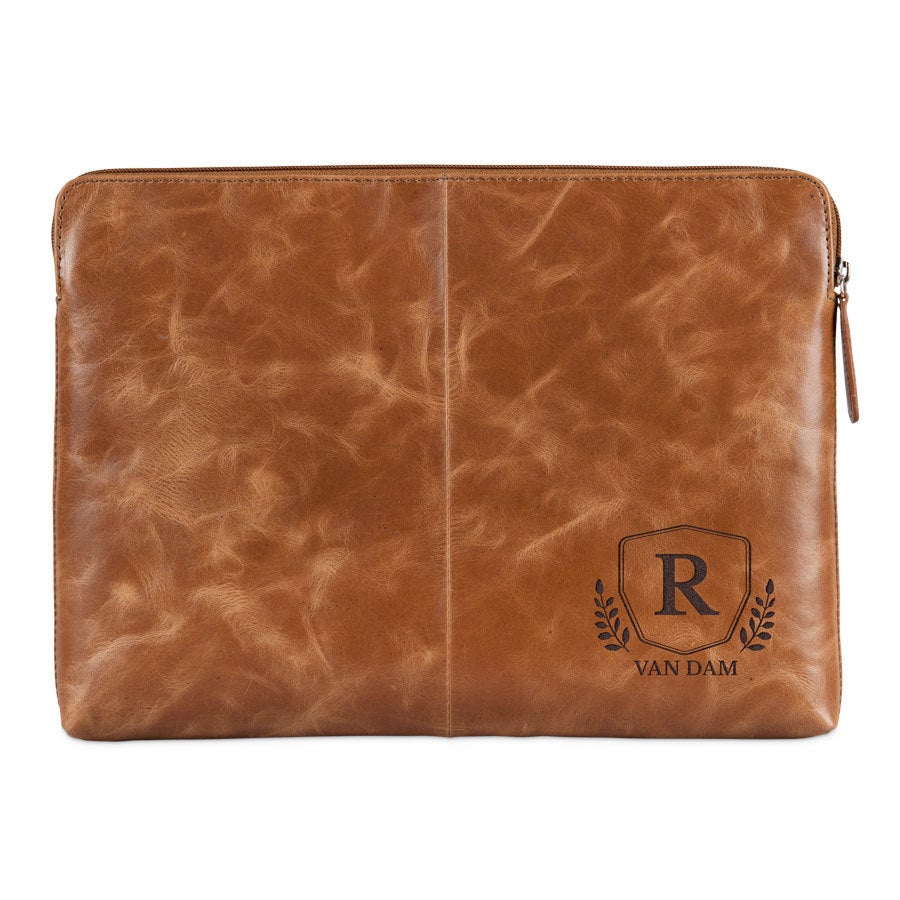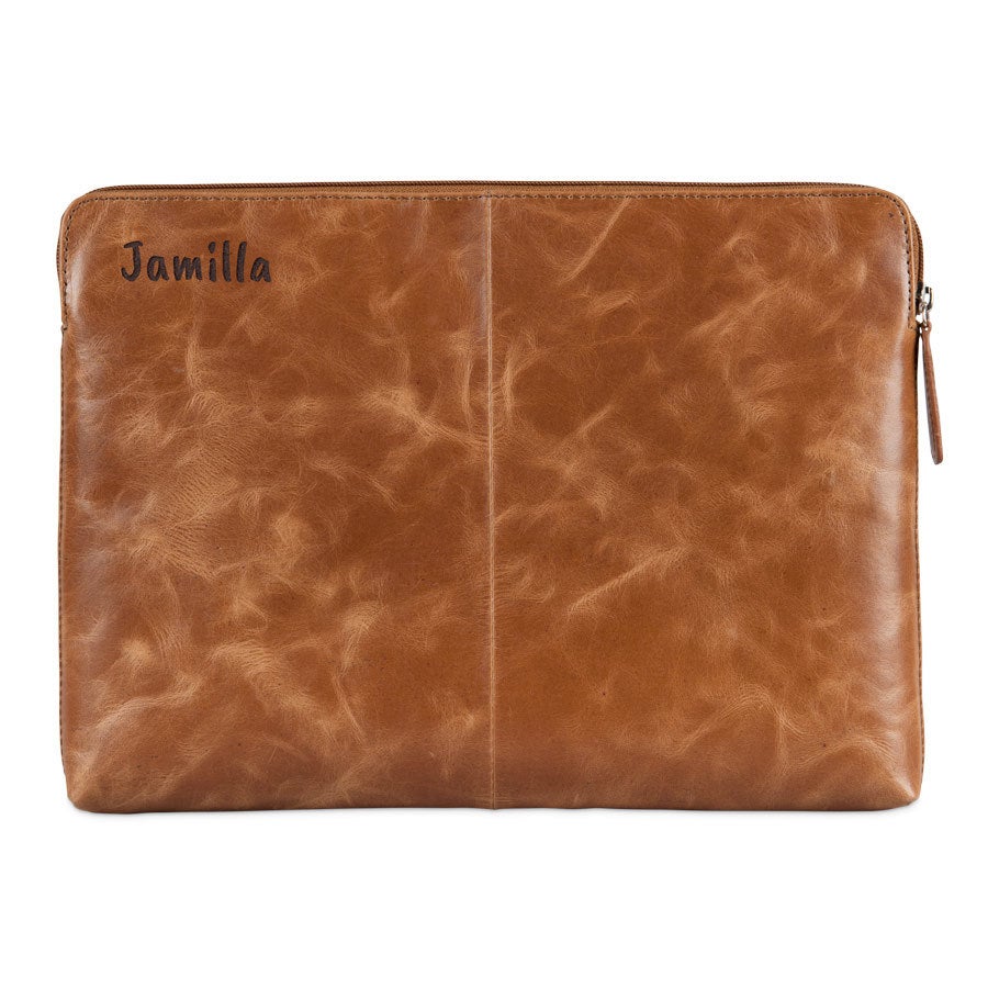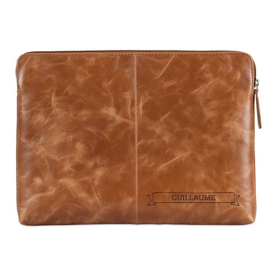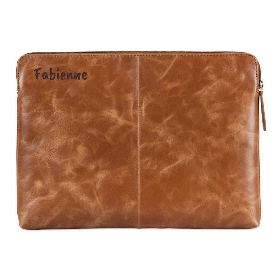 Proteja seu laptop com uma capa de couro de luxo. Única e personalizada com seu nome ou texto em uma gravação sofisticada. O couro da mais alta qualidade!