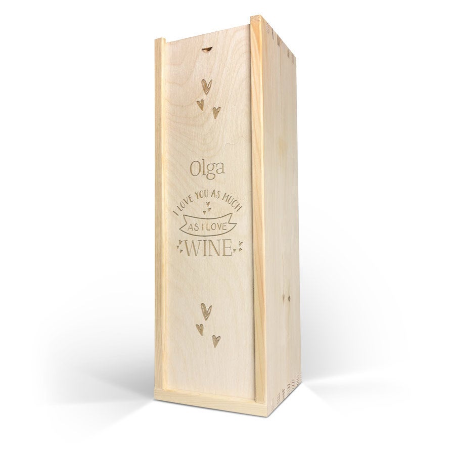 Delicioso vinho Maison de la Surprise em uma elegante caixa de madeira, com o nome e/ou texto de sua escolha. Crie a sua agora!