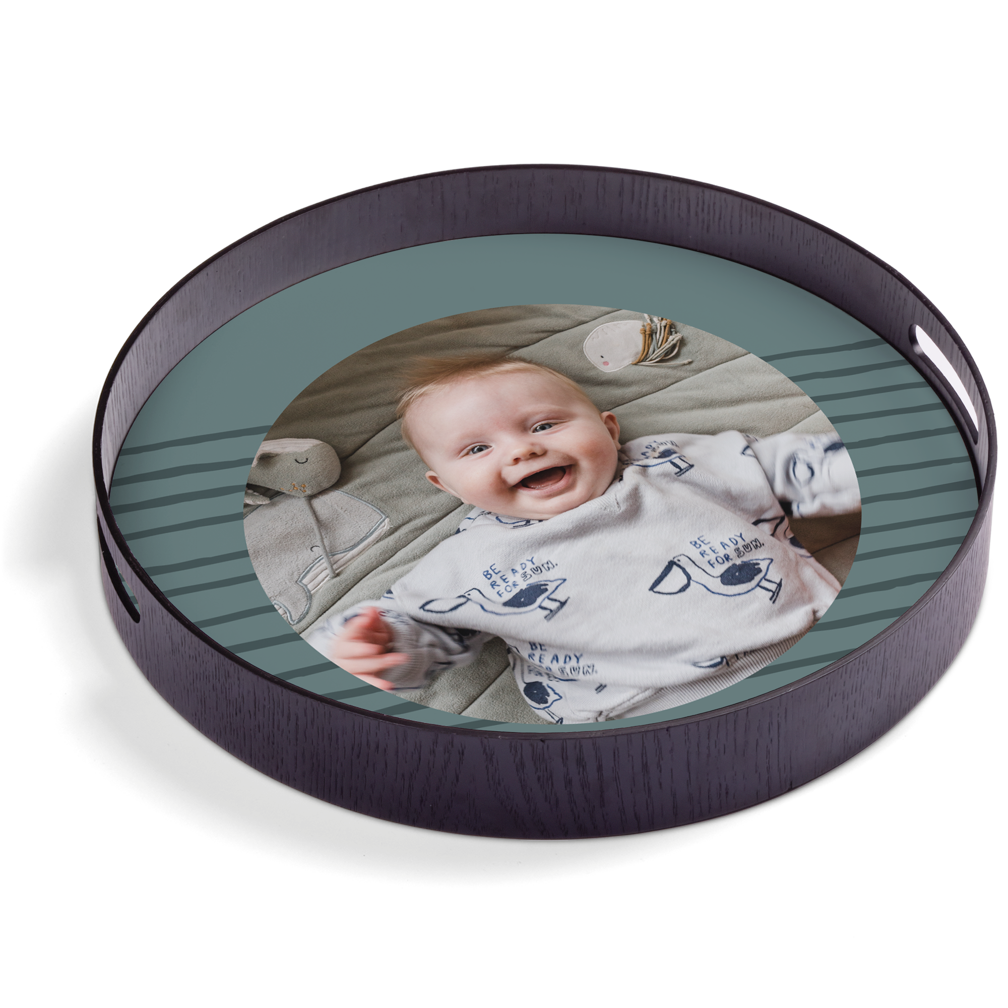 Mais informações sobre a bandeja de servir personalizada:Forma: redondaCor: pretaMaterial: moldura de madeira deluxe (madeira de pinho) com base de hardboard de alta qualidadeAcabamento: brilhanteDimensões: 40 x 40 x 6 cmPersonalização: com foto, nome, logotipo ou colagemImpressão: perfeita e em cores vibrantes