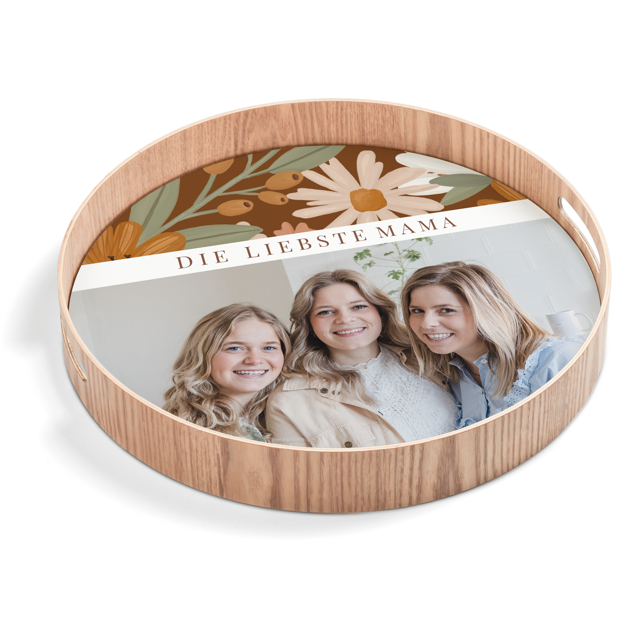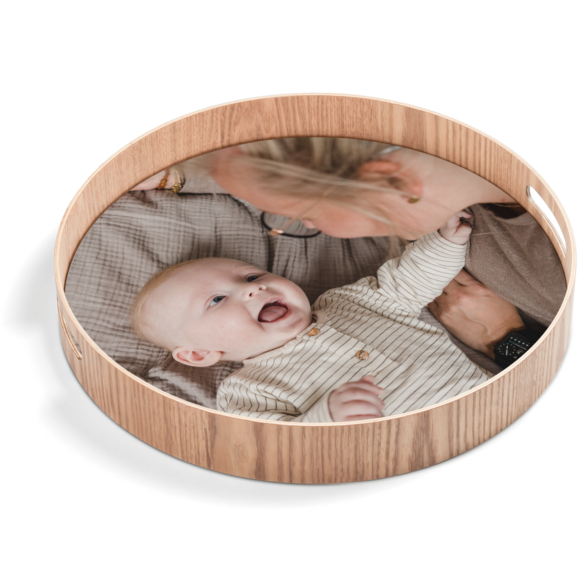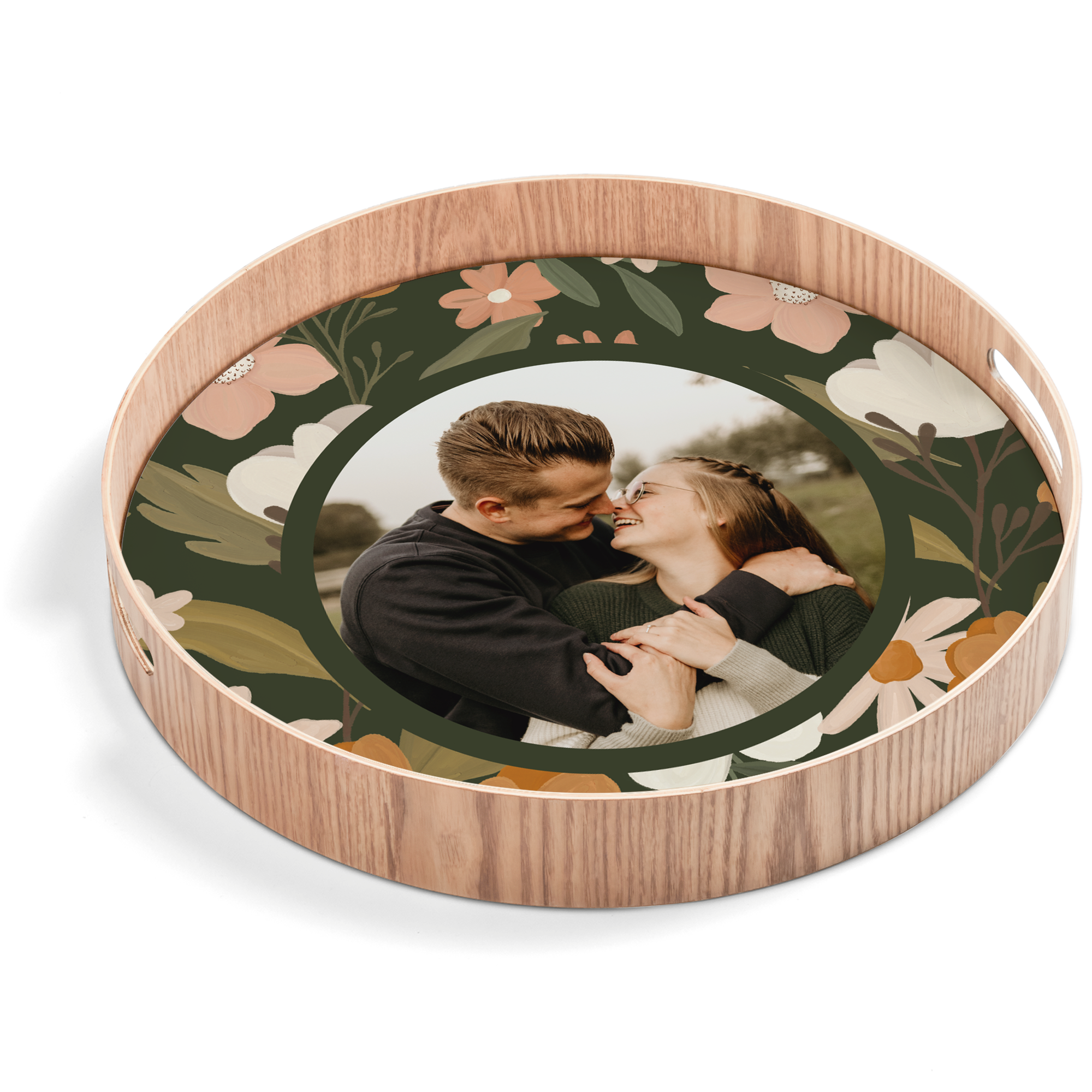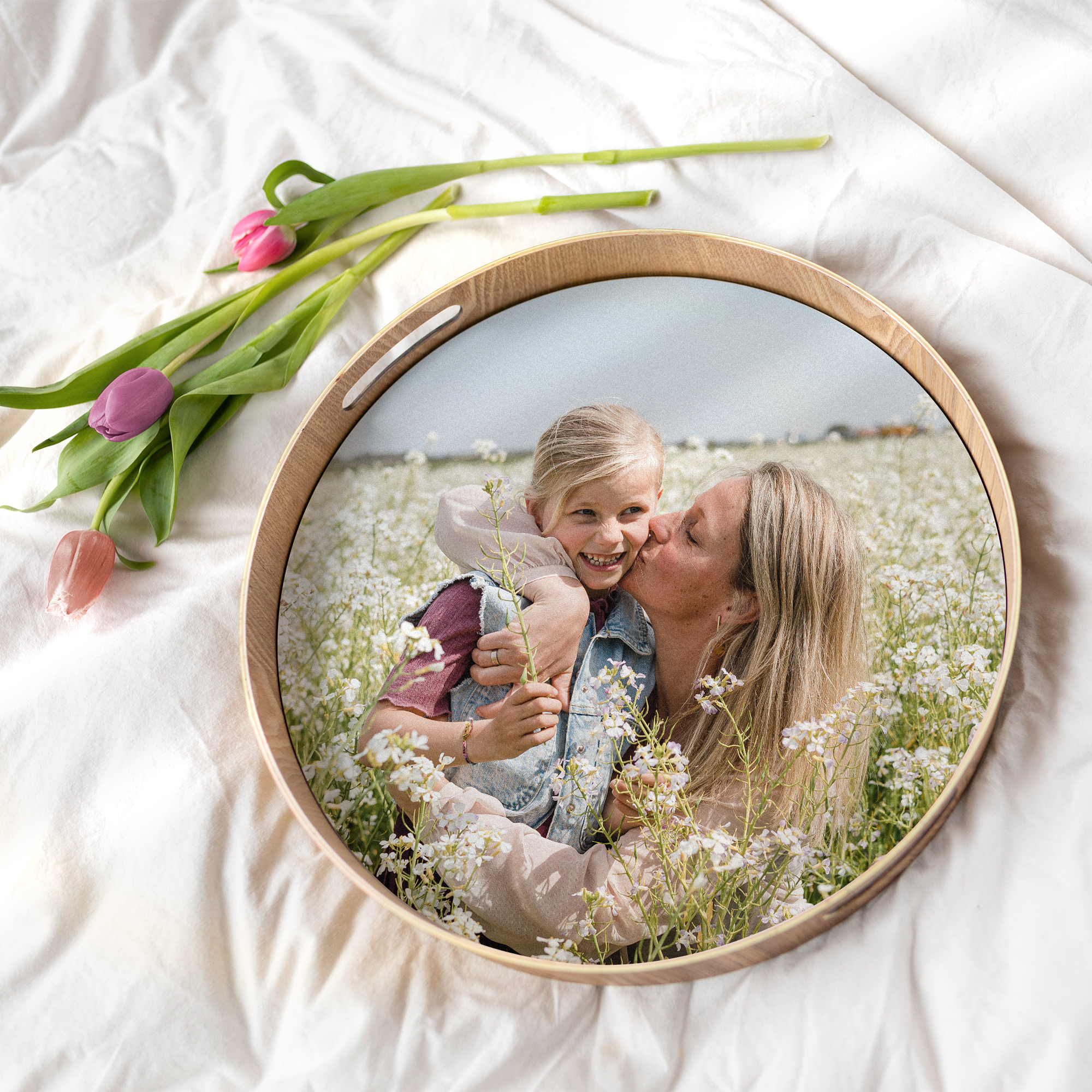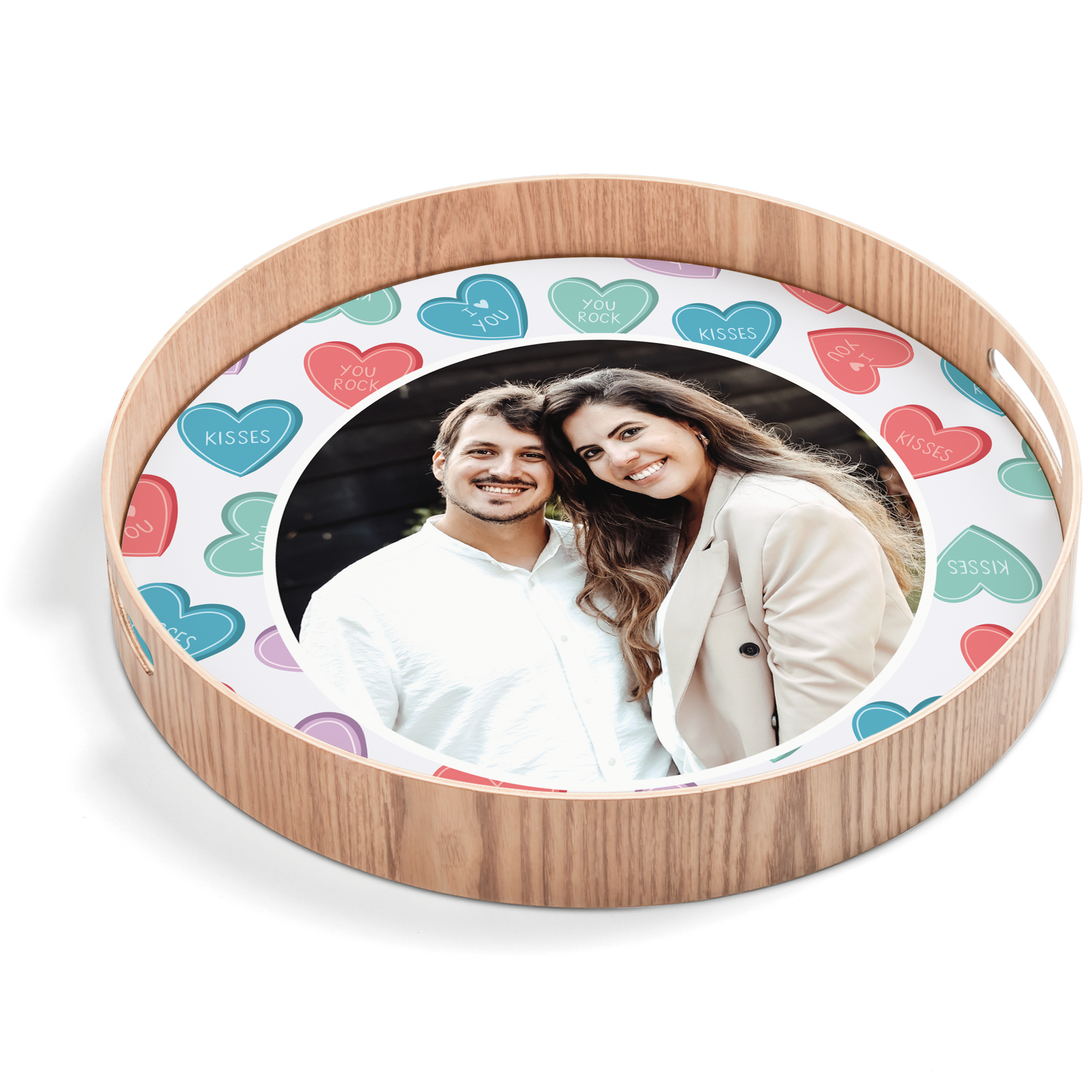 Mais informações sobre a bandeja de servir personalizada:Forma: redondaCor: madeiraMaterial: moldura de madeira deluxe (madeira de pinho) com base de hardboard de alta qualidadeAcabamento: brilhanteDimensões: 40 x 40 x 6 cmPersonalização: com foto, nome, logotipo ou colagemImpressão: perfeita e em cores vibrantes