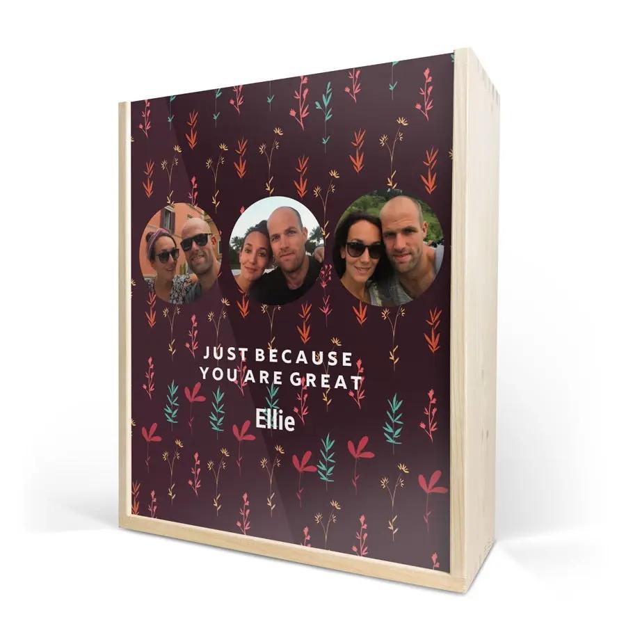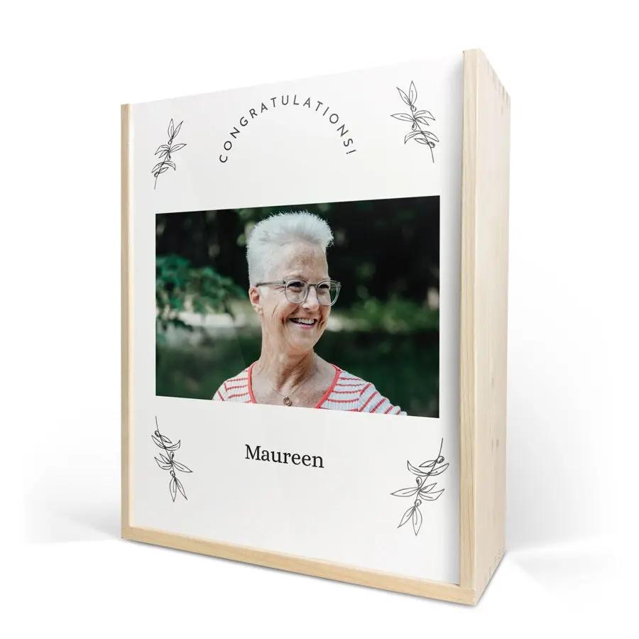 Mais informações sobre os copos de champanhe: Número: 2 peças Marca: Royal Leerdam Tipo: L'esprit Altura: 21,5 cm Volume: 21 cl Mais informações sobre a luxuosa caixa de madeira: Personalização: com foto, colagem, logotipo, nome e/ou texto Localização da personalização: na tampa da caixa de madeira Impressão: imagem perfeita em cores vivas Dimensões da caixa: 36,5 x 12 x 11 cm Dimensões da tampa: 35,6 x 10,5 x 0,3 cm Extra: a caixa de madeira é certificada pelo FSC. Mais informações sobre o champanhe: Nome: Moët & Chandon Tipo de vinho: espumante Volume: 750 ml País de origem: França Variedade de uva: Pinot Noir, Chardonnay, Pinot Meunier