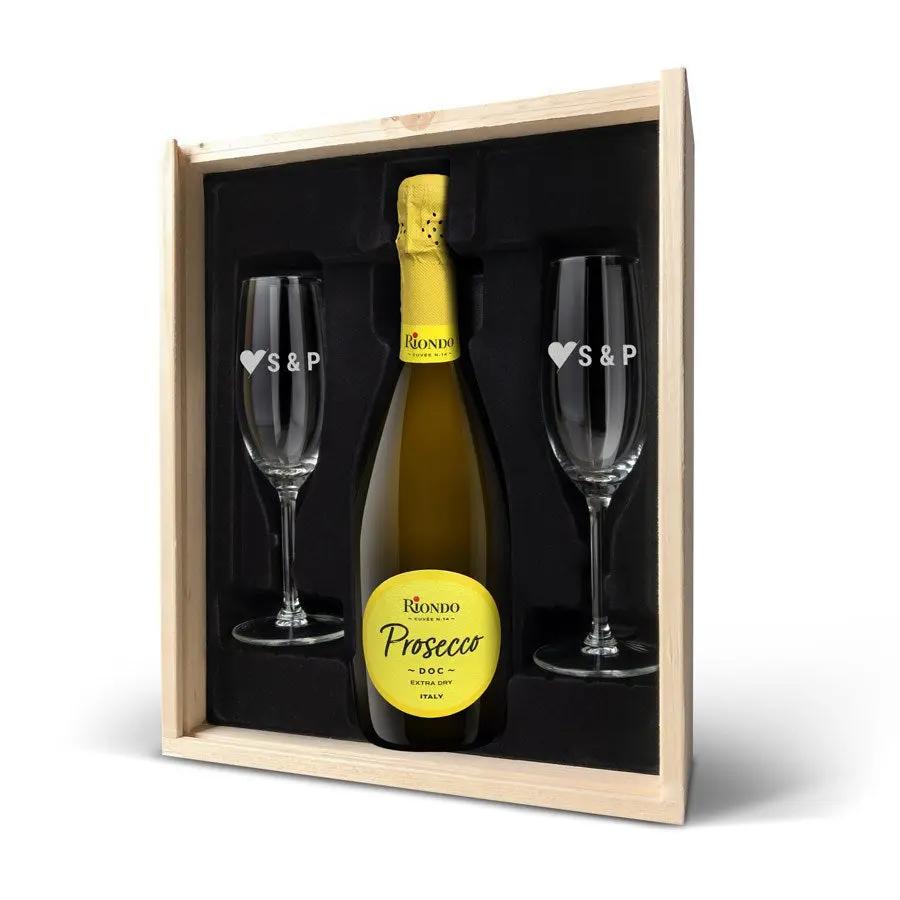 Conjunto de presente de champanhe com taças gravadas - Riondo Prosecco Spumante