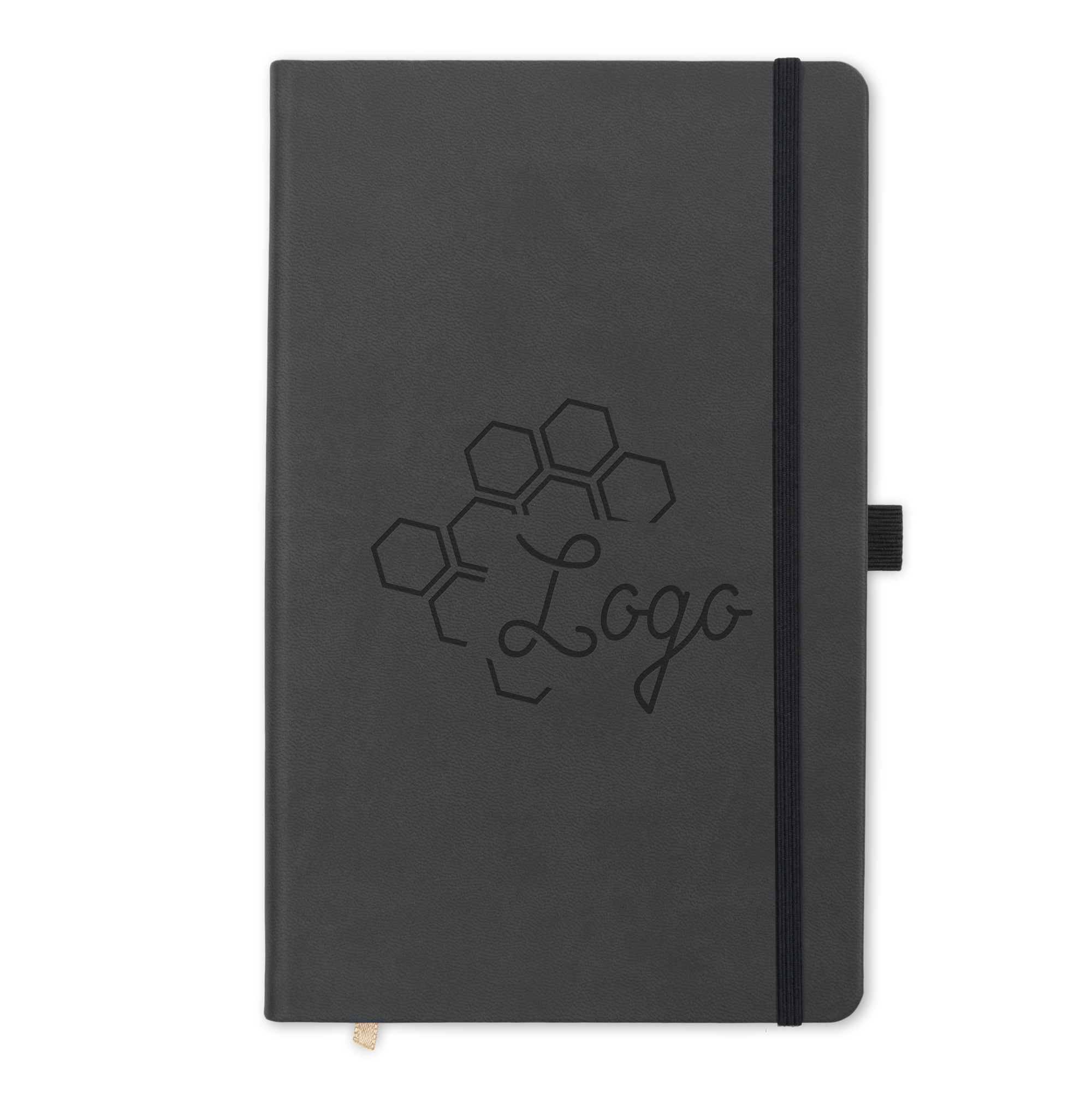 Extras: com marcador de fita, fechamento elástico, suporte para caneta e um compartimento para folhas soltas! Caneta não incluída.