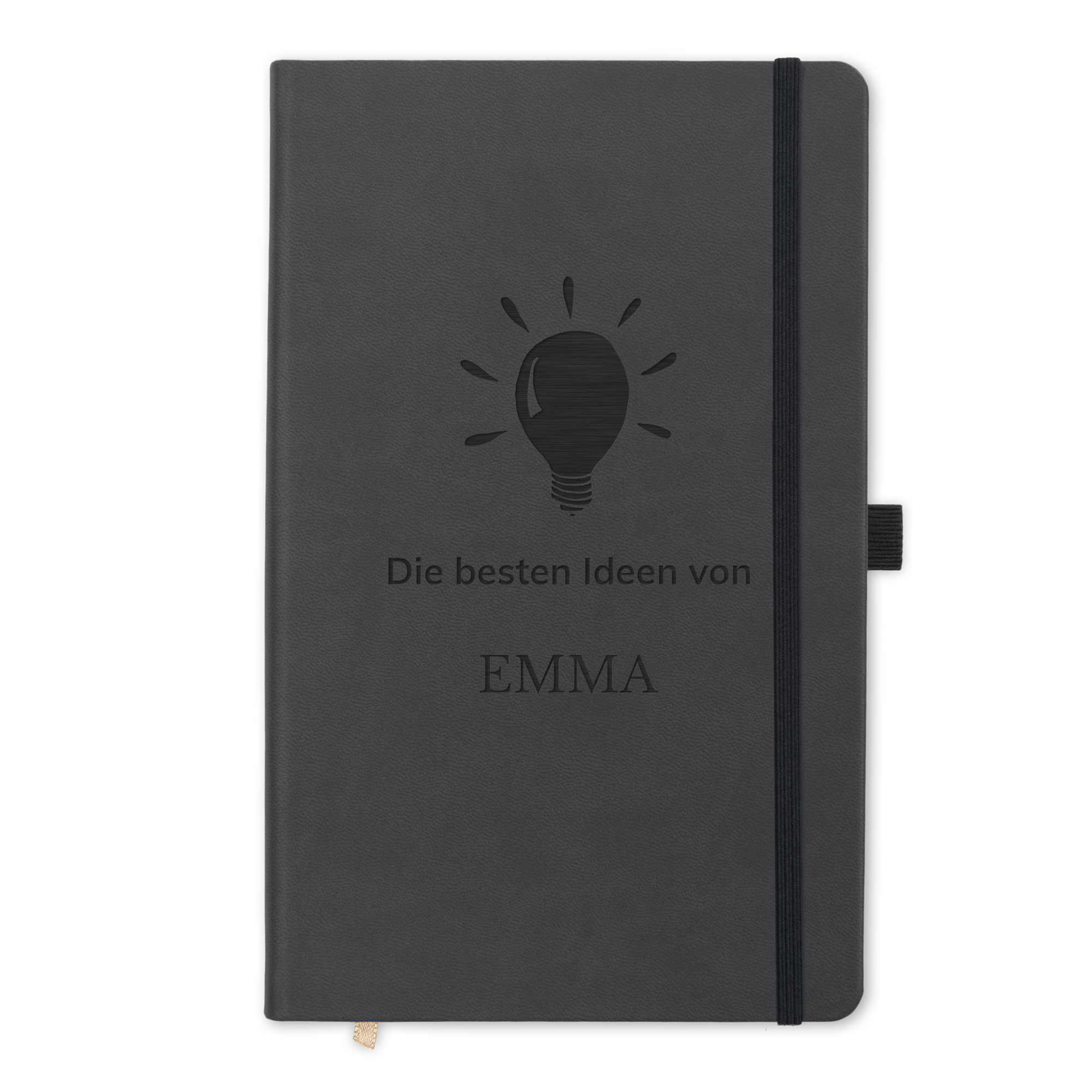 Caderno super original e pessoal gravado com o seu nome. Com muitos designs alegres. Disponível nas cores preto e azul!