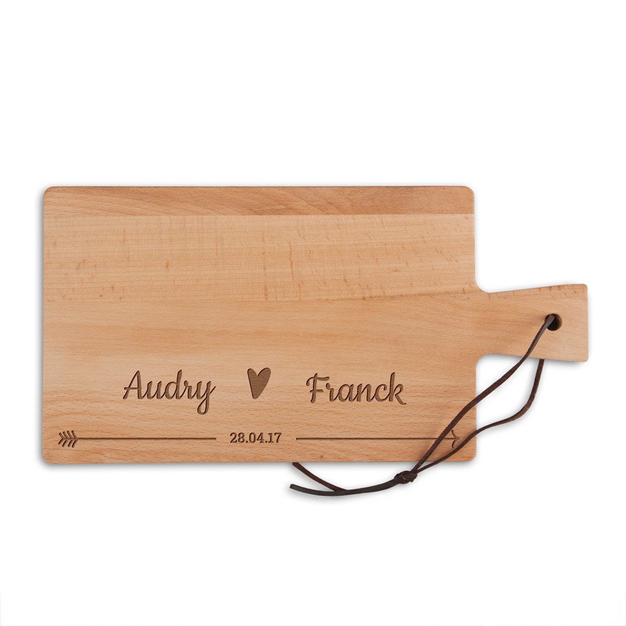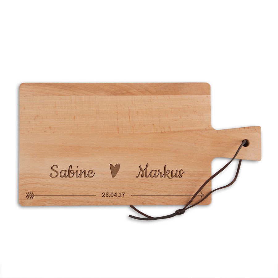 Crie uma tábua de servir única em madeira de faia. Um presente pessoal com nome, texto e designs. Em diferentes formatos!