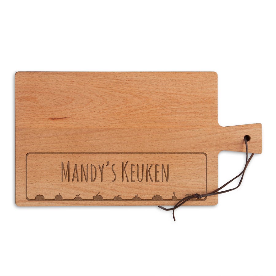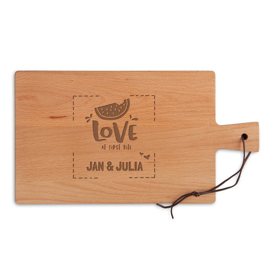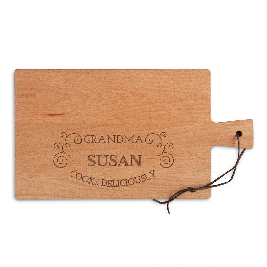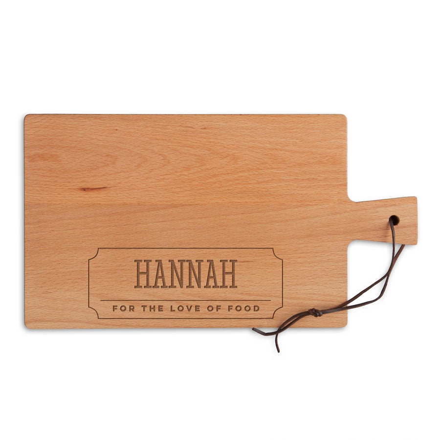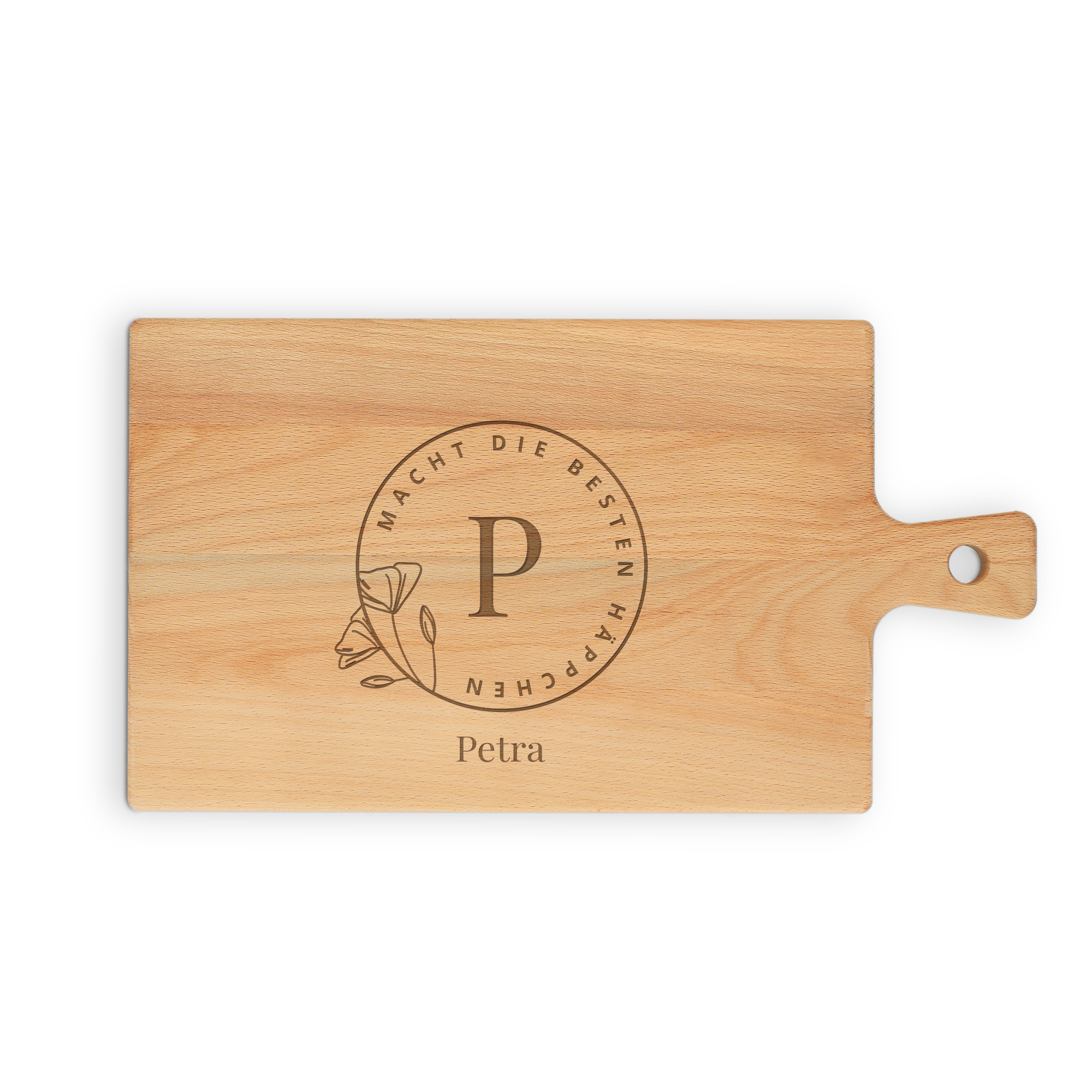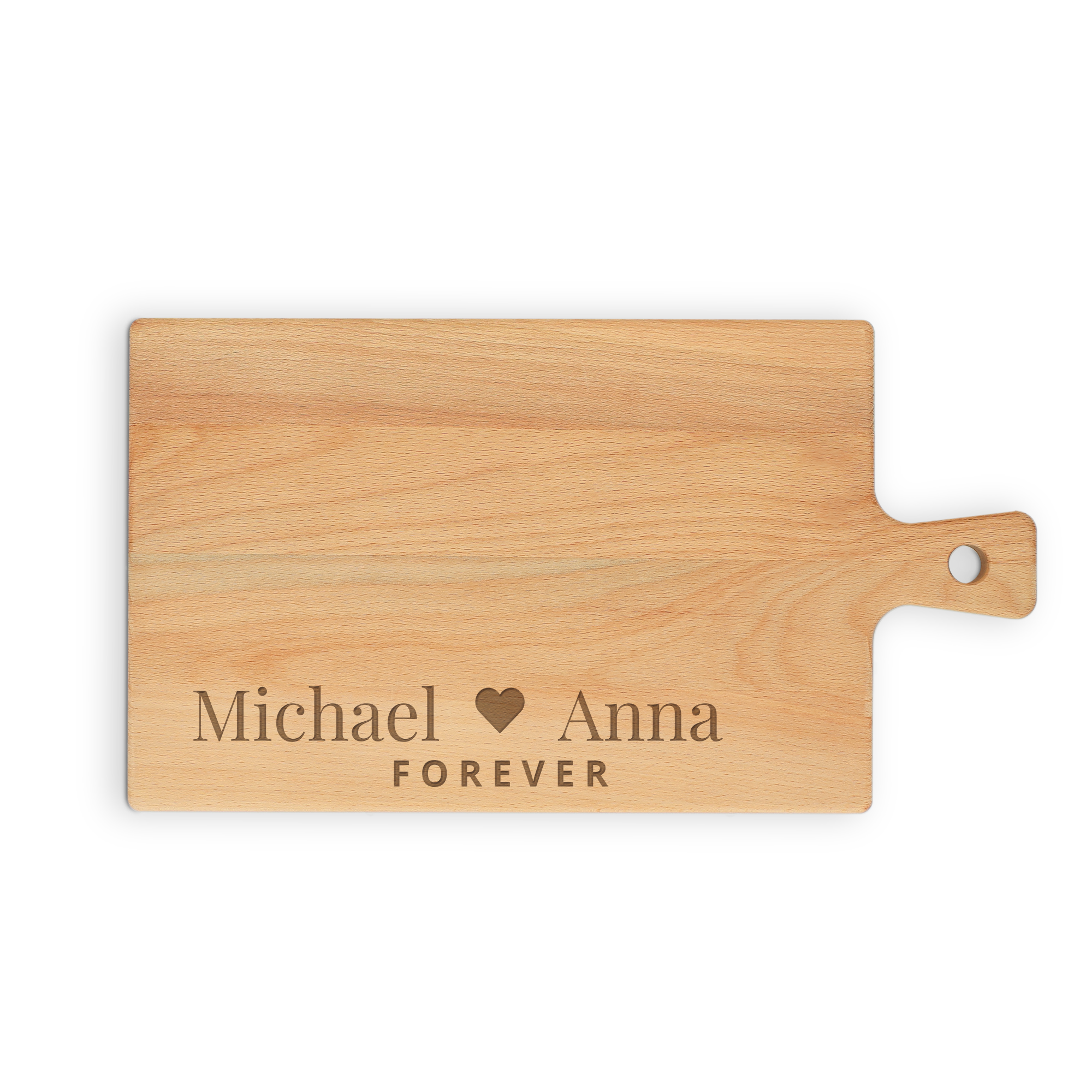 Crie uma tábua de servir única em madeira de faia. Um presente pessoal com nome, texto e designs. Em diferentes formatos!