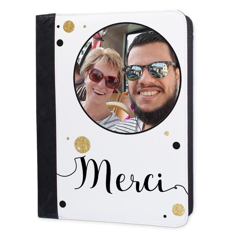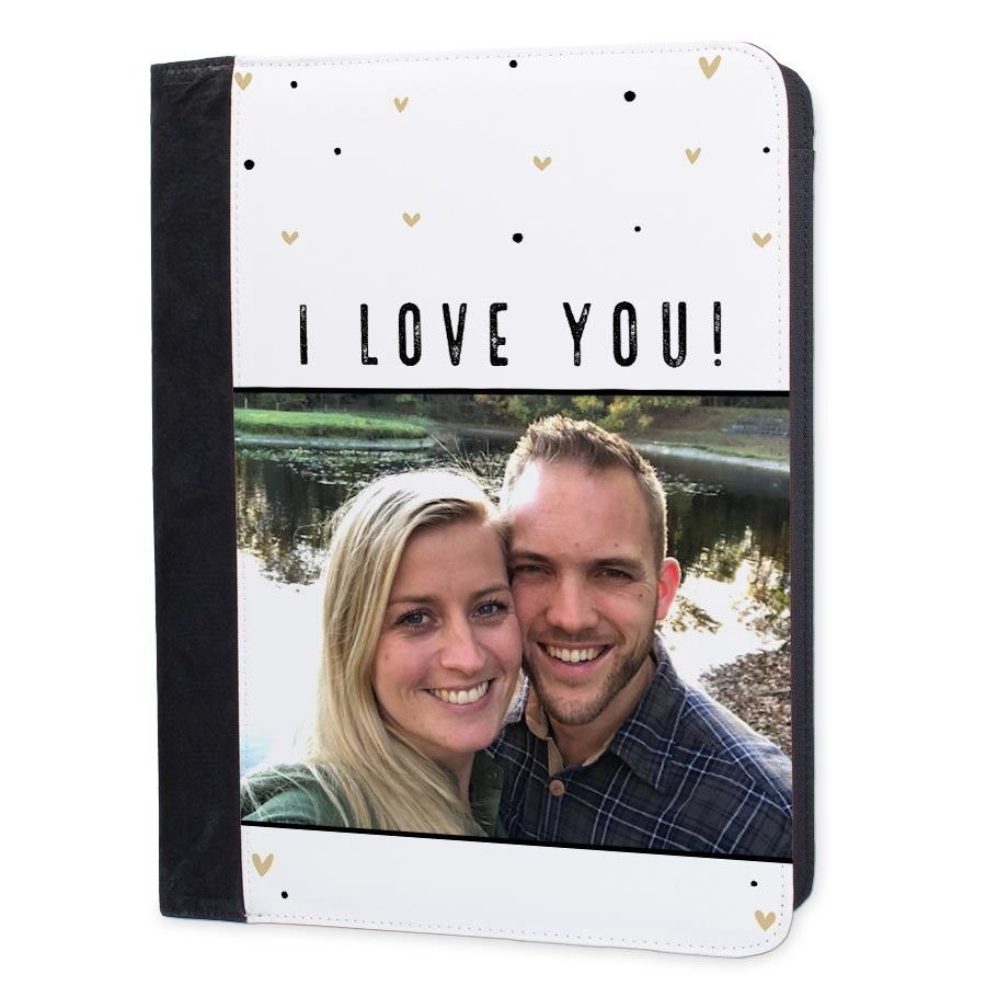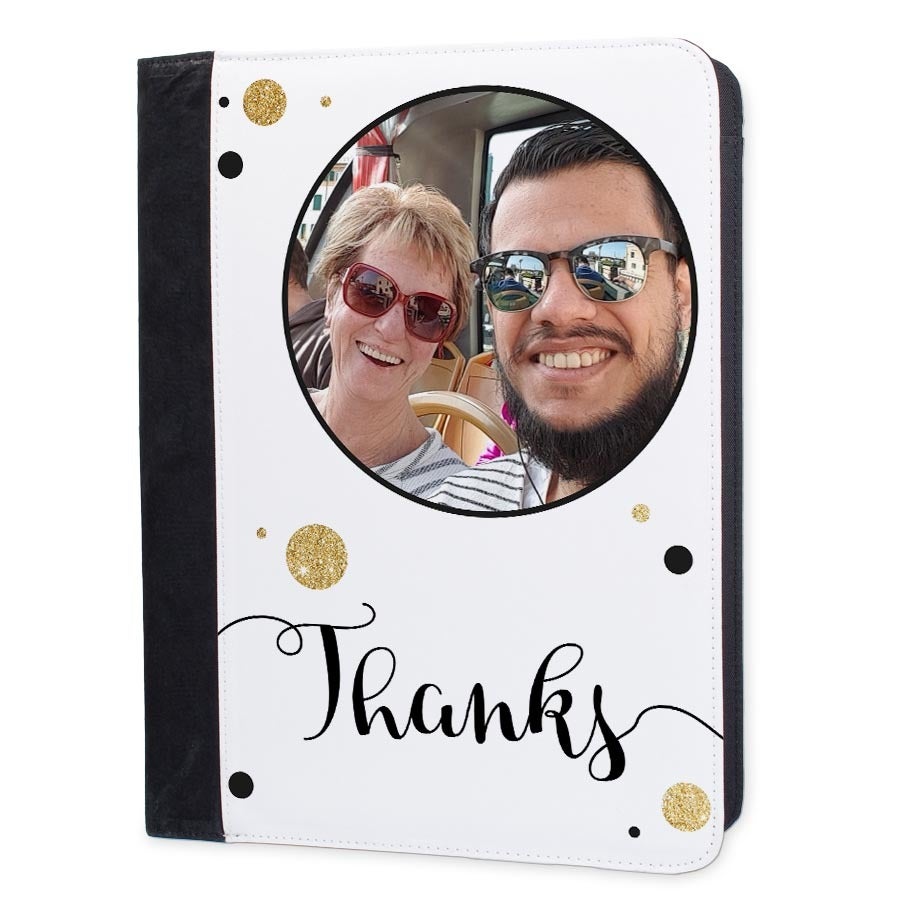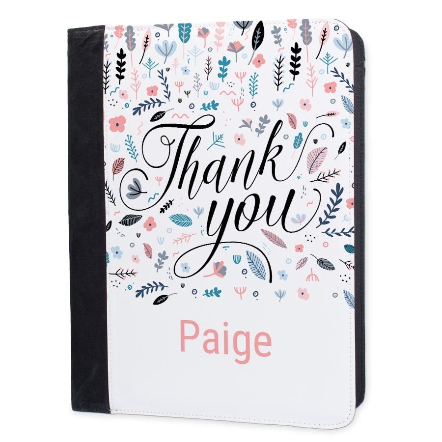 Mais informações sobre a pasta de escrita impressa:Cor: pretoMaterial: aparência de camurça maciaDimensões: 25 x 32,5 cmPersonalização: nome, foto e/ou logoImpressão: nítida e em cores vivasExtras: com laço para caneta, bolso interno e bloco de notas A4A pasta de escrita é recarregável, para que você possa usá-la por muitos anos!