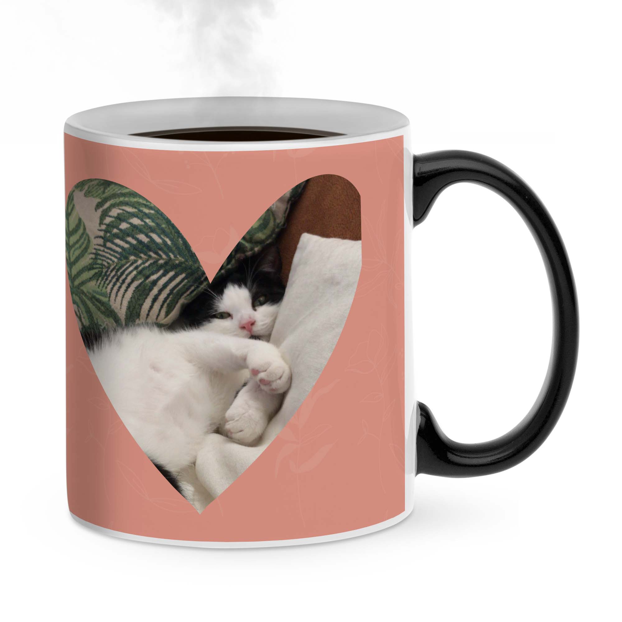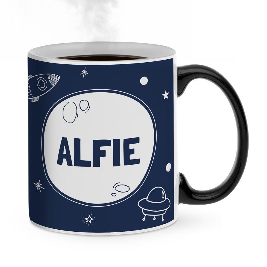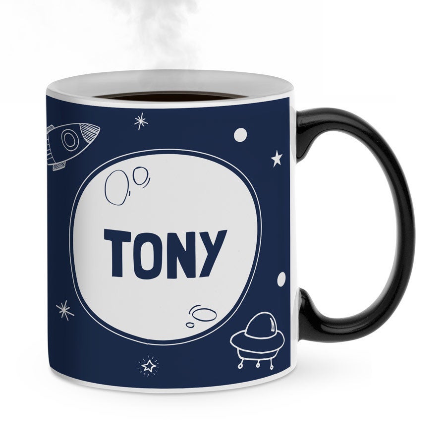 - Atenção: A caneca será completamente preta quando entregue. Seu design só ficará visível após encher a caneca com uma bebida quente. A imagem sempre será ligeiramente visível através da camada mágica e a caneca não é adequada para lava-louças nem para micro-ondas!