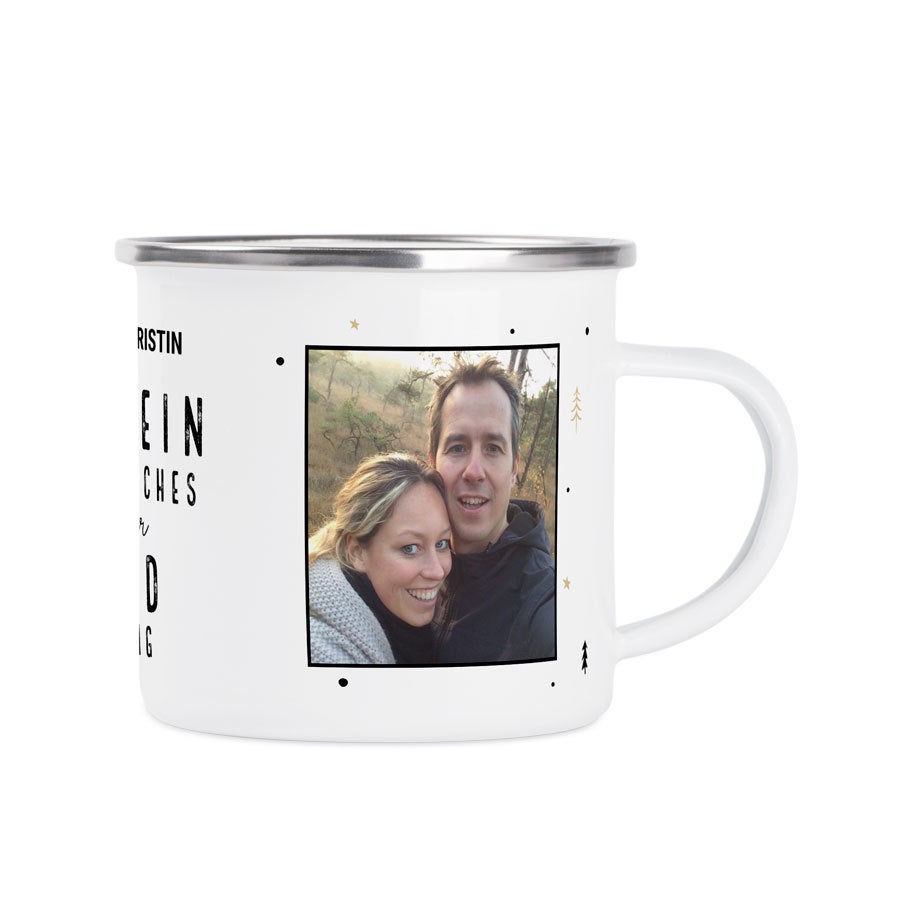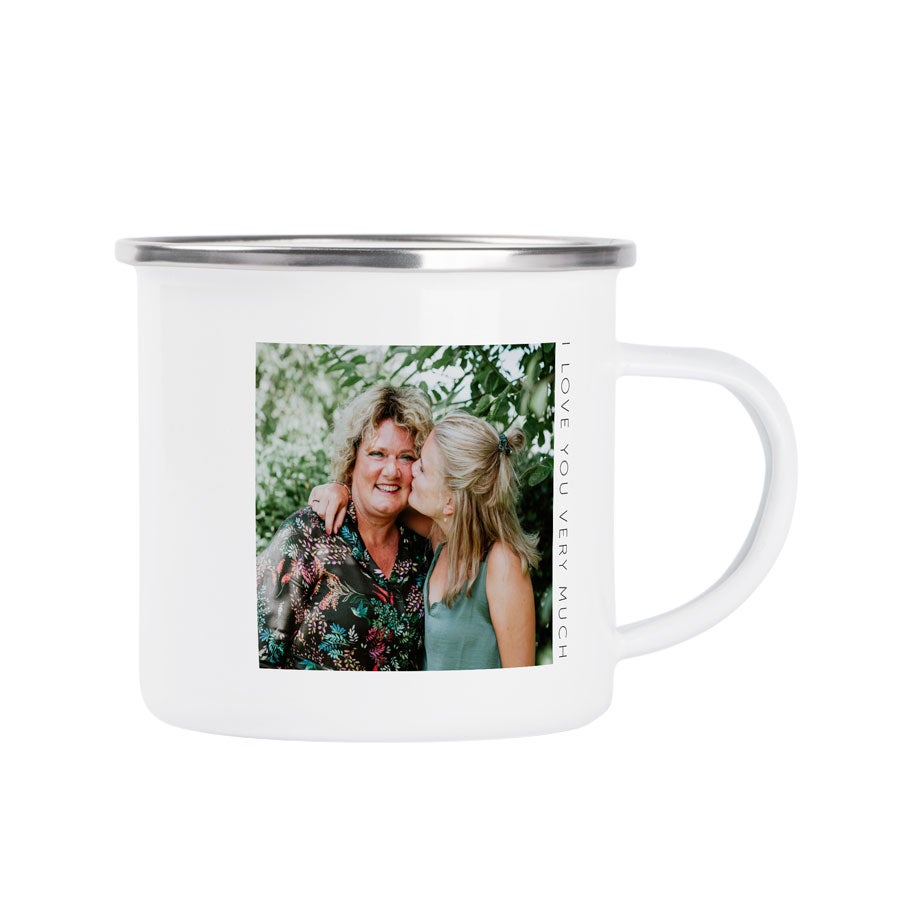 Super descolado e retrô com uma caneca de esmalte personalizada. Personalize com uma foto, nome e/ou texto. O presente mais versátil para qualquer pessoa!