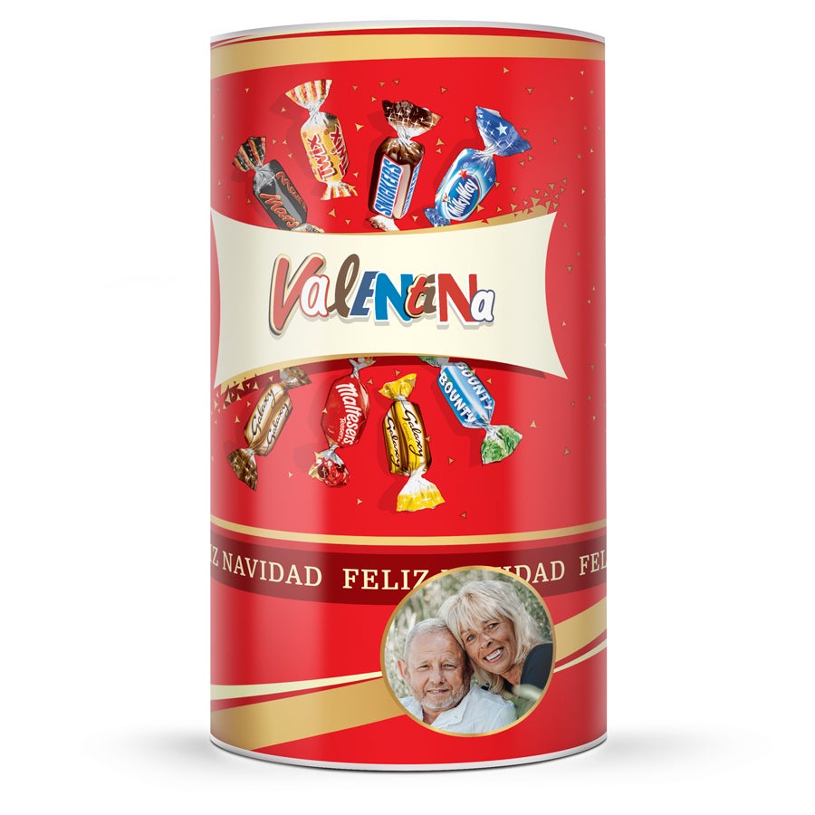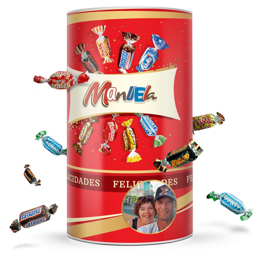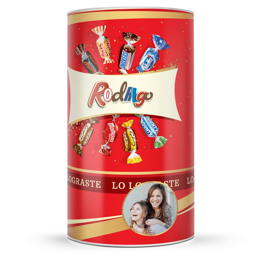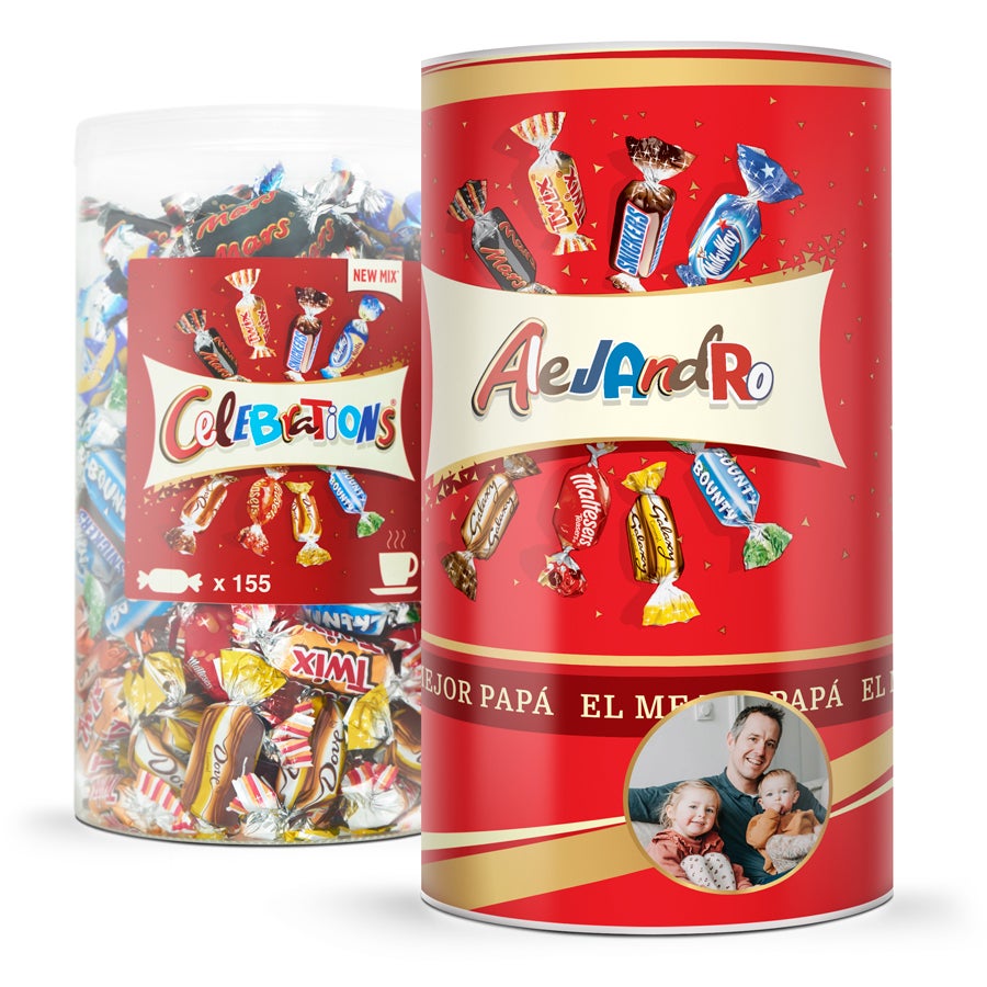 Surpreenda seus entes queridos com um tubo recheado com uma variedade de chocolates Celebrations, personalize-o com a foto e o texto de sua escolha!