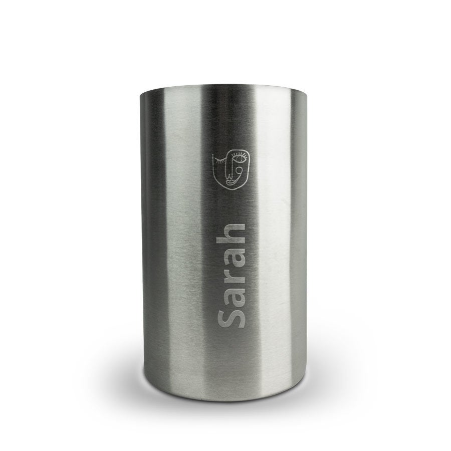 Mais informações sobre o balde de vinho:Material: aço inoxidávelCor: prataDimensões: 20 x 12 x 12 cm / 7,9" x 4,7" x 4,7"Personalização: gravação de texto